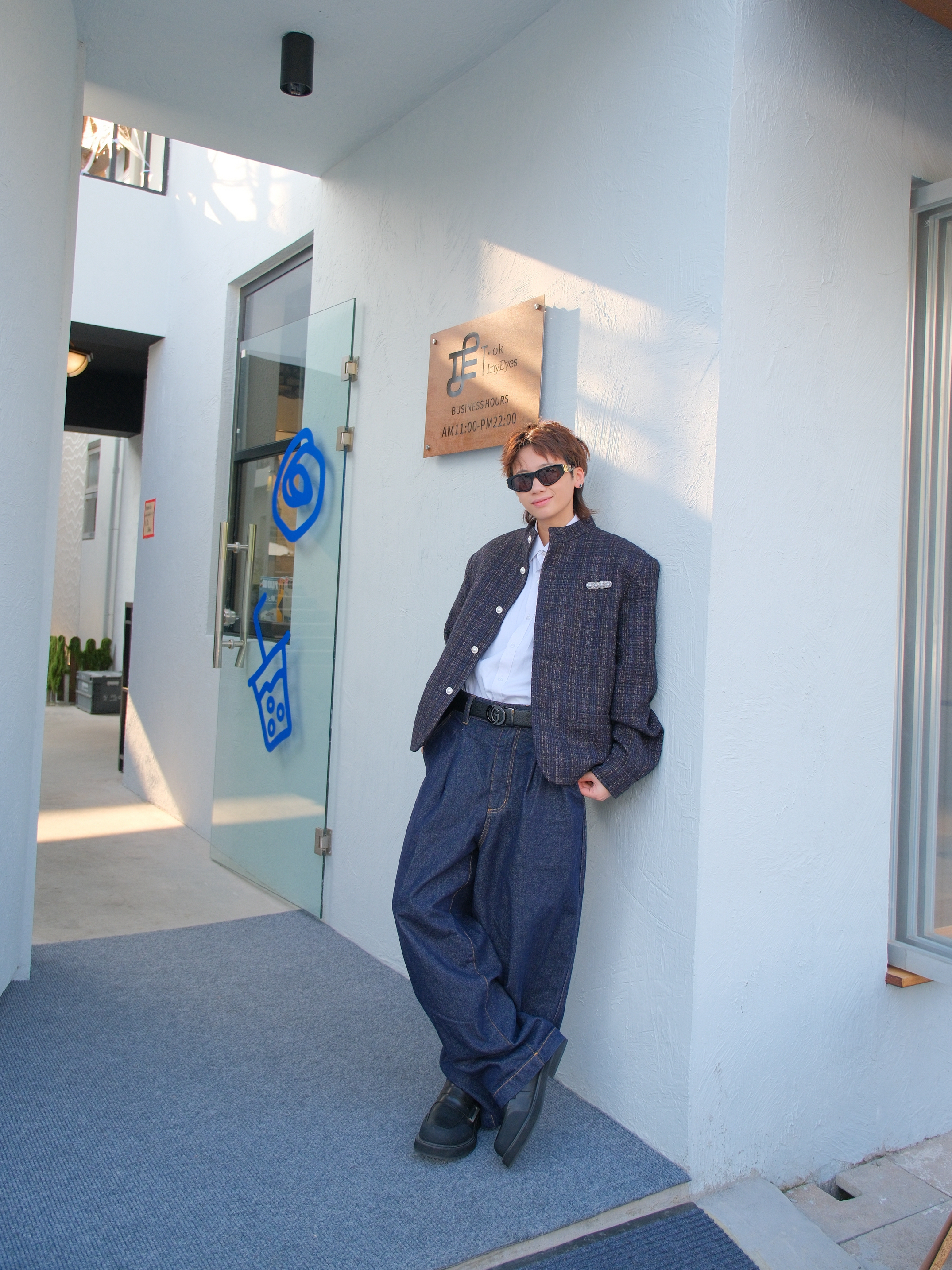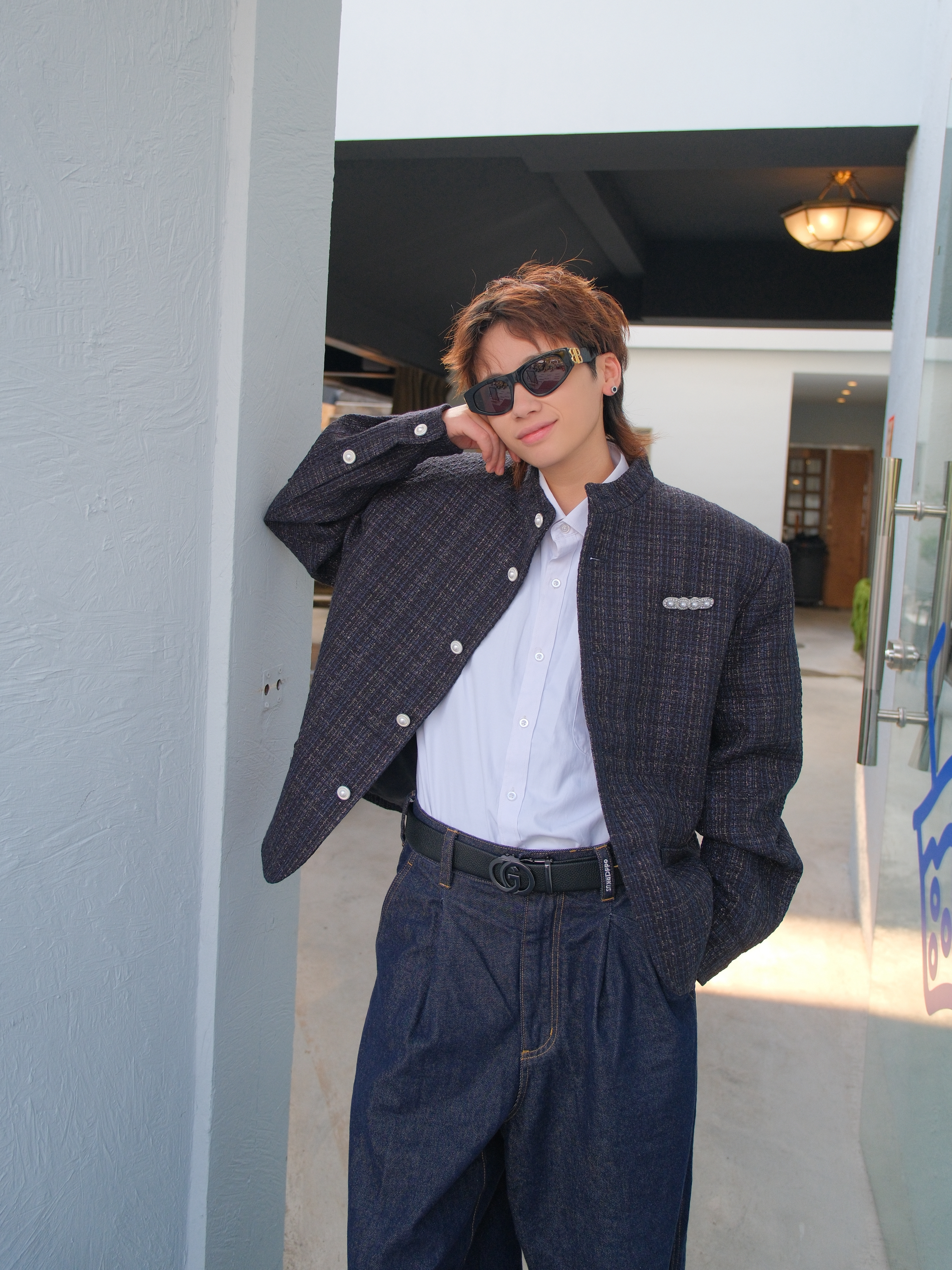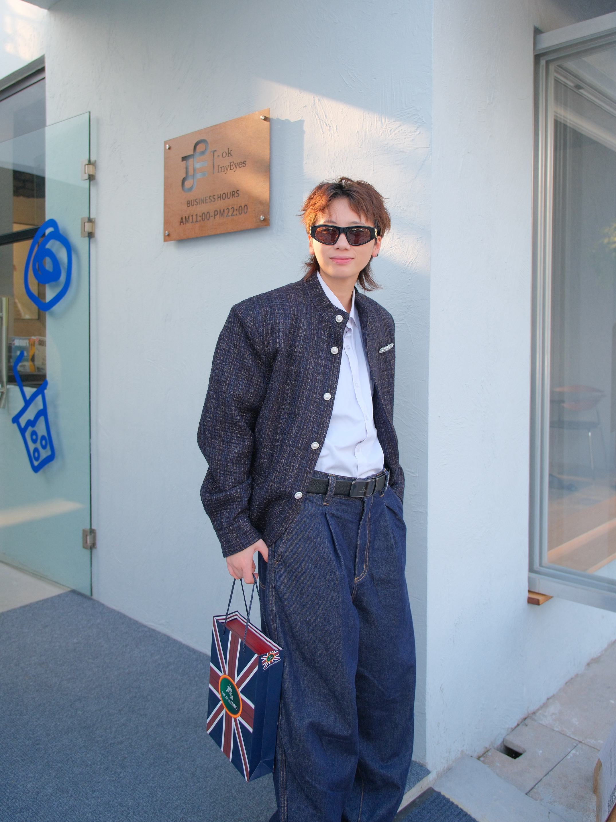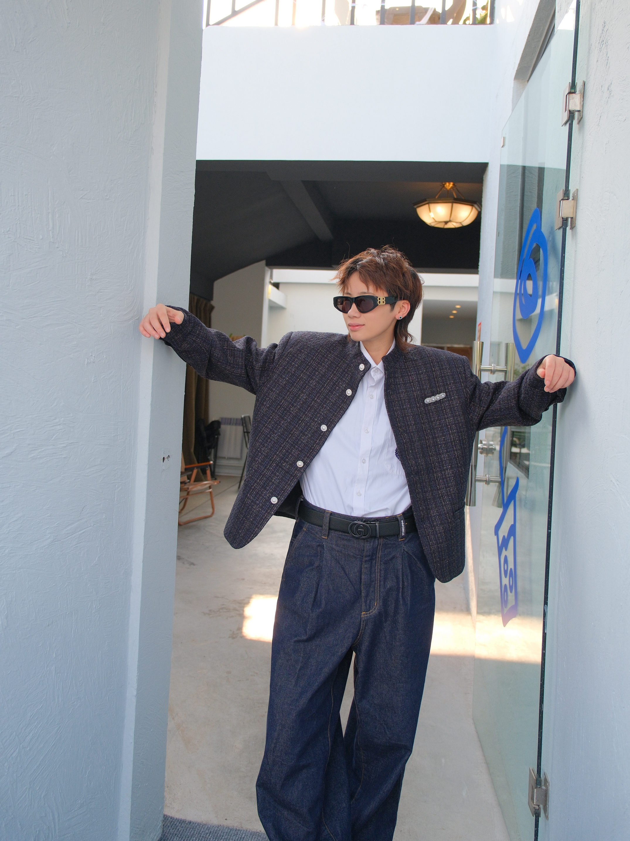 短款的格纹呢子搭配上珍珠的纽扣和胸针