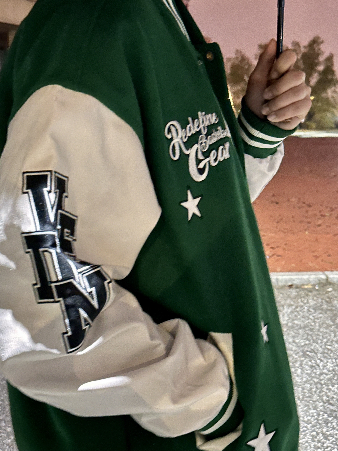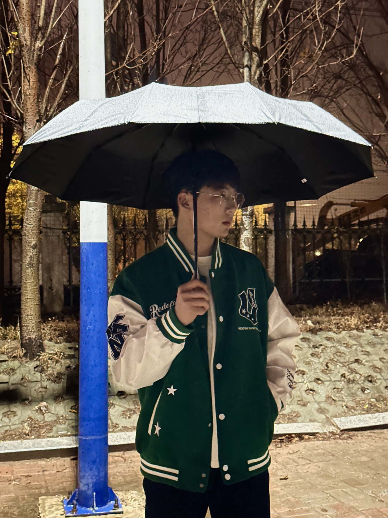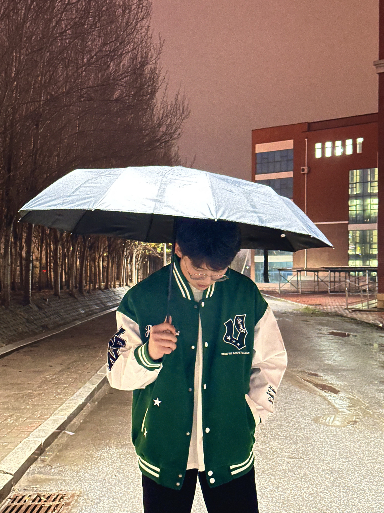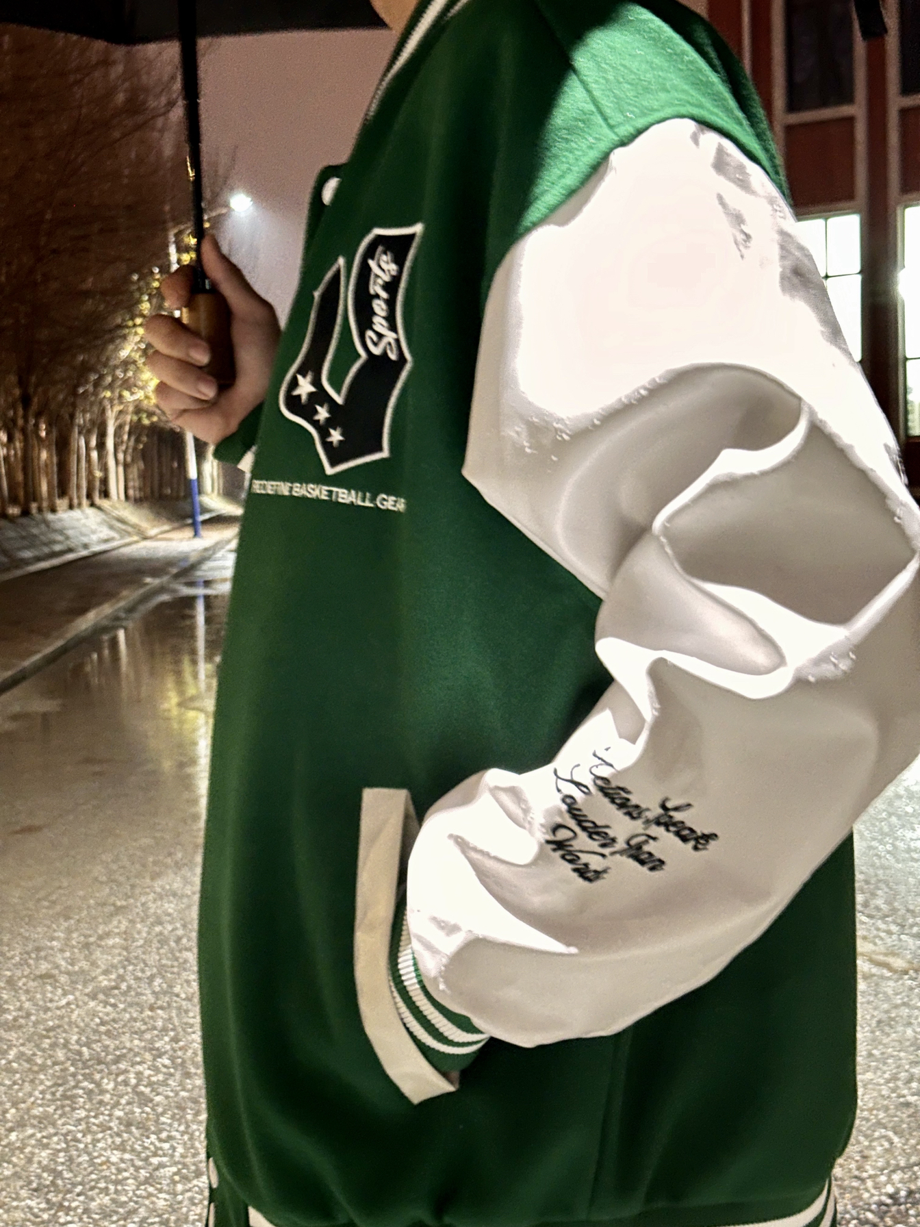 本人身高184cm|体重76kg 👔XXL码 这款维动美式棒球服我很喜欢!它这件棒球衫搭配一些浅色系衣服会非常好看。版型和质感和同价位的相比它真就是扛把子。衣服上的胸前、袖子包括口袋等,多处印有美式图案。它的面料也很有质感,两袖采用了pu皮质面料防风防水,主体面料柔软,摸起来有绒绒的感觉。我买的是绿色的,感觉很显白而且还更有个性。个人建议买大一点挺好穿着有感觉!兄弟们,快和我一起做美式男孩吧!