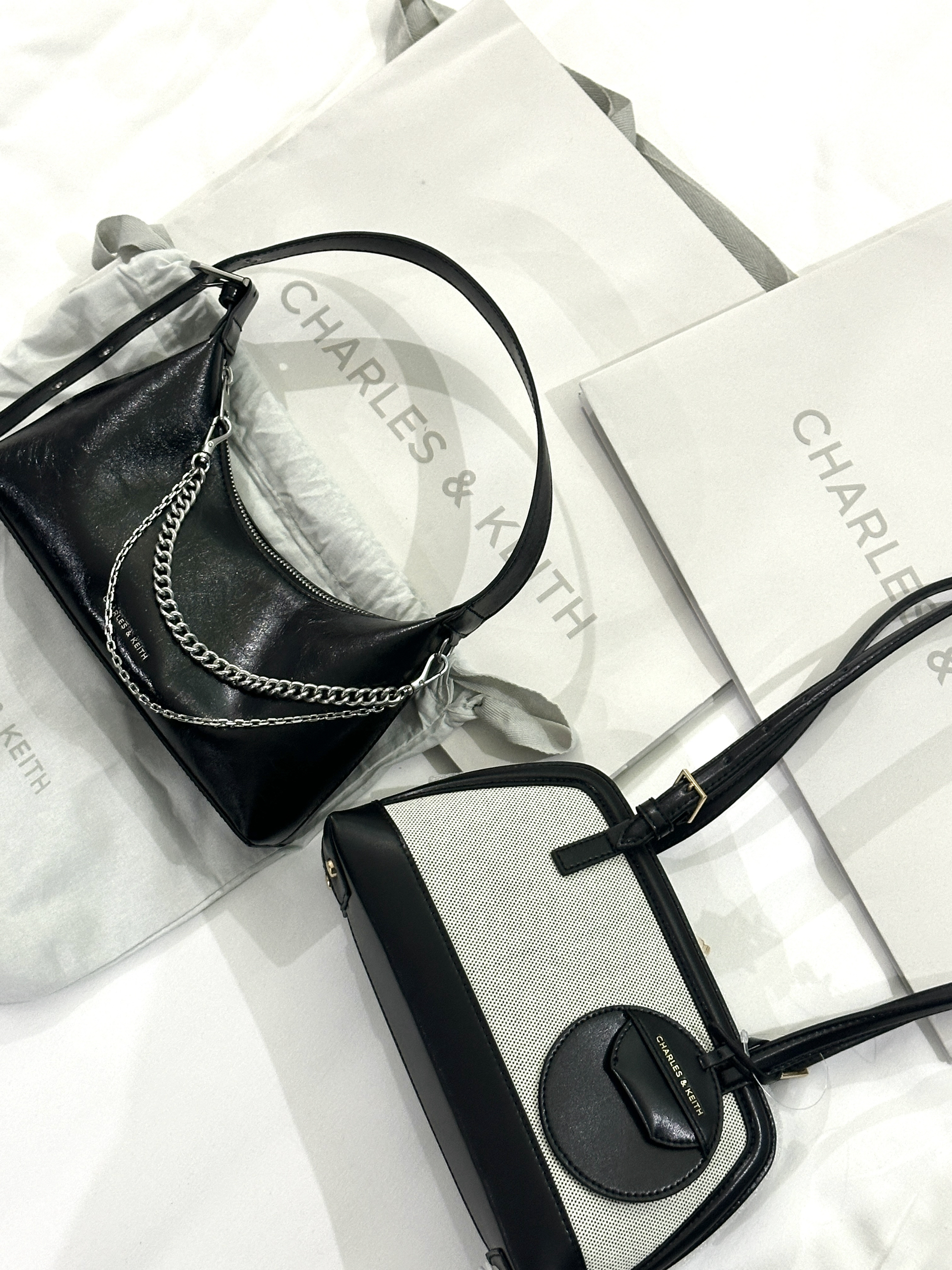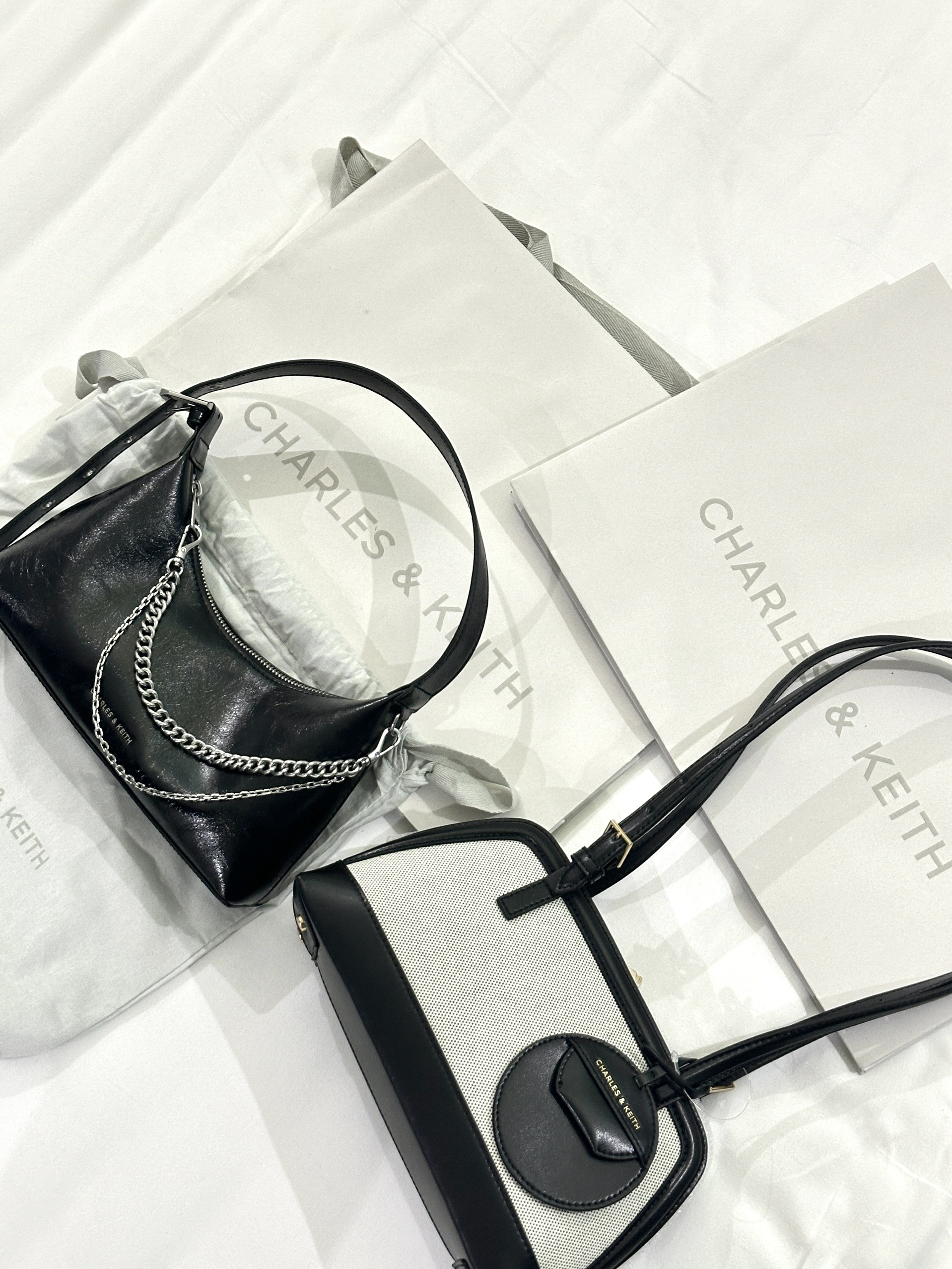 本篇笔记关联了CHARLES&KEITH 24冬新品柔软拉链式褶皱腋下包单肩包 黑色、CHARLES&KEITH 25春新品帆布拼接挂饰枕头包中包腋下包单肩包 黑色等商品,为用户提供真实的使用体验和购买参考。
