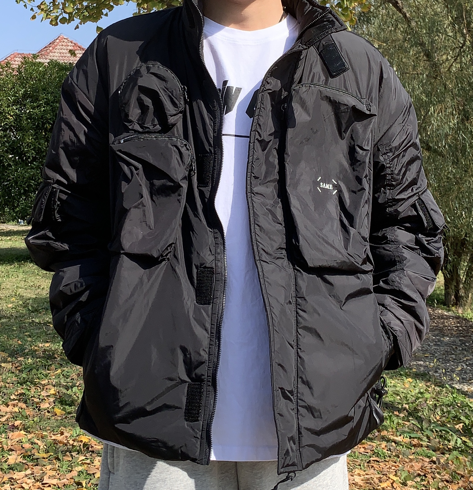 棉服:samesame 裤子:samesame 这件棉服口袋是真的多 偏工装 质感拉满 质量很轻穿在身上几乎感觉不到 数了一下足足有六个口袋 可以装下全世界 保暖性非常好 十分抗冻 裤子是加绒的 里面穿一条秋裤就可以过冬了