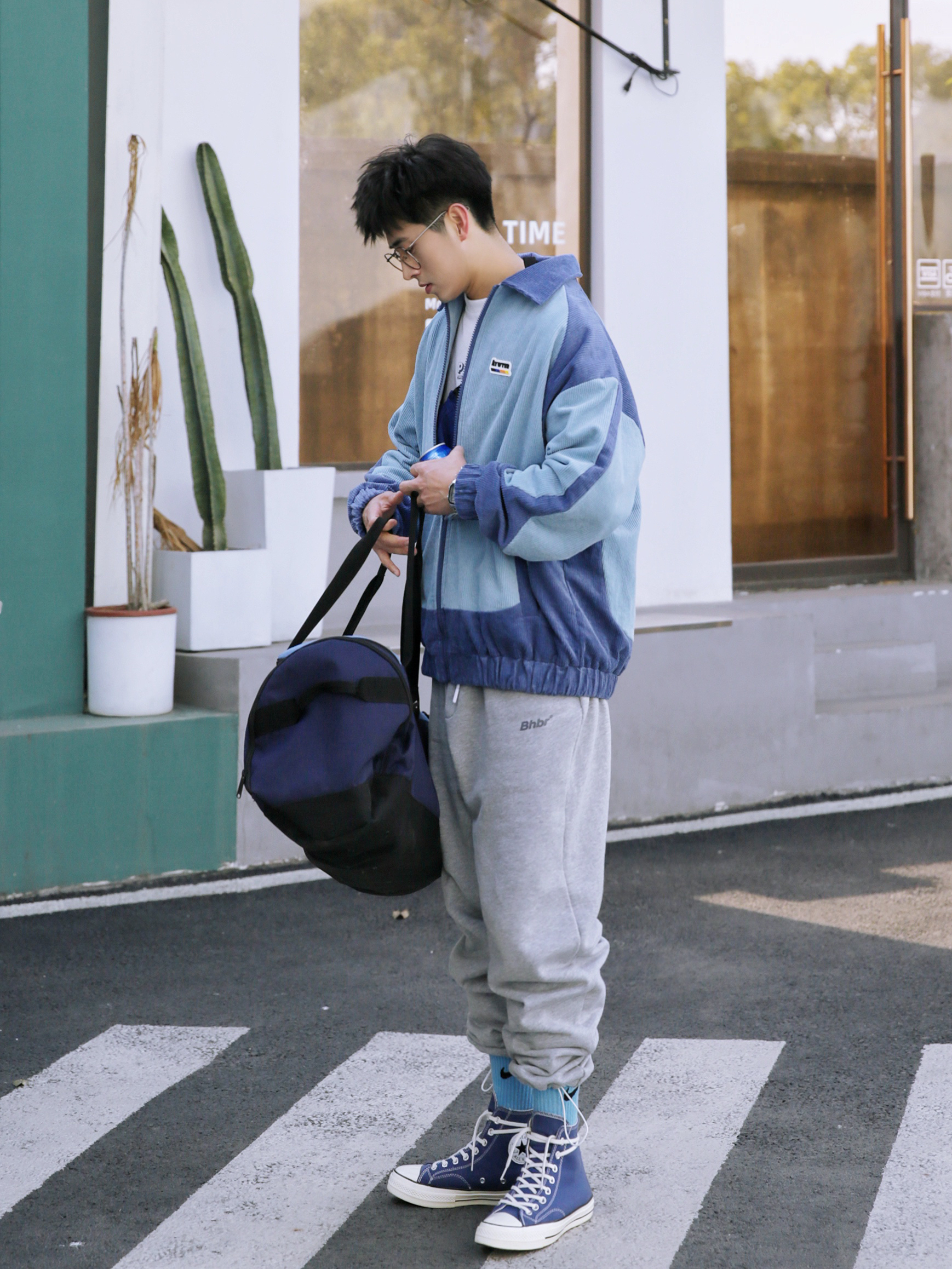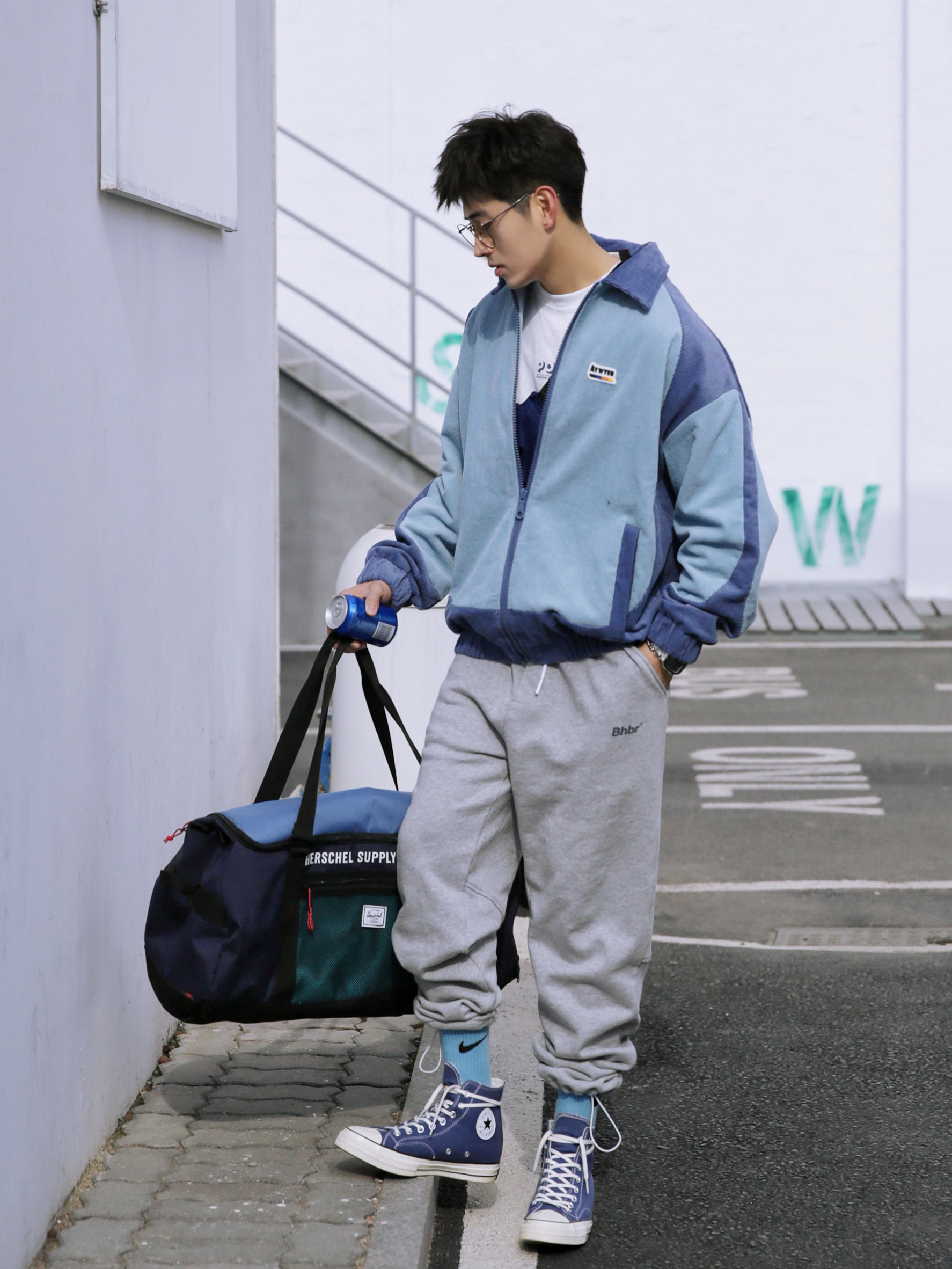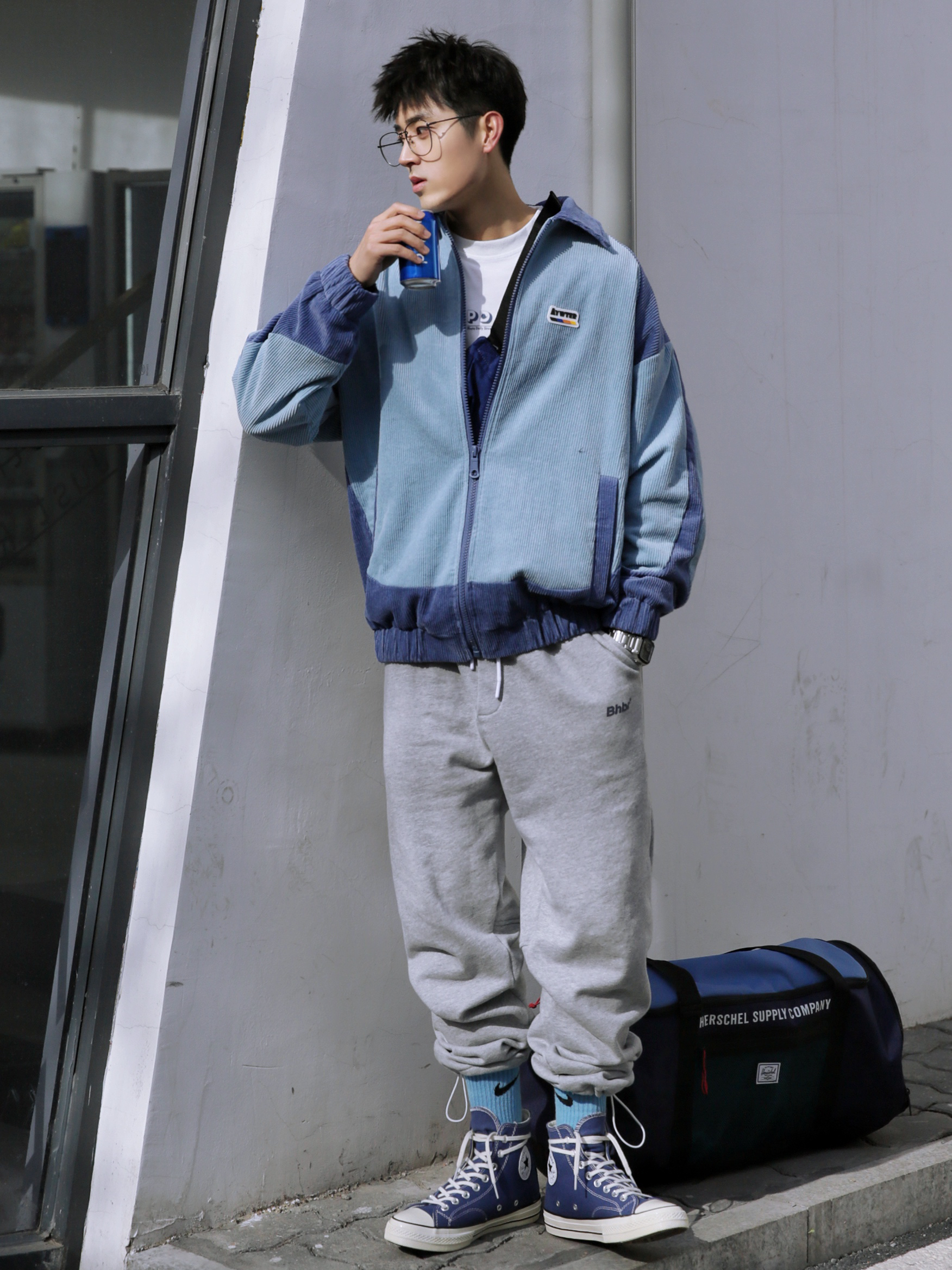 🔹2021男生春季穿搭来了哦……今年我会多分享一些适合男生日常休闲运动风搭配,一般来讲,说到运动风就会想到运动卫裤,【灰色运动卫裤】就是日常穿搭里容易搭配的一款单品,比如我今天穿的这种可以束脚抽绳的,也可以放下来当宽松直筒裤的,是真的还蛮好穿的。 — ⚠️本人身高|体重:176CM|66KG(🉑️参考) — 👔·蓝色拼接灯芯绒外套—PD大人;✨ 💼·学院风健身包—HERSCHEL;✨ 👖·灰色运动...