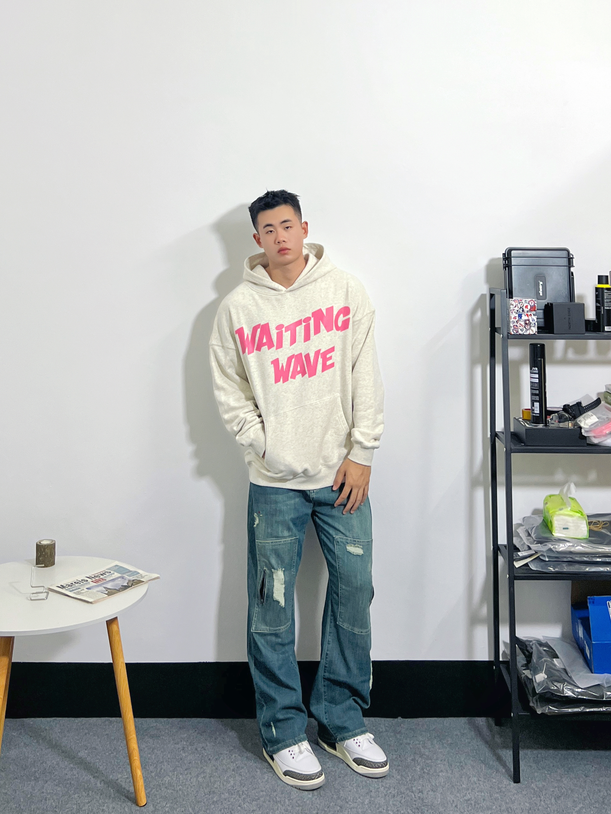 衣服:Focos Studio 裤子:samesame 鞋子:vans 这款卫衣是扎染的 上半部分是橙色 下半部分是红色 扎染去年相当流行 所以就入了一件卫衣 版型相当好的 辨识度很高 冬天适合亮色 裤子是same的烫钻丝绒休闲裤