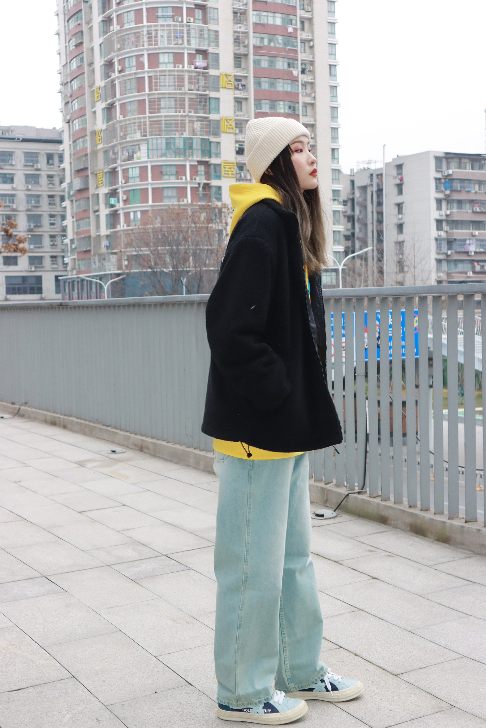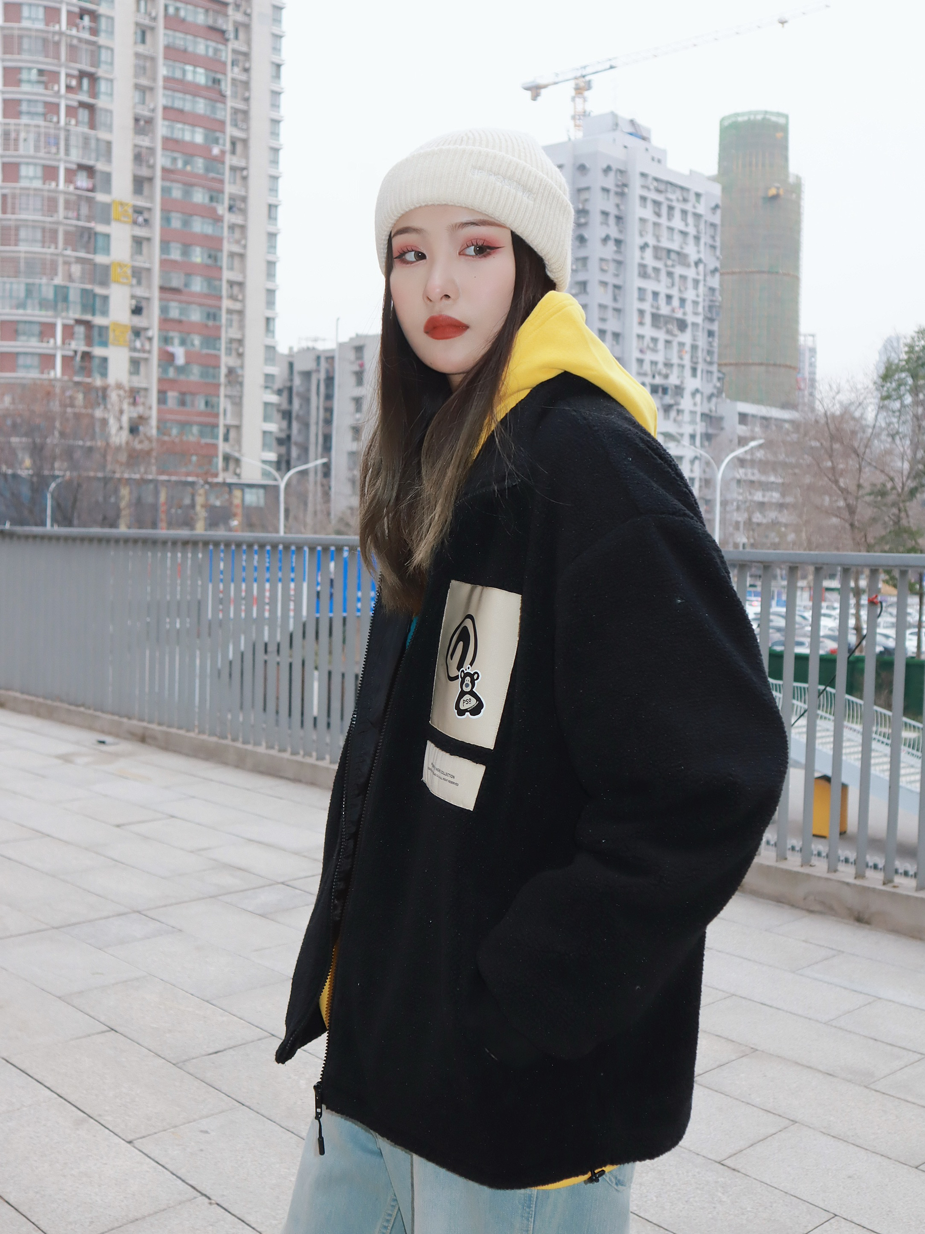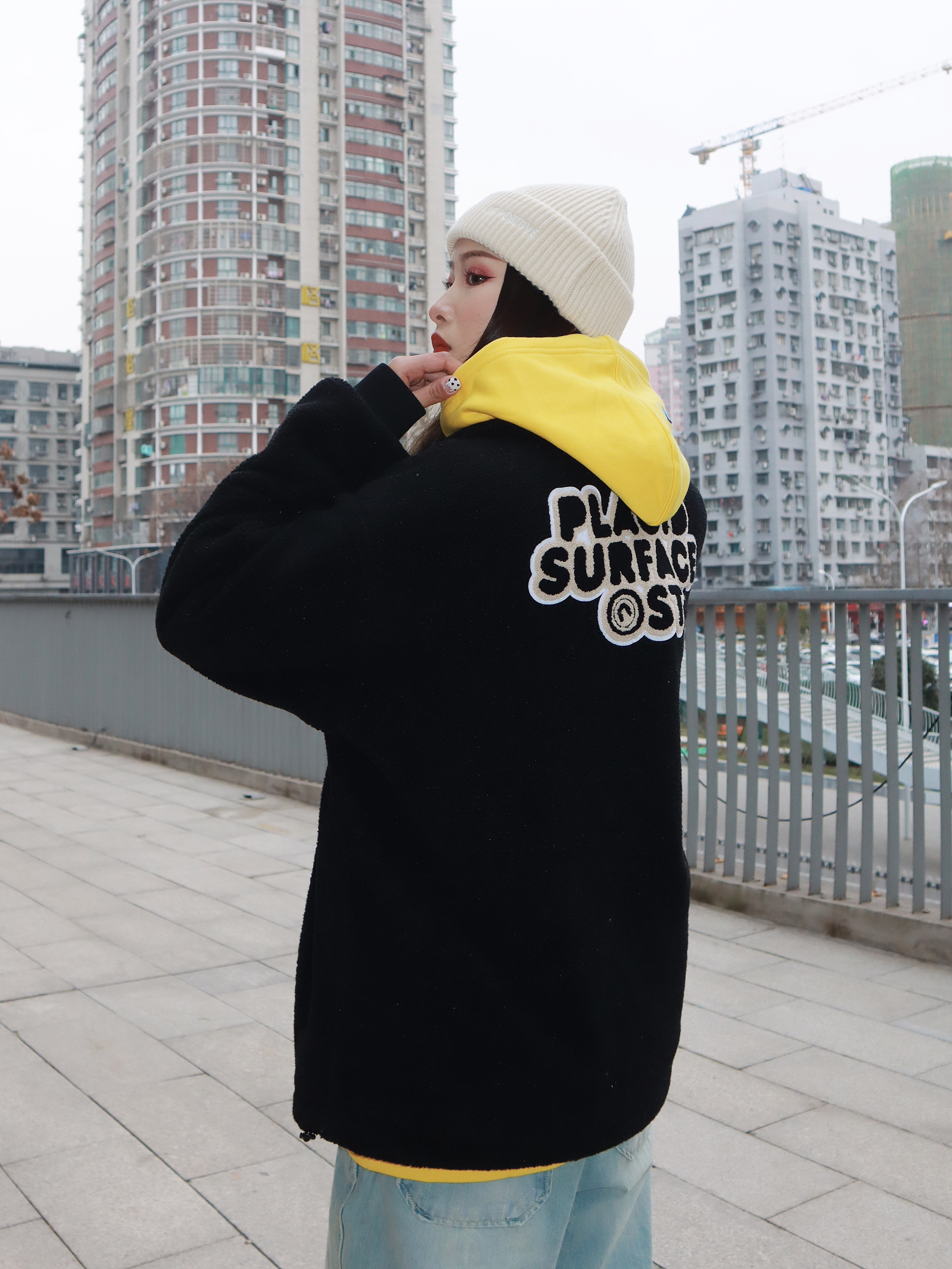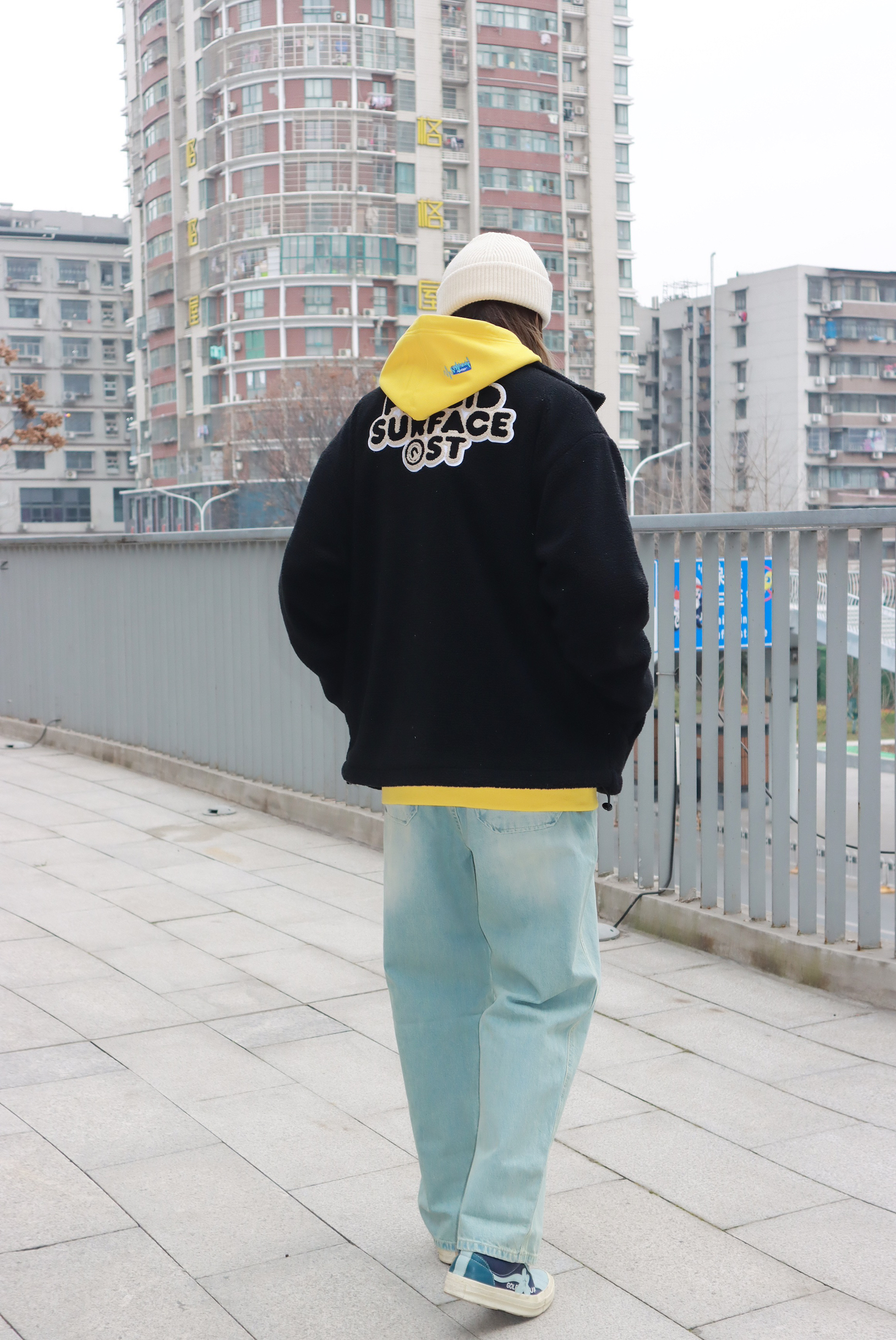 衣服🔗:PSO@PSOBrand 裤子🔗:NOTHOMME@NOTHOMME官方 鞋子🔗:匡威小花 外套是和廖效浓联名的摇粒绒外套 穿上身轻便又保暖 款简约又百搭 版型很好 胸前的贴布设计加上背后的印花logo 细节满满,上身非常的酷🆒🆒