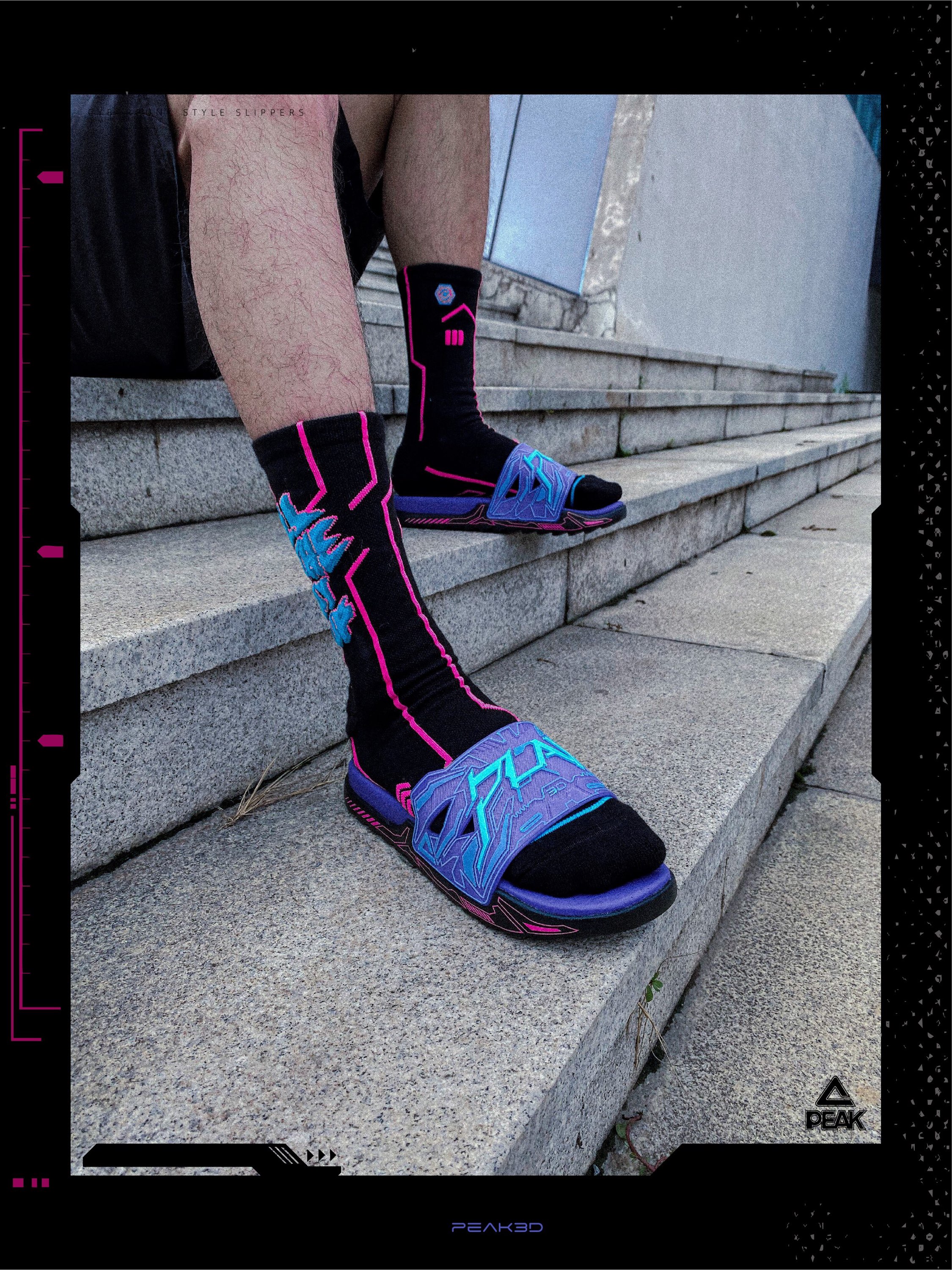 上脚了, 匹克3D打印态极拖鞋 实话说有点骚啊这个配色💜