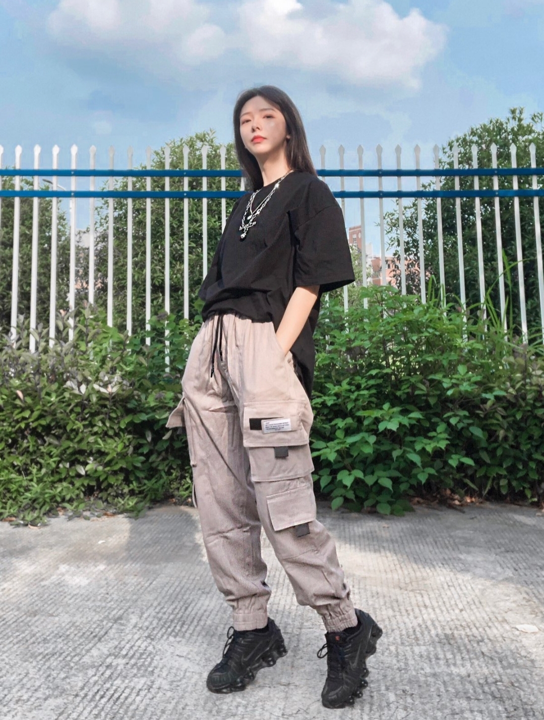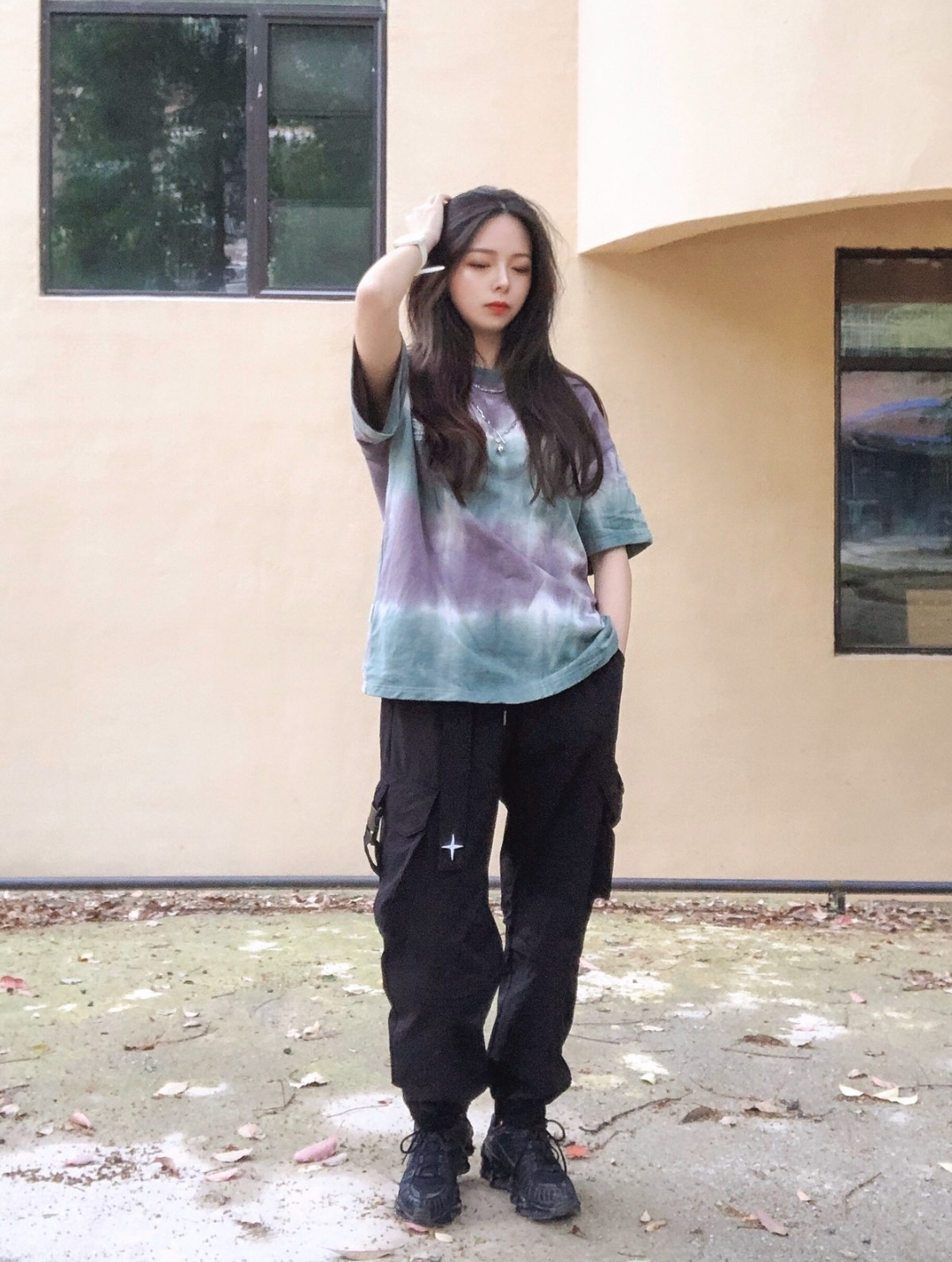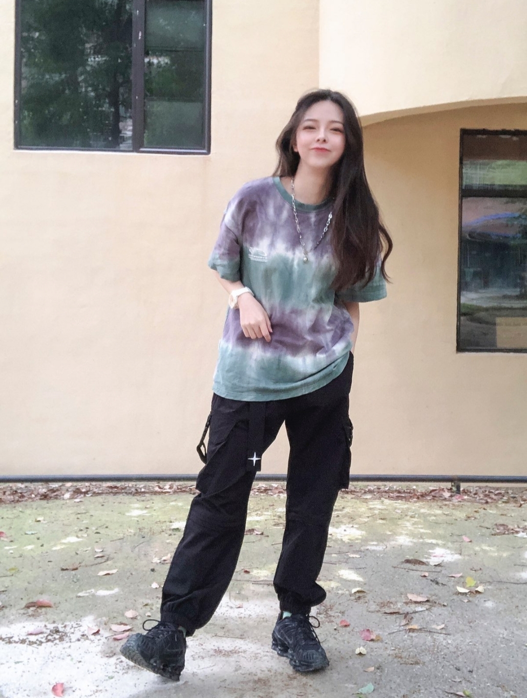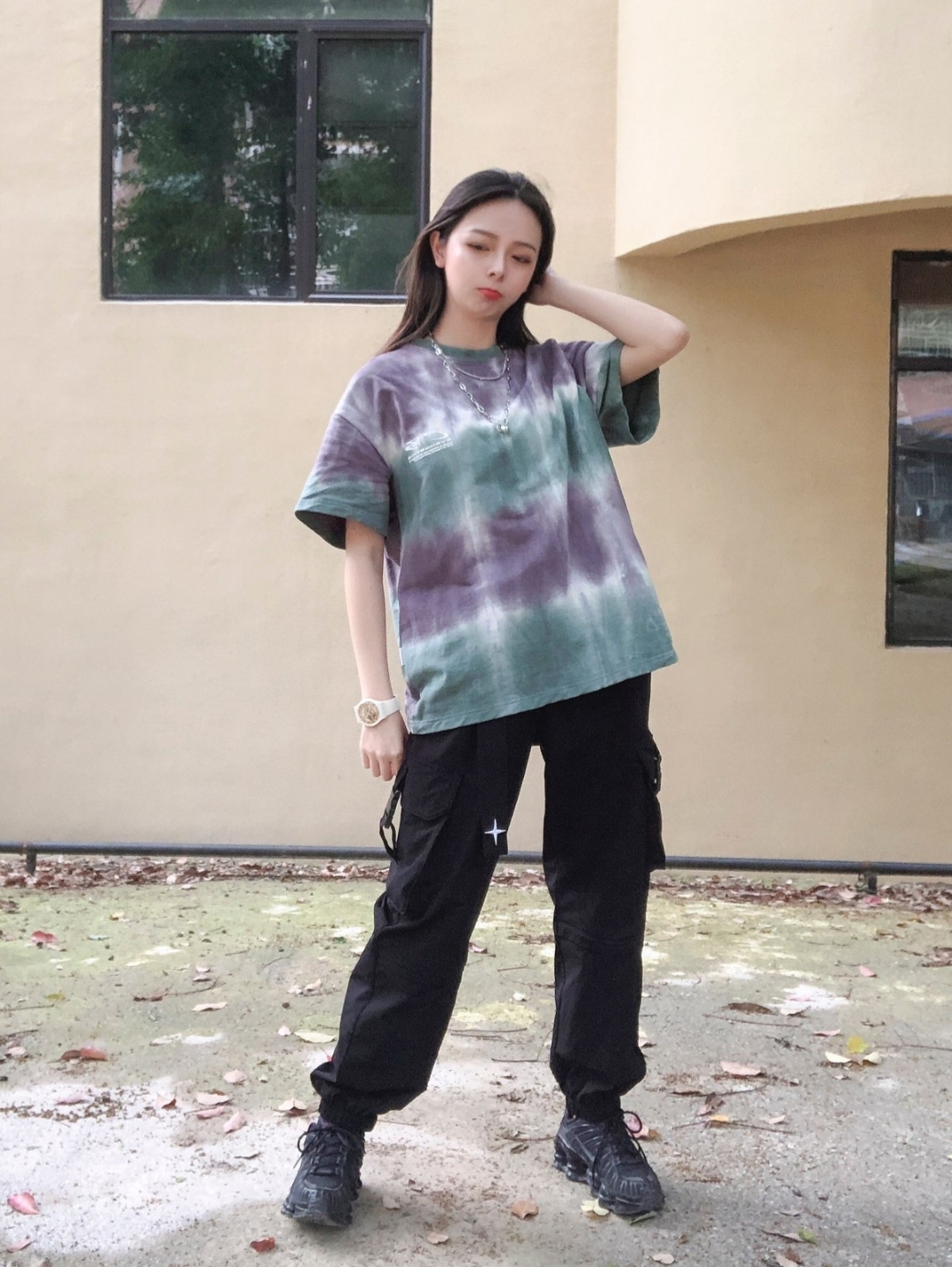 👕颜色绿的很舒服,平时t恤穿s偏宽松,我觉得这件穿大一码应该更好。 👖工装裤版型很喜欢,飘带设计走路带风,有4个口袋,腰部可调节,上身还是很不错的。 👕:VENGETICE 👖:egend工装裤