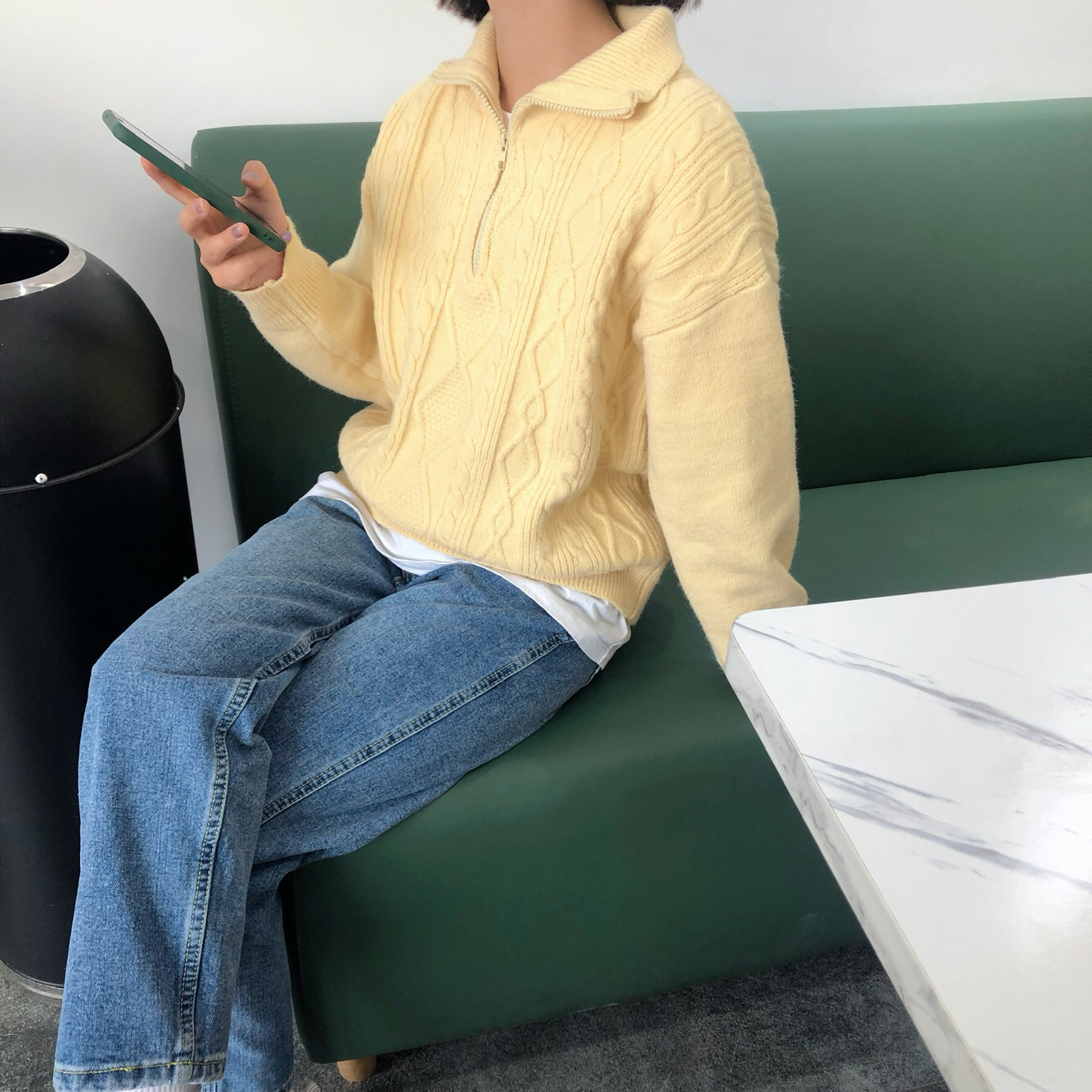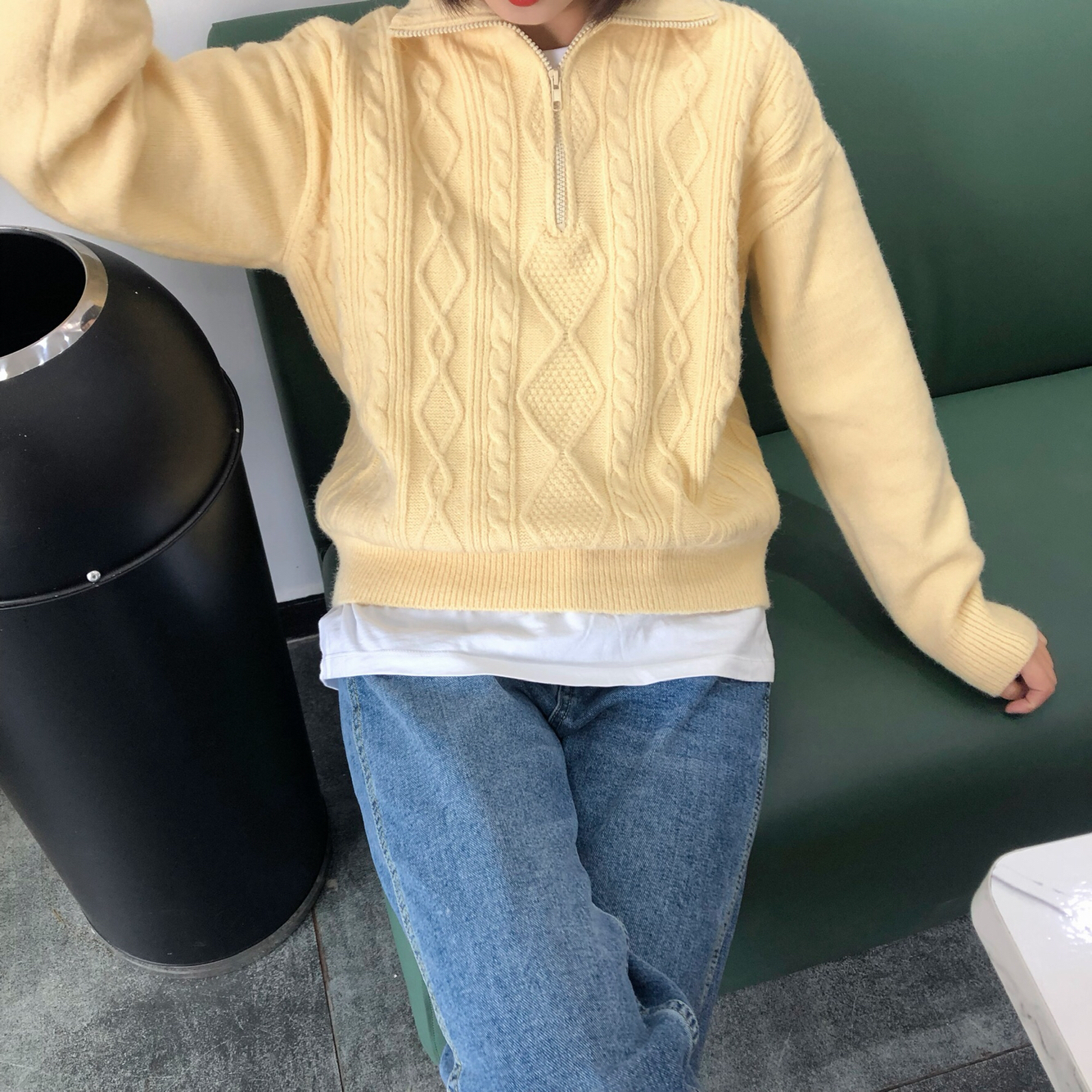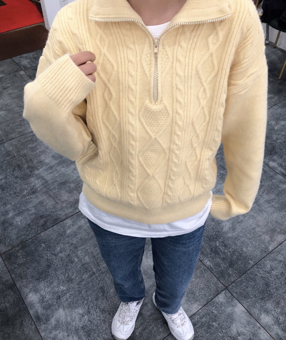 👔:不油 👖:不油 这家的衣服这么爱了!上身超级韩,颜色是奶油黄色,秋冬内搭超级吸晴,版型也很奈斯。 👟:斯凯奇 小个子女生必备啊!真的太显高啦!纯白色真的超级爱!