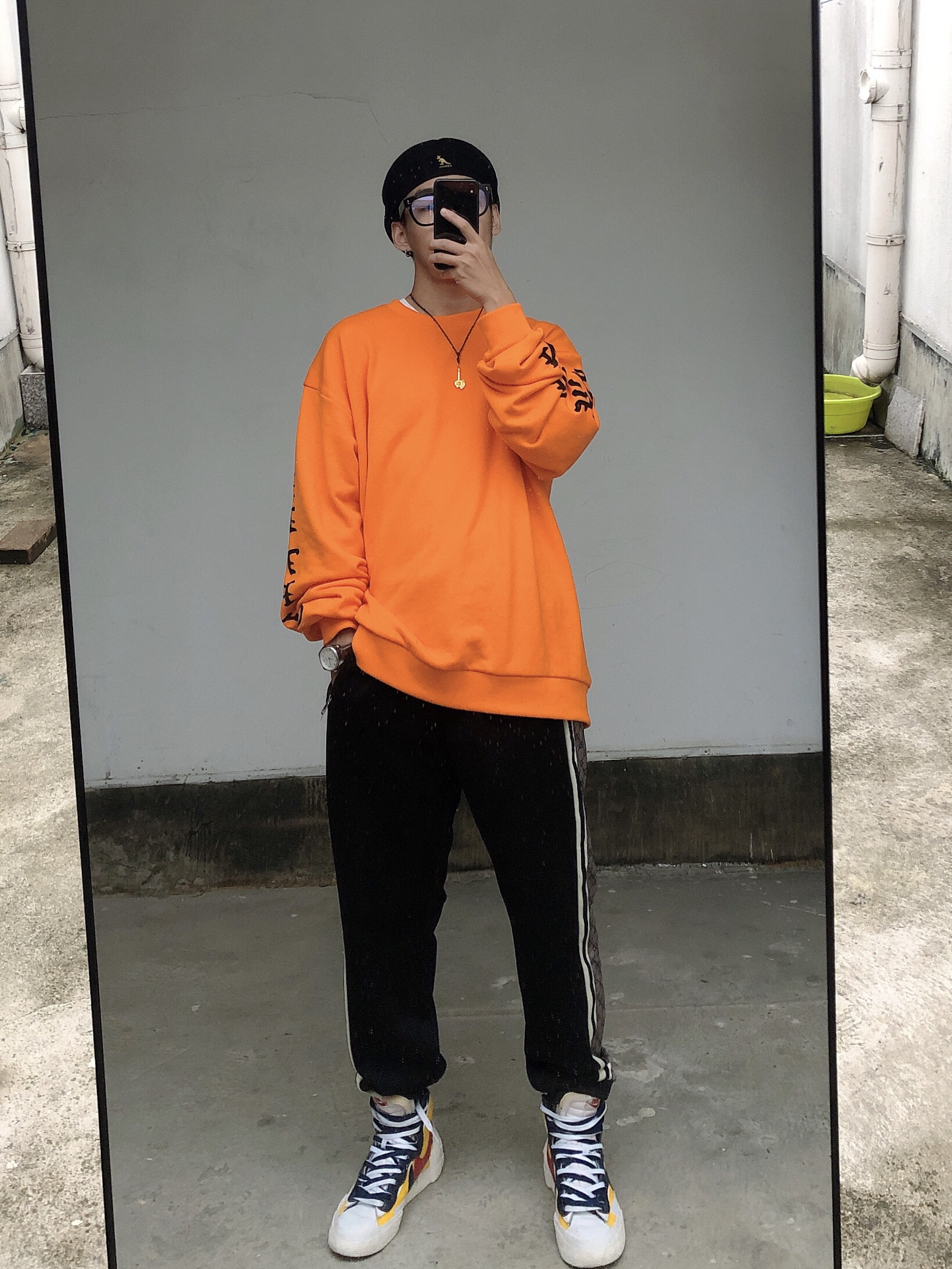 ·👕SUAMOMENT 个人比较喜欢穿🟠,穿橘色也显得人很有活力 不会那么深沉 这款SUAMOMENT卫衣正是首选 让路人远远的就能注意到你😌 ·👖 GUCCI 裤子随意搭配一双简约的黑色运动裤就🉑️ 不会显得很杂乱 搭配橘色也很和谐 ·👟SACAI X NIKE 鞋子的话 我选择了这双带有亮色的运动滑板👟 与卫衣能做个颜色平衡和点缀 ps:这双鞋真的炒鸡好看!