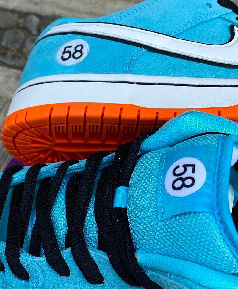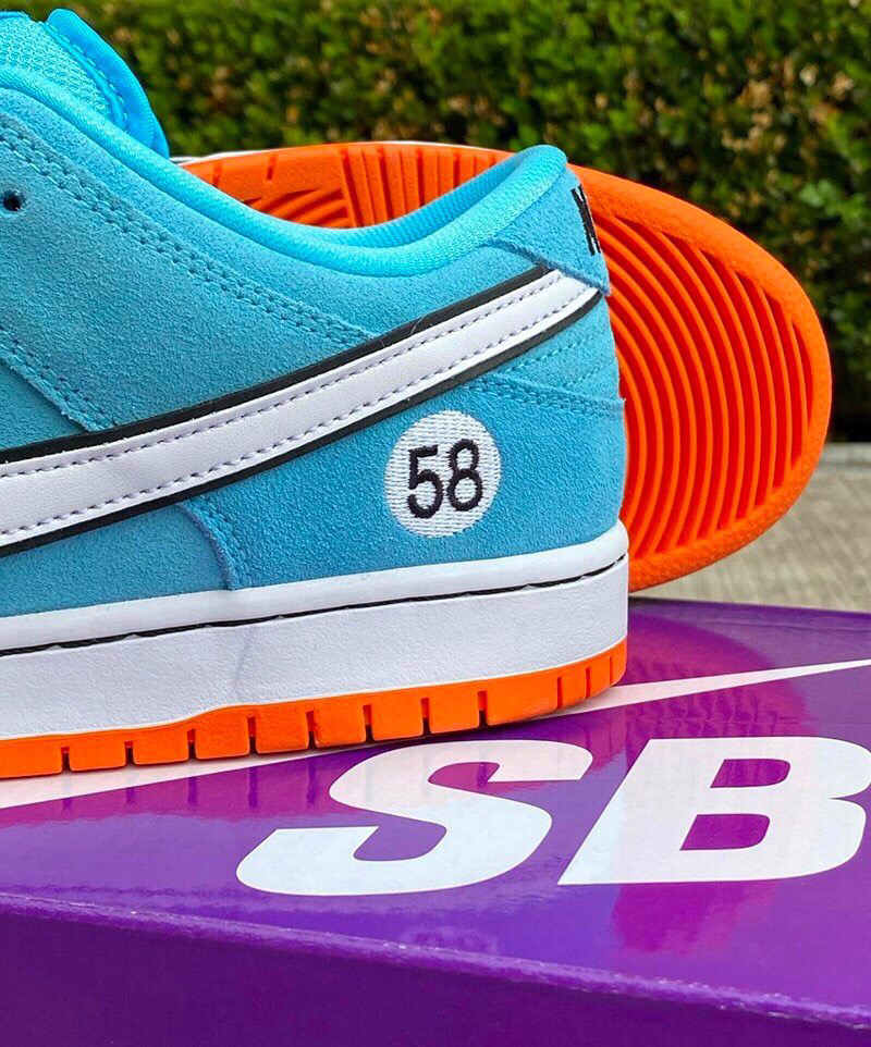 🌟此前多次曝光Nike SB Dunk Low “Club 58” 赛车在近期又迎来最新实物图。同时发售信息也随之更新。整双鞋鞋舌及脚踝处的 “58” 号数字呼应“Club 58”的主题,其实为了致敬Gulf Racing海湾石油车队 💬关注Rock巨石说➕带你了解更多球鞋信息 💥货号:BQ6817-401 💥发售日期:2021年3月 💥发售价格:$100美元