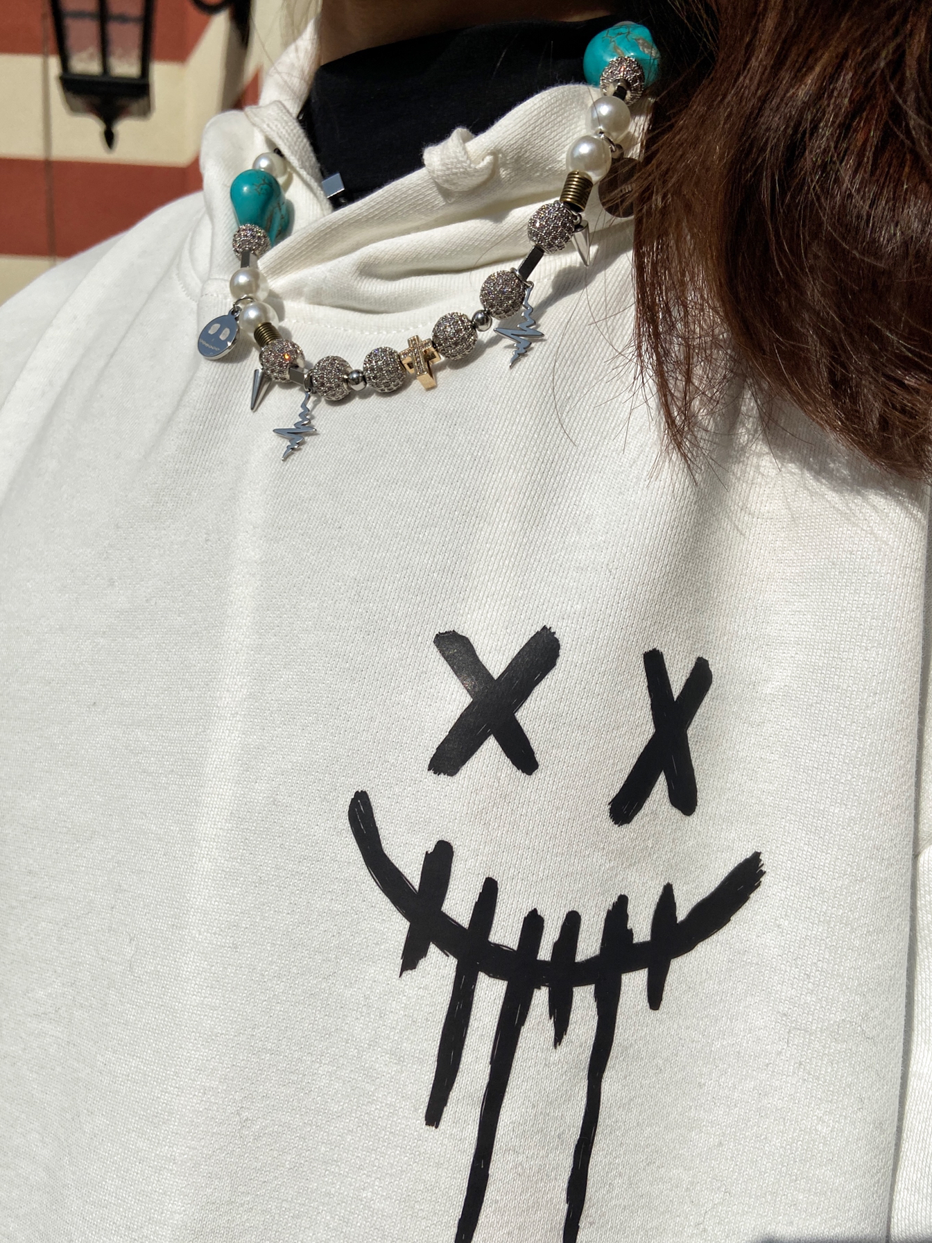 开心不开心都要保持微笑🦆 👔:@dx 🧦: ADER ERROR ⛓️:@CONKLAB 平时买卫衣都会买大一号的!老Oversize了💤 这件奶白色笑脸卫衣好治愈🦆背后的笑脸印花质感👌 主要搭配什么颜色的球鞋都不会出错!!👟 男生女生都🉑️诶 图上是167 43 M号上身效果 可以参考下 这双Disrupt Dunk是我最经常穿的! 增高4cm真不戳!黑白配色不会出错!性价比也超级高👍