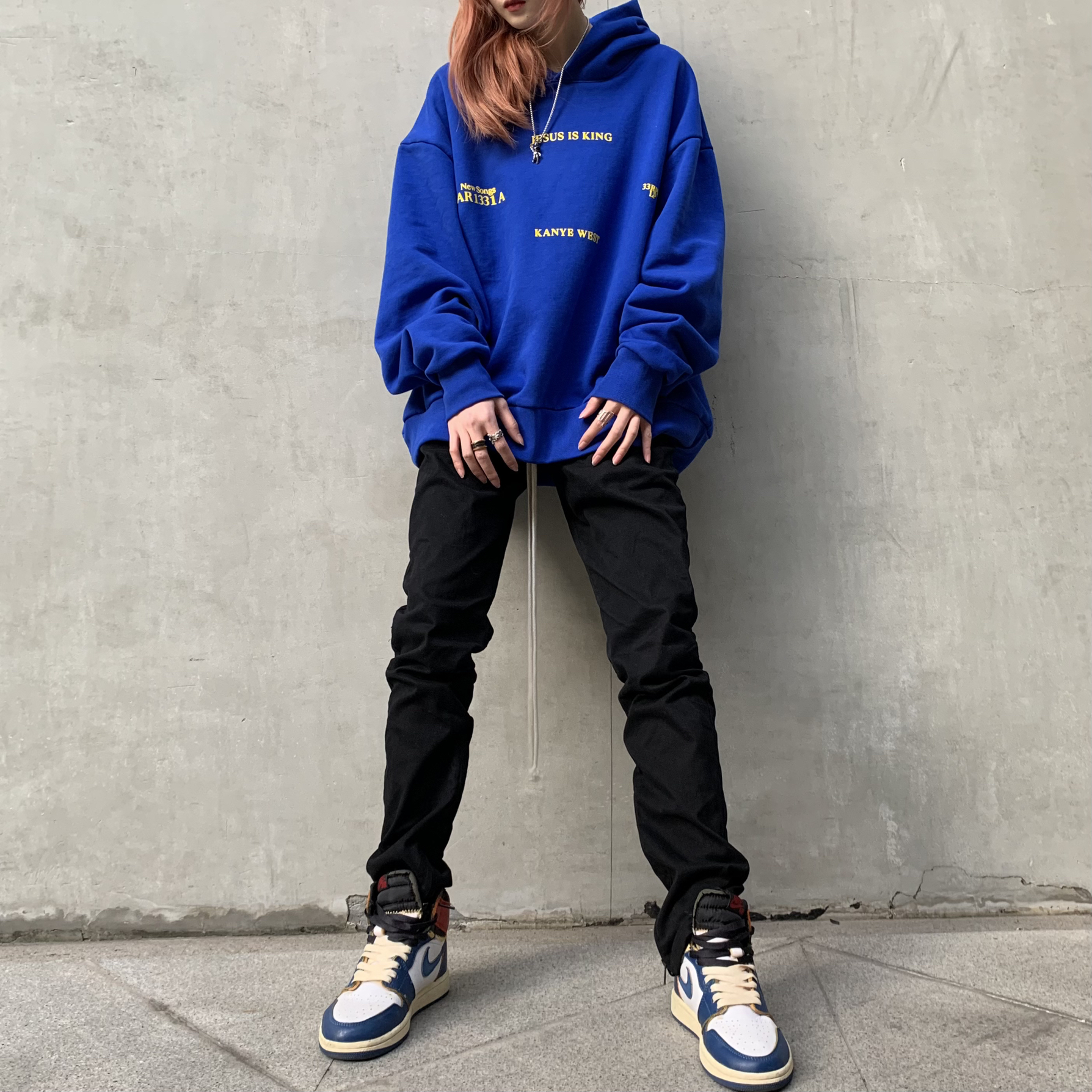 👕:Jesus is king 👖:Urinie19 👟:Union aj1 這褲子太好搭了 高街 街頭 vibe撞色啥都行 黑色百搭版型也好 我就喜歡堆積感重的褲子 忍不住多拍了几組哈哈哈深藍色超級顯白的! 跟Union復古藍一樣都很帥