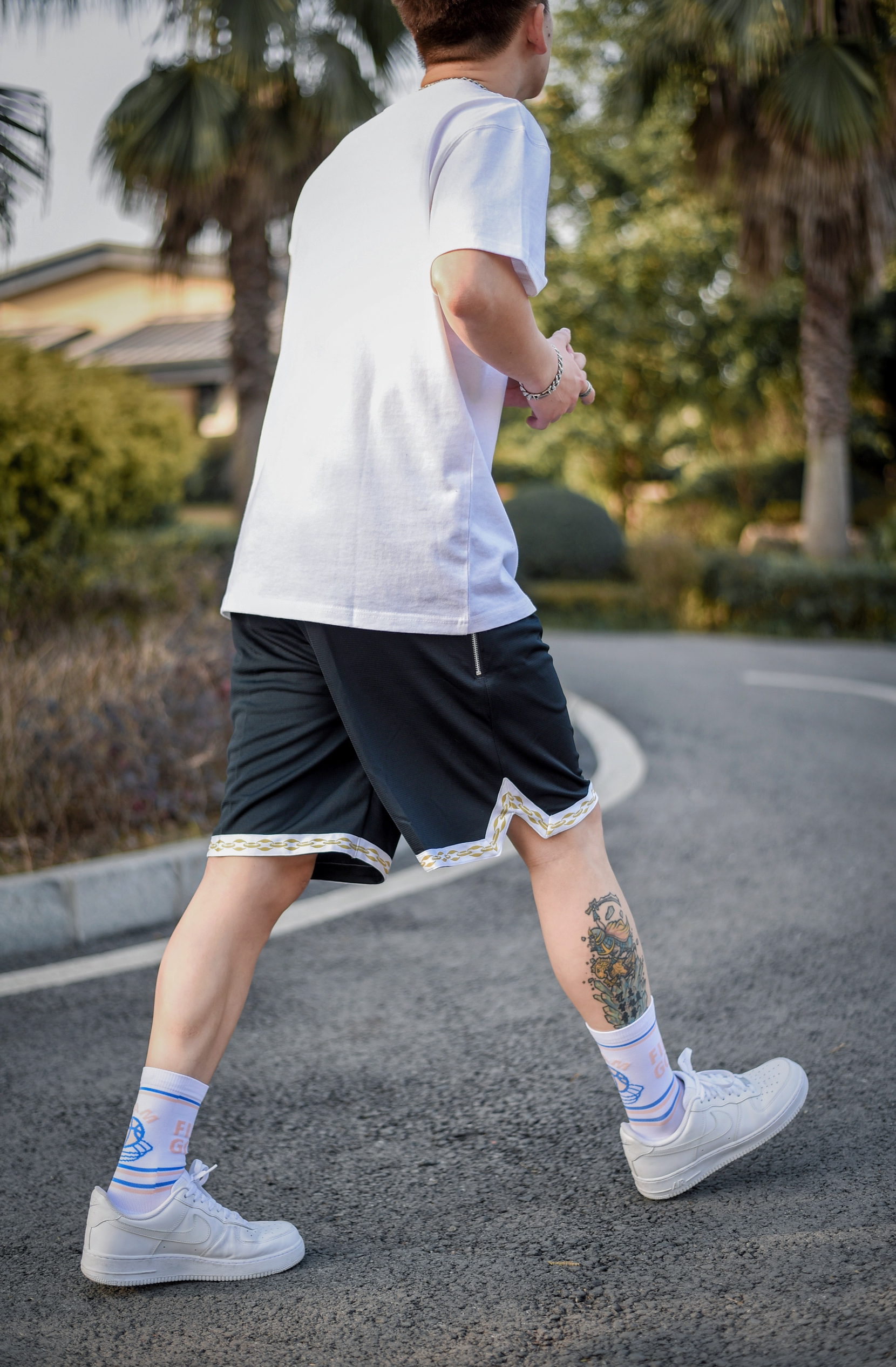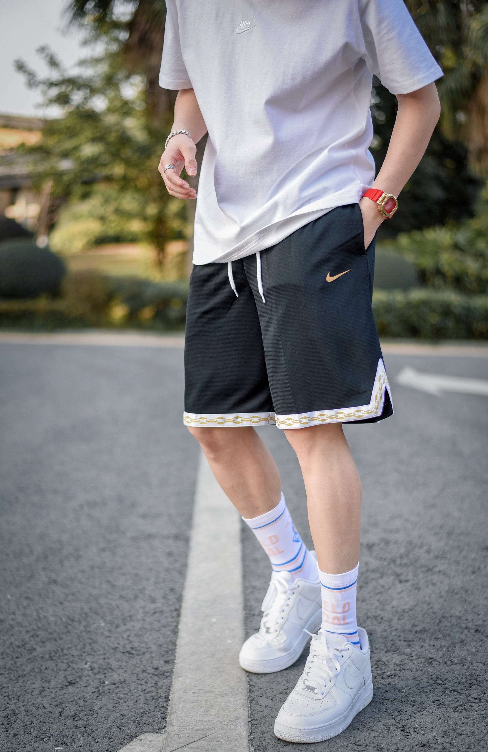 每一个喜欢运动喜欢潮流的人不都得有一双AF1吗,纯白af1百搭性简直没的说 裤子是耐克夏季fit dna训练裤,版型也到位 日常穿无敌
