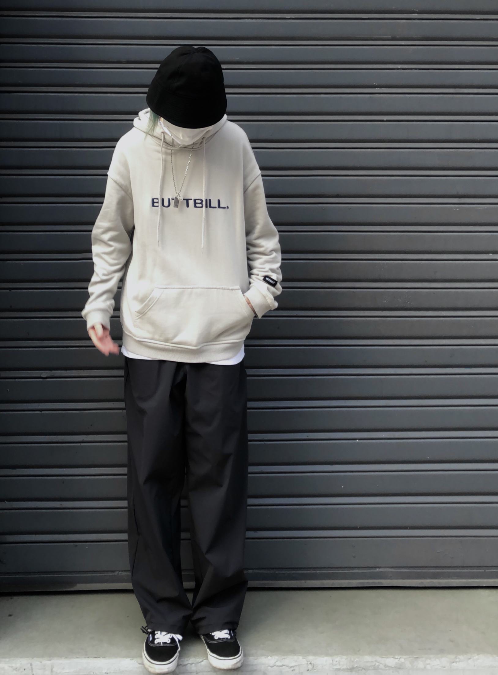 春天快到了春季穿搭安排 不露脸也可以很酷 👔:Buttbill 👖:Buttbill 🥿:Vans 可以搭配一个盆帽跟裤子也有呼应 更有层次感