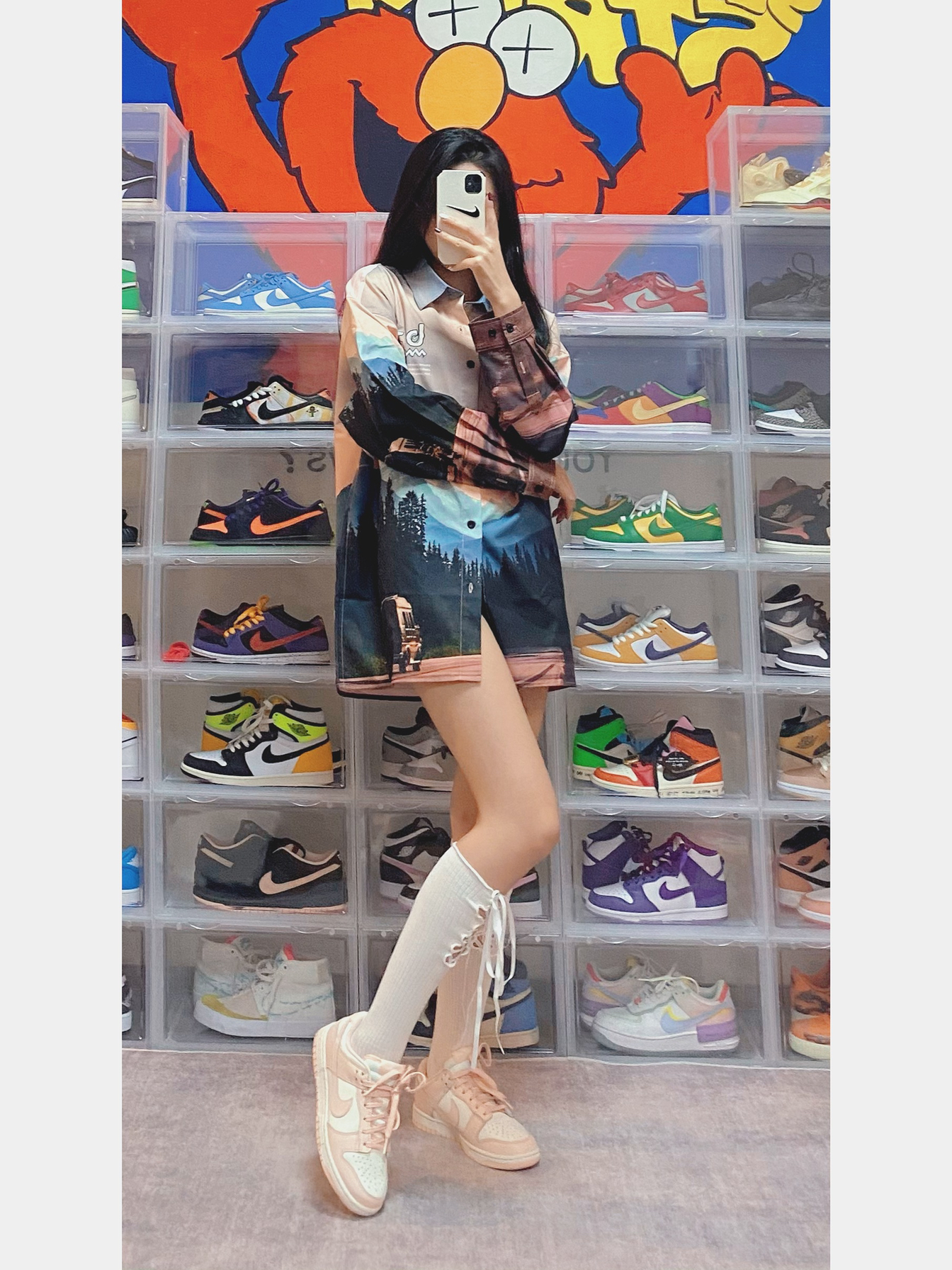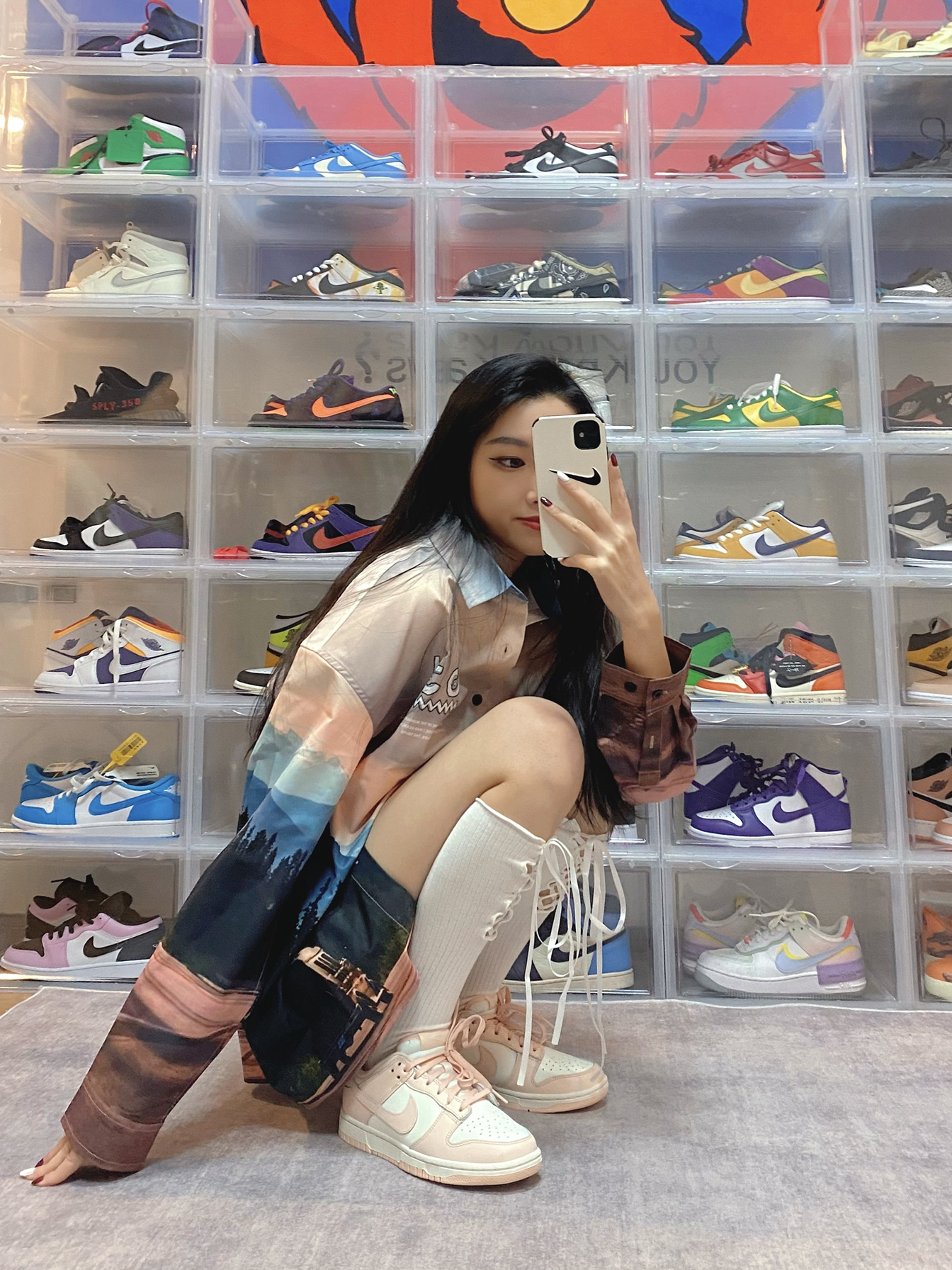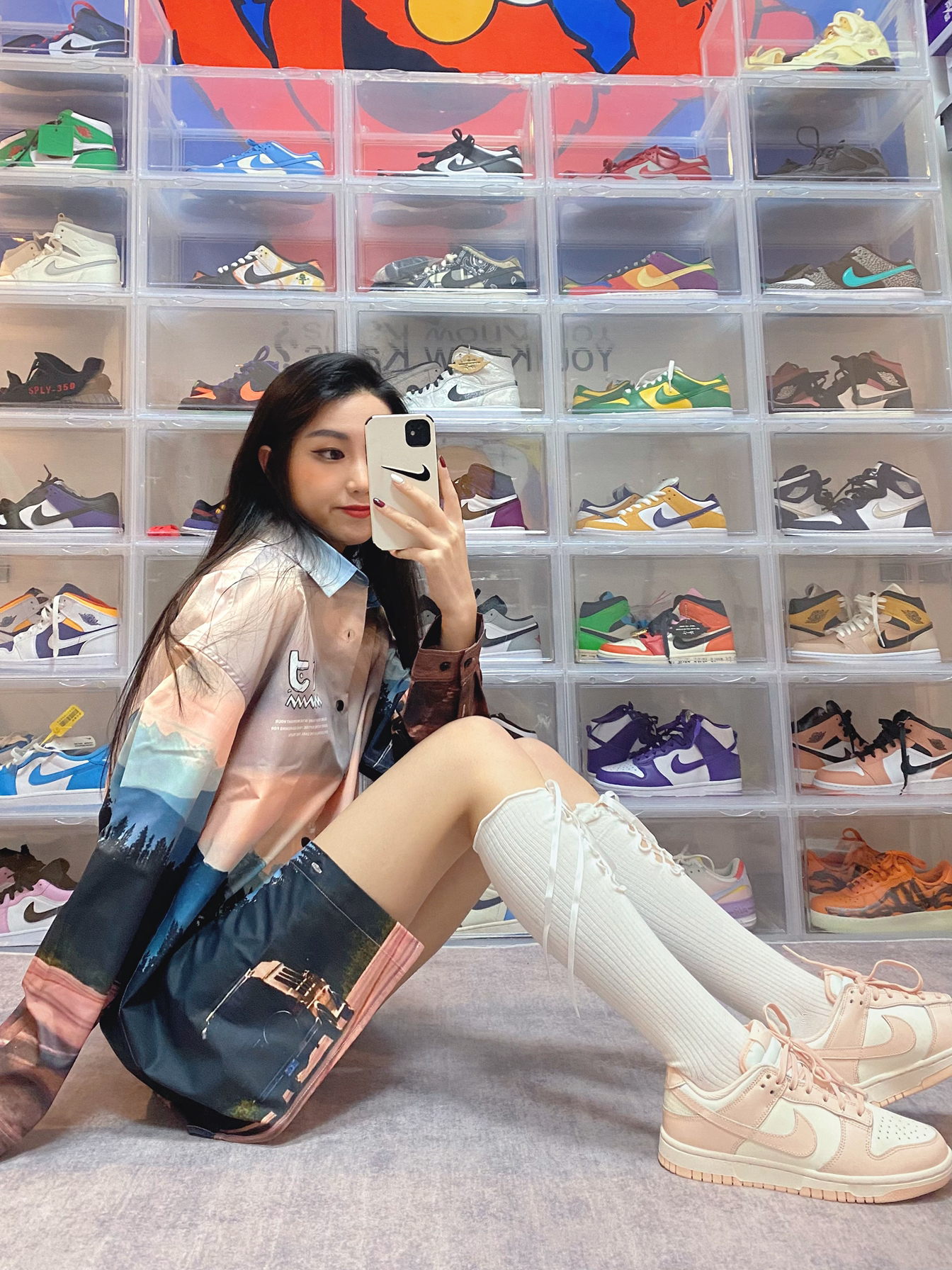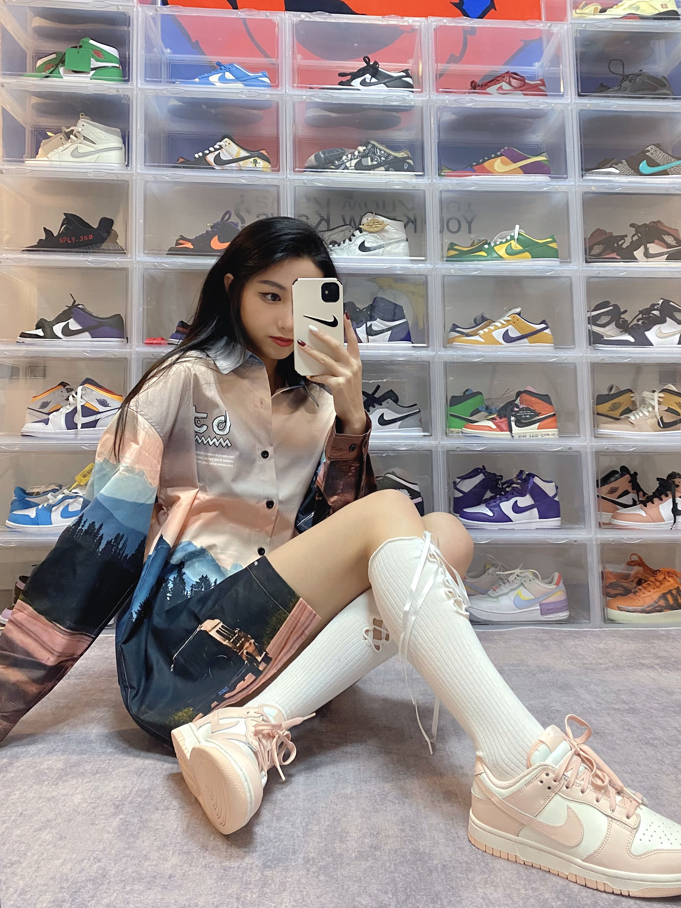 👟:dunk 粉白 👔:bt nike又对女生下手了啊a 粉粉的少女感满满 配色真的很减龄显嫩呀 很适合春夏穿 女生搭裙子会很好看呀