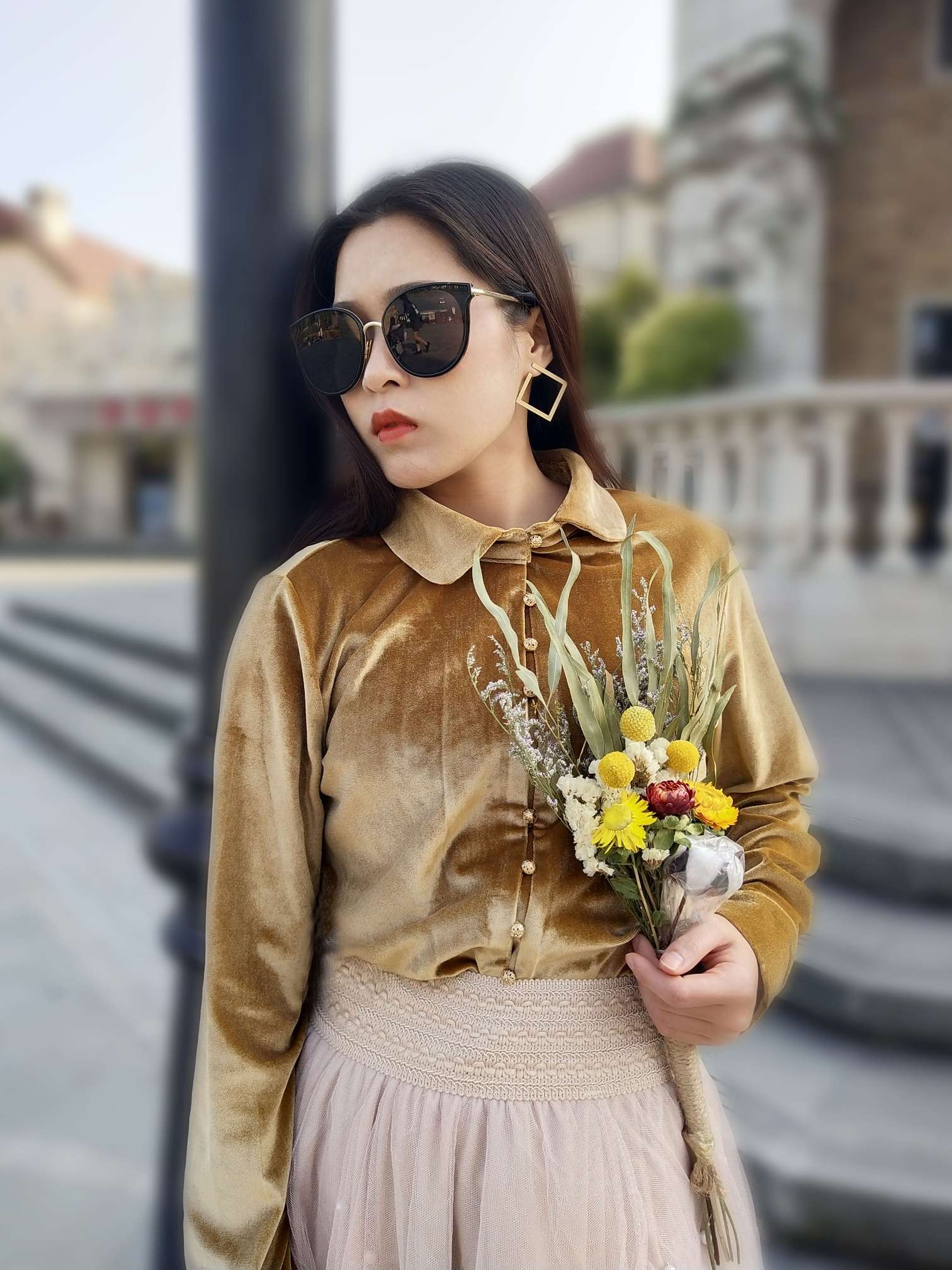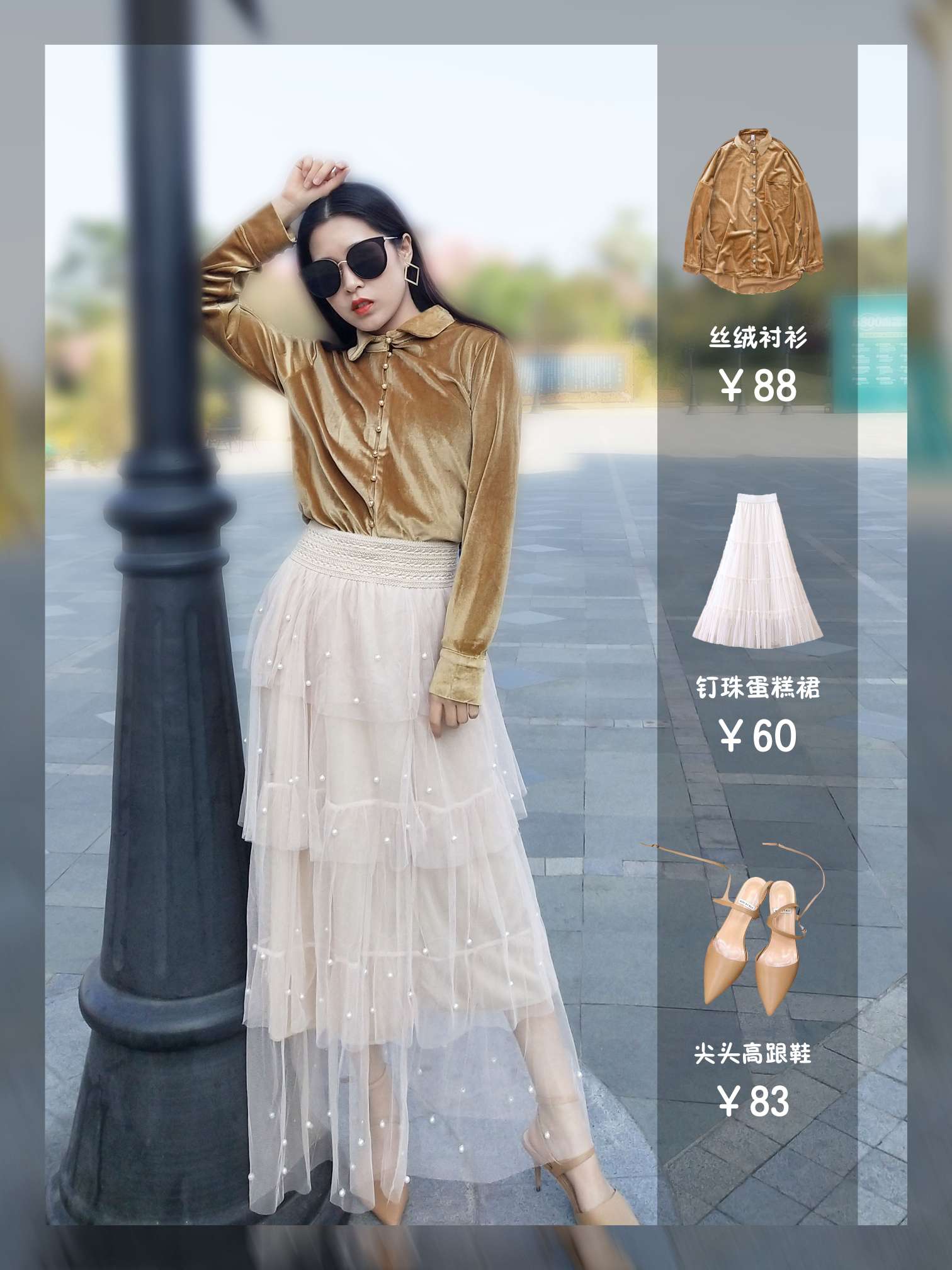 1⃣丝绒衬衫 温暖的落叶黄丝绒衬衫 面料摸着很舒服也暖和 扣子都是设计的金色扣子 款式稍微有点修身 上身非常复古好看~ 2⃣钉珠蛋糕裙 超级仙女的一款网纱蛋糕裙 网纱上不规则的小钉珠,起到了锦上添花的效果 内衬有弹力,有一定的厚度 轻飘飘的面料,但不透,既挺阔又有质感 上身太仙女了~ 3⃣尖头高跟鞋 这款高跟鞋真的很喜欢 材质是软皮,不会磨脚 鞋跟虽然很细,但是穿着很舒服 走路起来一点都不...