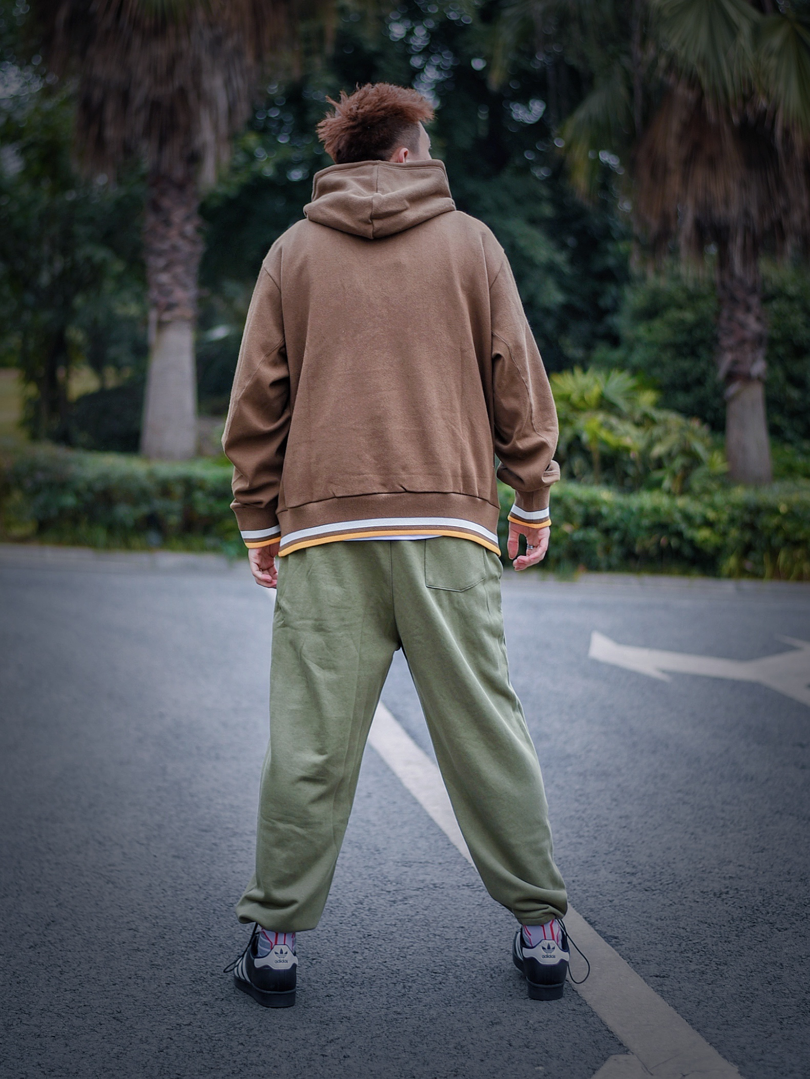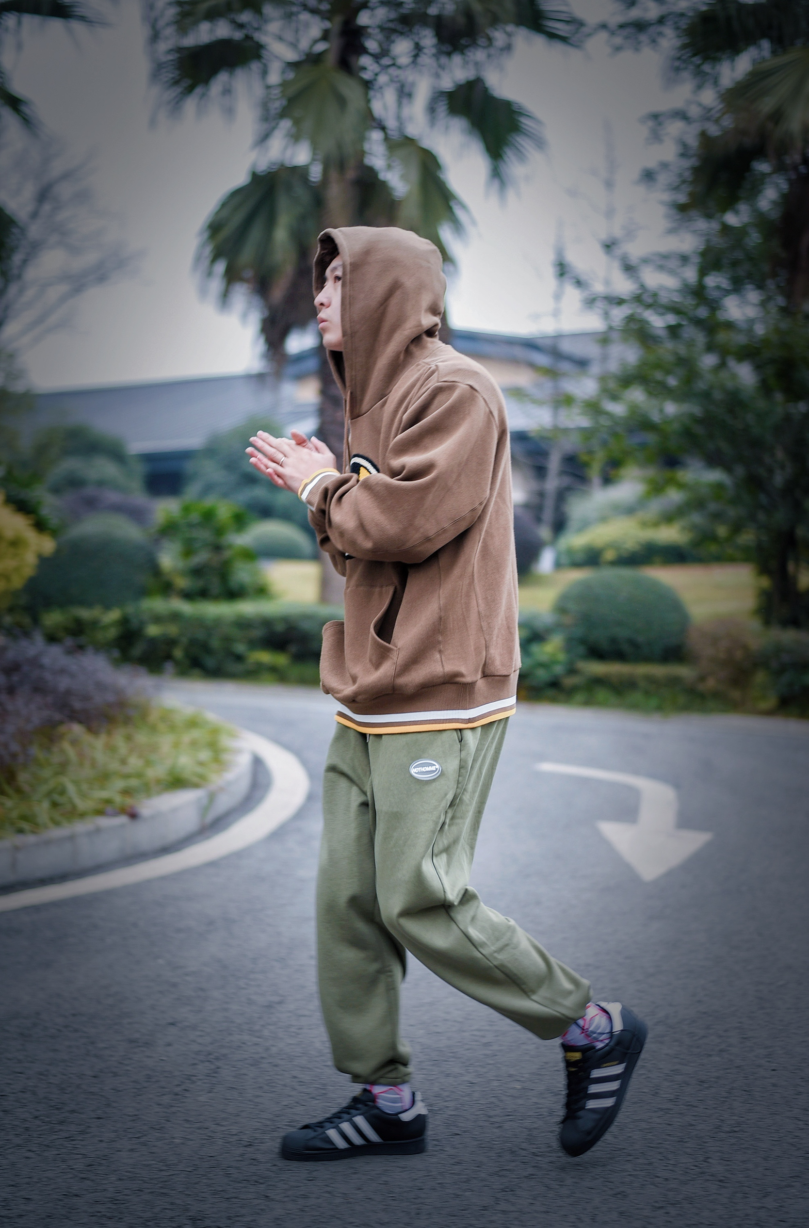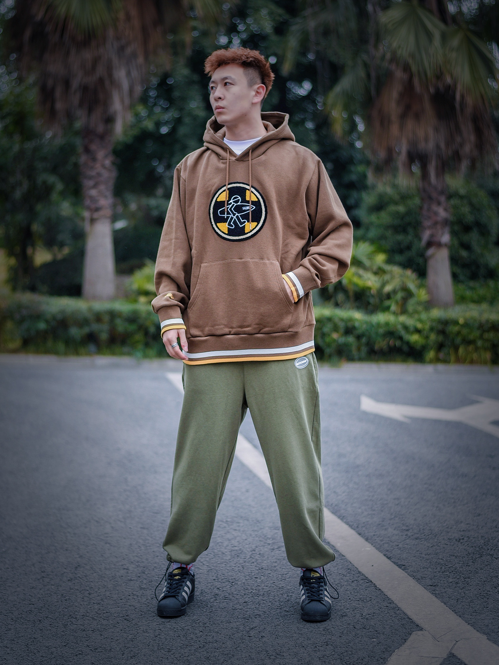 👕:pjs宽松厚款毛巾绣卫衣 👖:nothomme抽绳束脚卫裤 👟:阿迪黑贝壳头 卫衣的颜色是深棕色的这种,在冬天穿起来很百搭而且不容易撞衫,胸口的毛巾绣印花也是满满的质感,时尚又简约 裤子是一条极简风格的长裤,干净的版型可以说是特别有气质,整体穿搭起来有一种特别休闲的感觉,穿起来也特别舒服