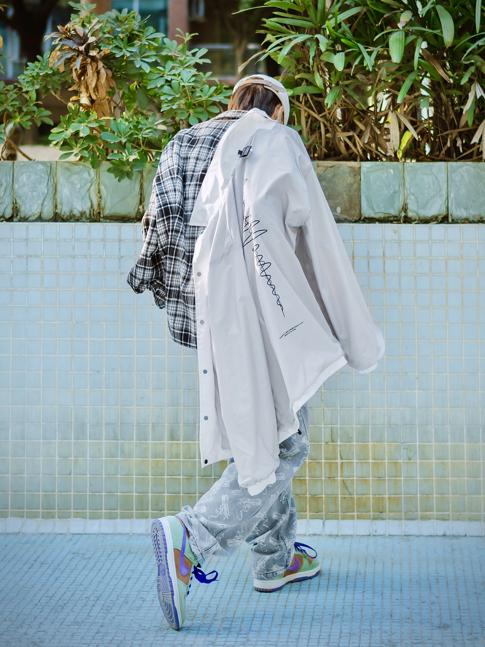 ▪️外套:KILLWINNER\双色印花夹克外套 ▪️裤子:PASET\满印水洗牛仔裤 ▪️鞋子:Nike Dunk 丑小鸭 KILLWINNER虚拟现实夹克外套,衣服整体白色调,通过印花的修饰点缀,真的不是一般好看,尤其是背后大面积的印花真的着实吸睛,尽管不是双面穿外套,但内置印花图案还蛮有特点的。 PASET满印水洗牛仔裤,裤子偏蓝色系,养眼天空配色,宽松的版型搭配满印水洗的设计,真的很国...