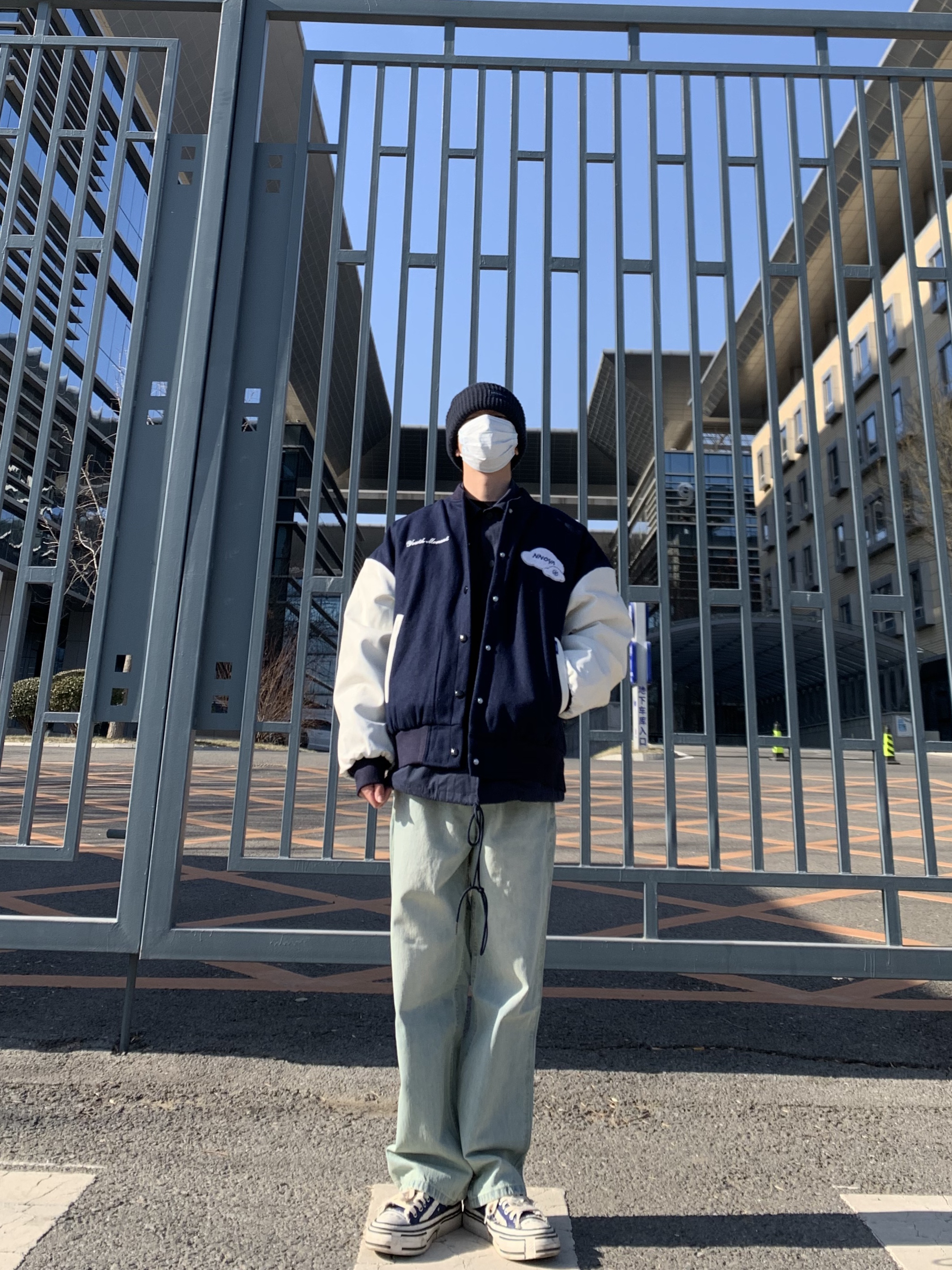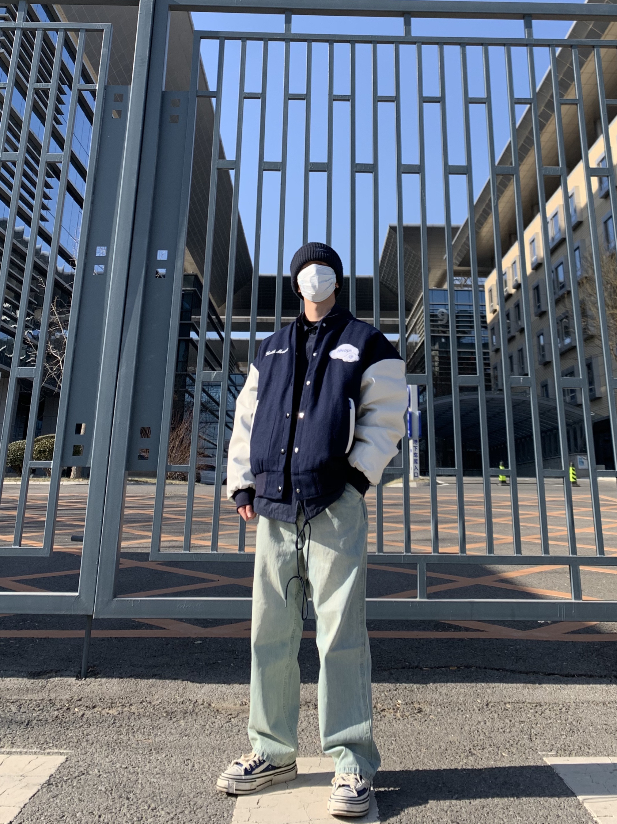 🎩/H&M冷帽 👕/NNOVA 棒球服 👖/Nothomme 牛仔裤 👟/Xvessel板鞋 棒球服是今年vibe风的首选,我比较喜欢深蓝色,所以鞋子与棒球服还有帽子口罩成了颜色上的呼应,因为裤子是浅色牛仔裤所以对颜色的搭配没有影响,衣服也很新潮!