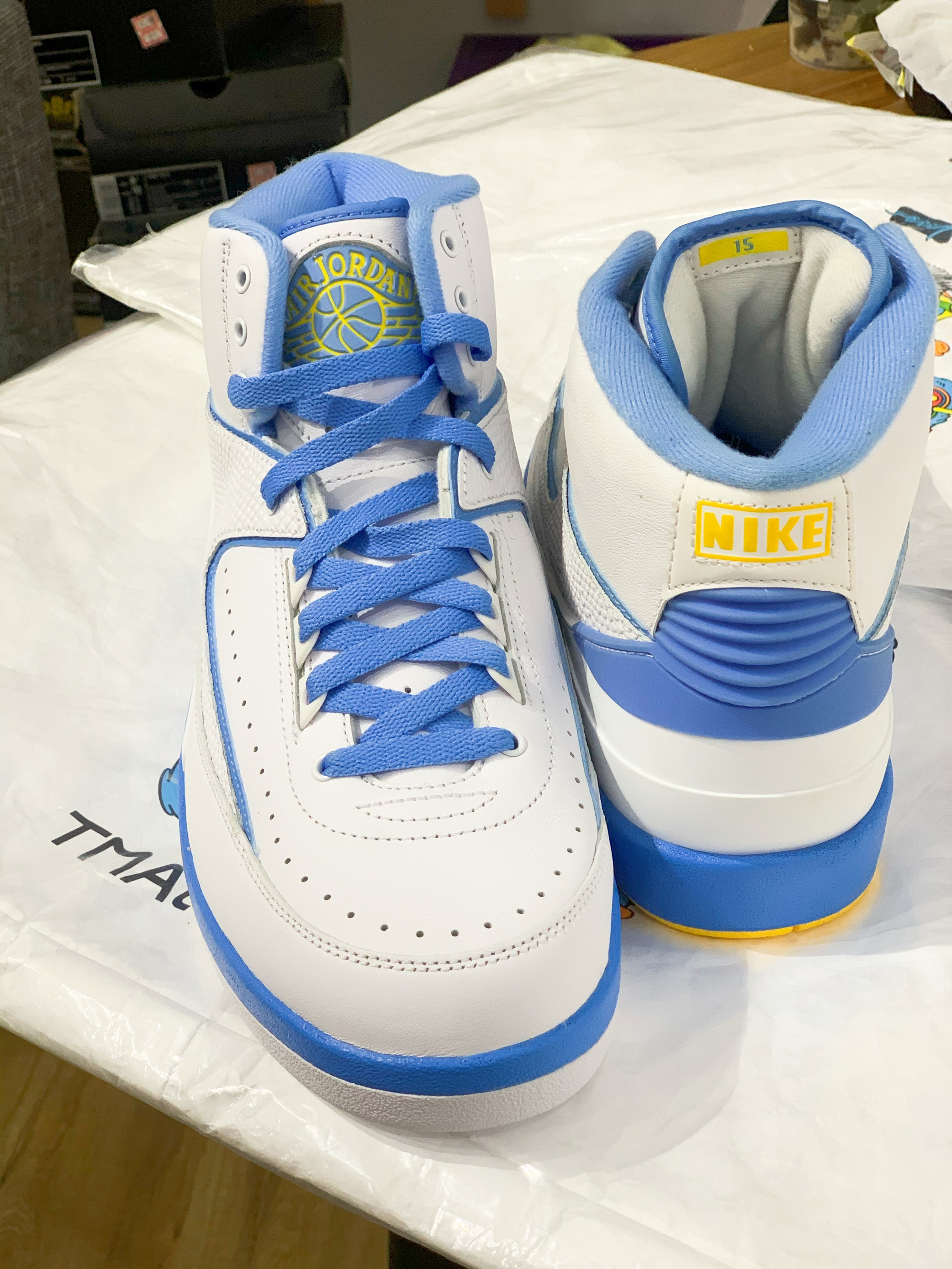 今日份开心Aj2安东尼pe还记得掘金时期黄金双枪么白蓝 黄配色让人怎么拒绝鞋舌有“15”号的ogo是当时安东尼的 球衣号码03黄金一代的甜瓜那时候还是小甜瓜时光冉冉 历历在目aj2的意义其实挺重大的类似承上启下的作用