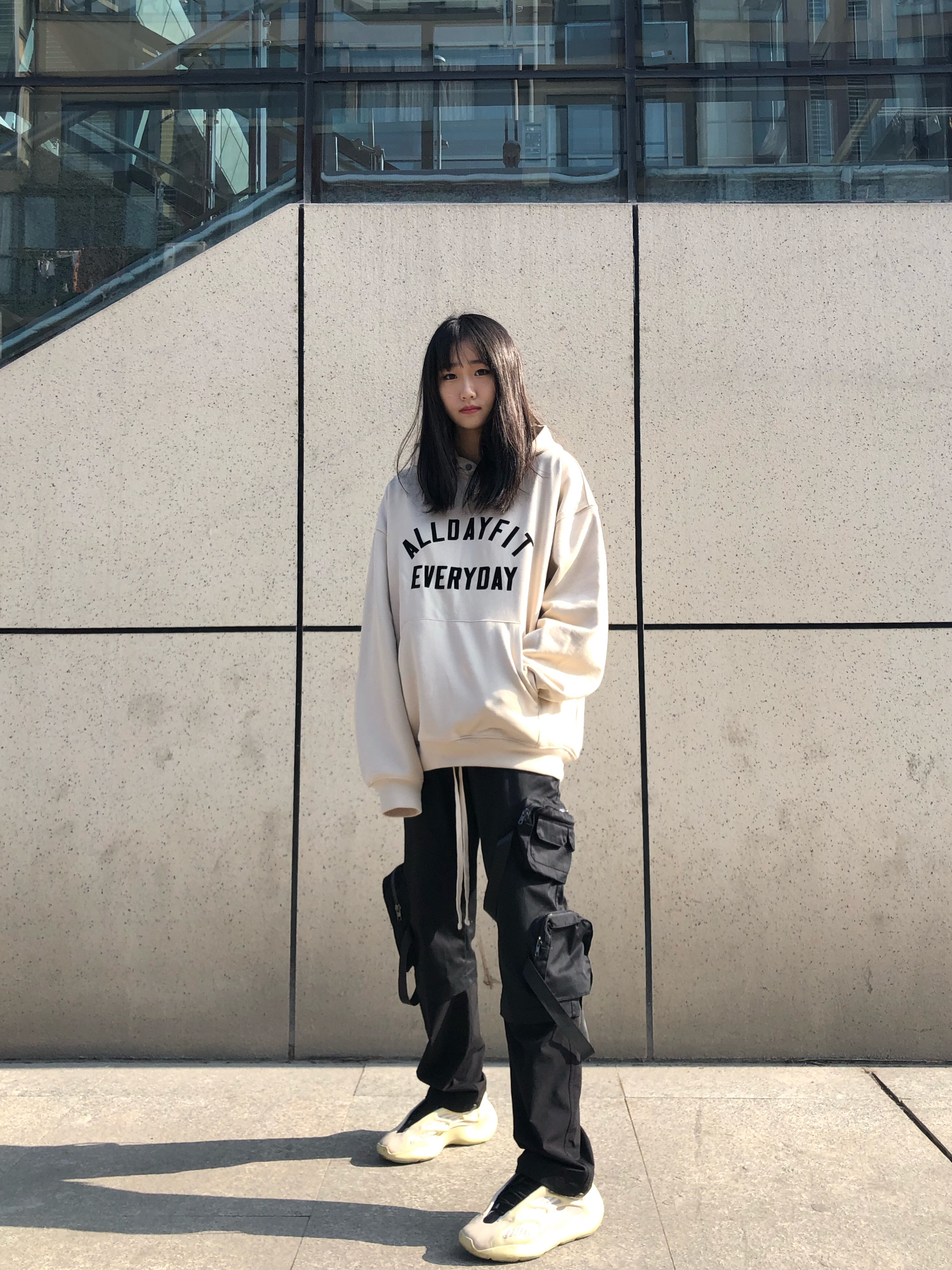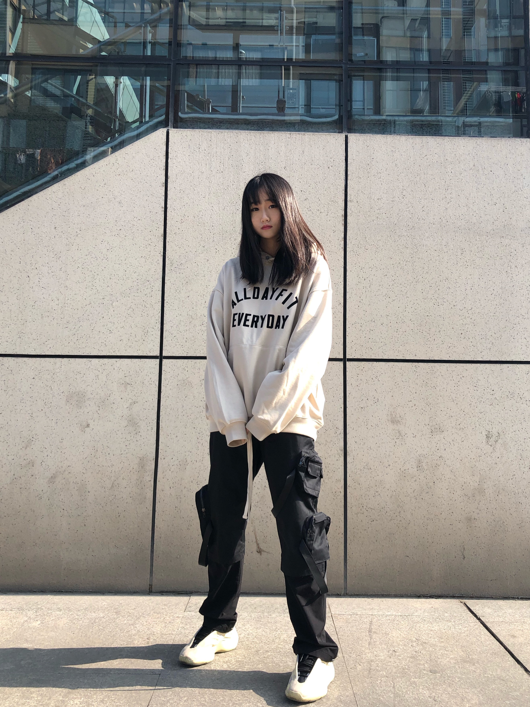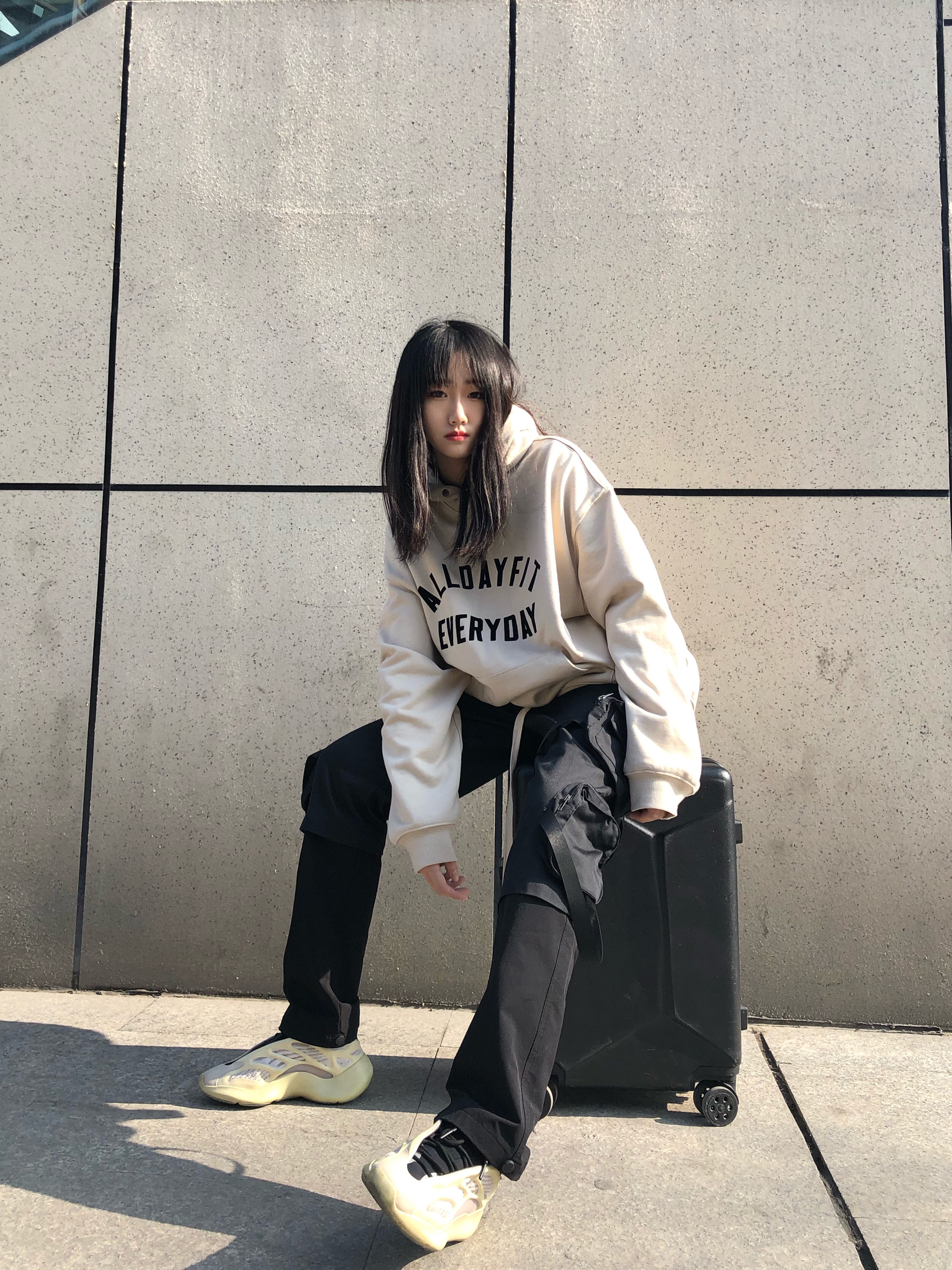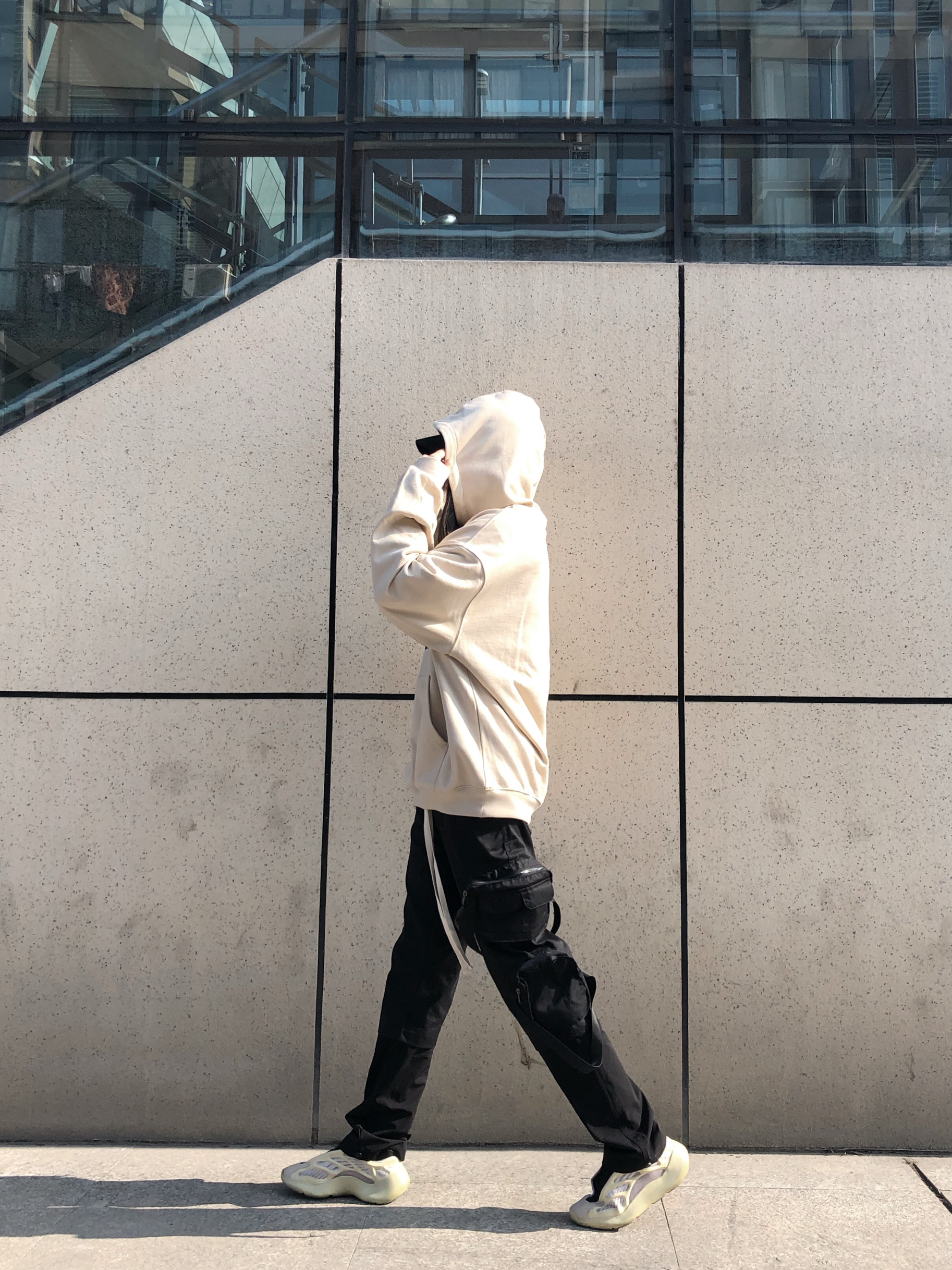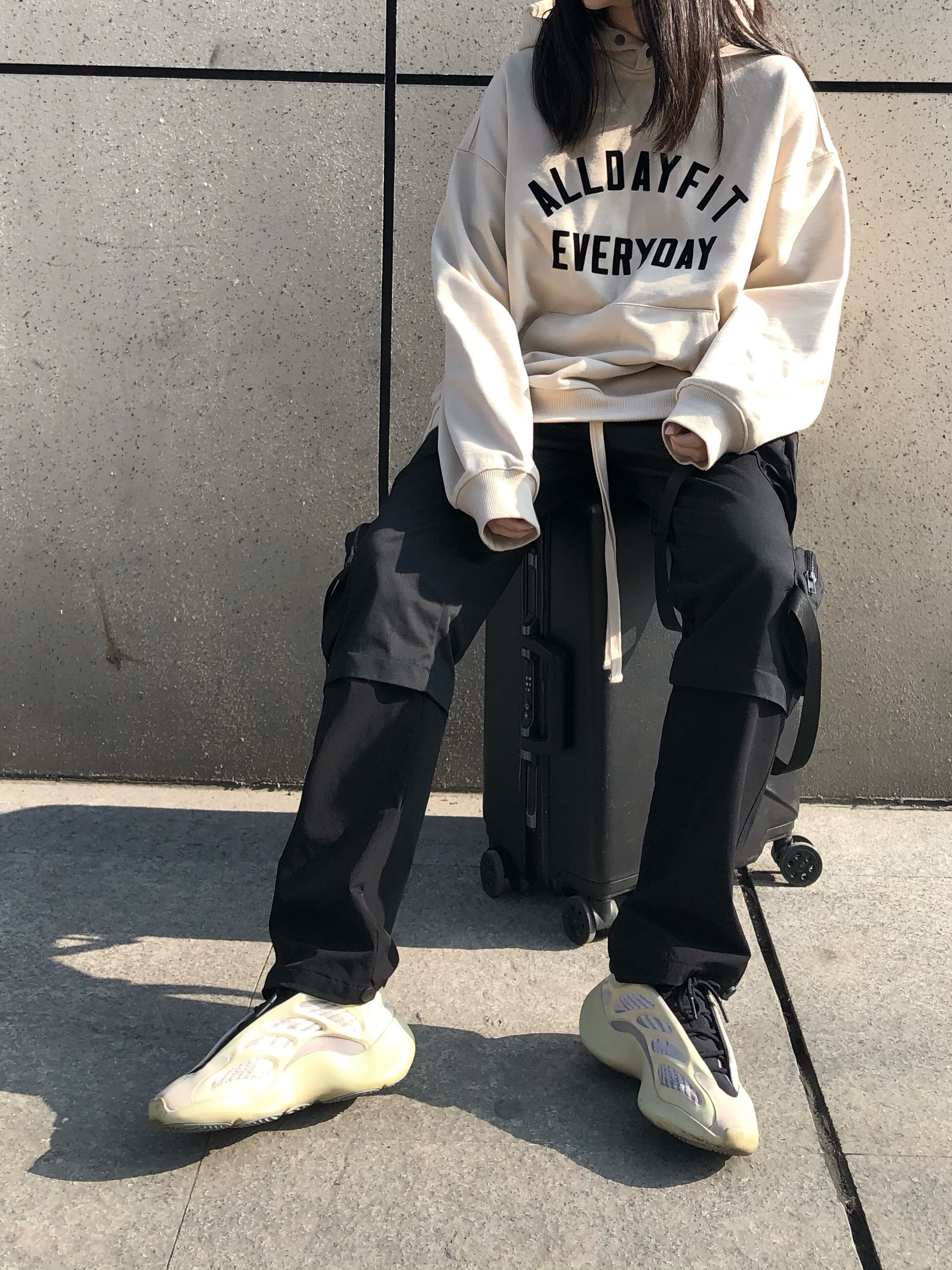 👔卫衣:CHINISM@CHINISM_OFFICIAL 👖长裤:legend风琴袋长裤 👟:Adidas yezzy 700v3异形 这件卫衣版型真的绝了 很显瘦很立体 非常修饰身材 可以说是我上身效果最好的几件卫衣之一了 整体米色与黑色字母搭配让整件卫衣也不再单调 有点高街的味道了哈哈哈 领口处的两粒按扣设计很细节 可以让帽子更加立体有型 搭配风琴袋长裤 帅气over~