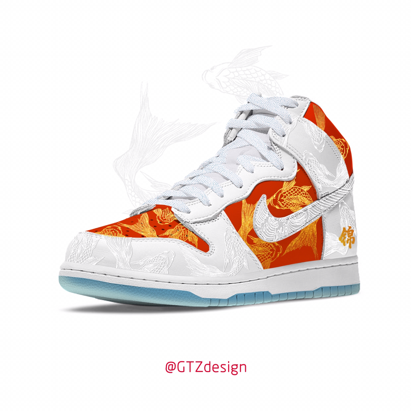 这次我选了「锦鲤」作为配色的灵感来源,是因为我想借幸运锦鲤向大家表达:希望新的一年大家都能❤️平平安安,❤️健健康康,❤️万事顺遂,❤️财源广进! 鞋整体配色也是来自于锦鲤的白红色,加上金色的锦鲤纹样点缀。白色部分是浮雕的锦鲤纹样,我想做出简约而不简单的效果。鞋底采用了透明水晶底+锦鲤纹路的设计,能展示更丰富的细节,鞋垫也是印满了锦鲤在池中游的感觉。 希望这双锦鲤能给大家带来好运吧!也希望大家能喜...