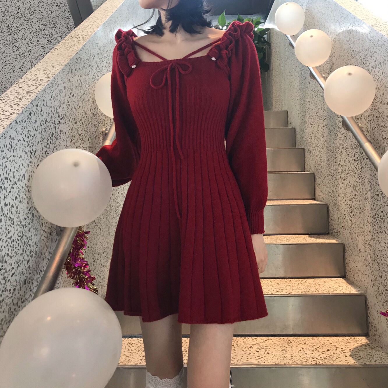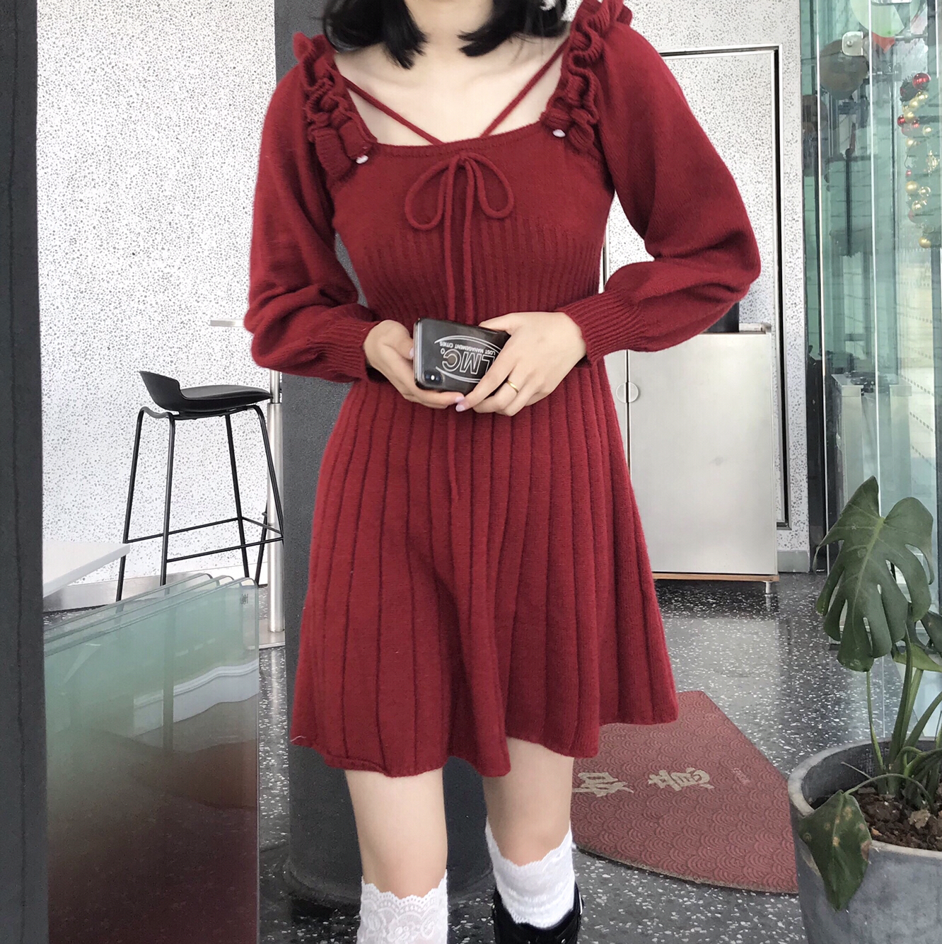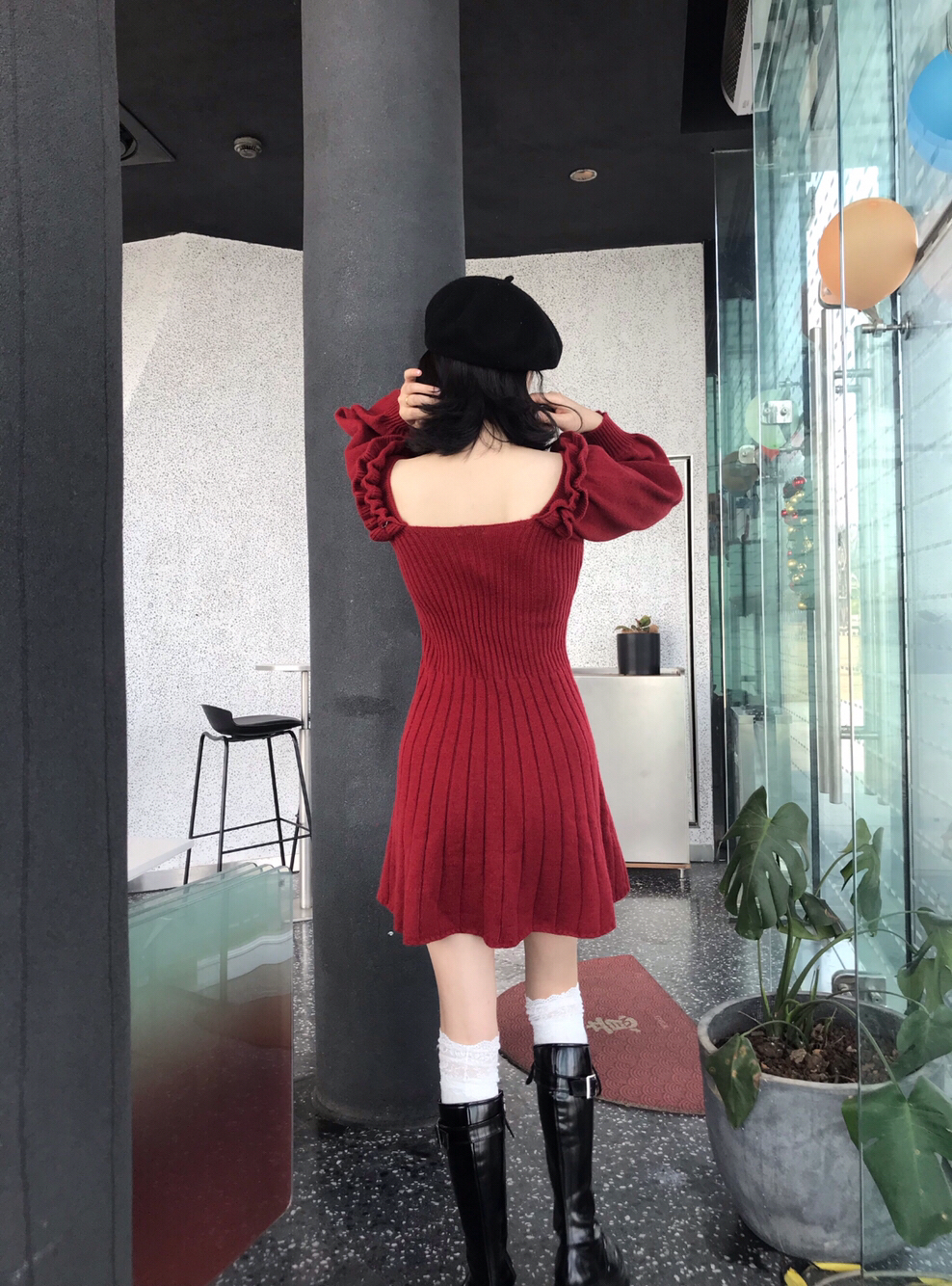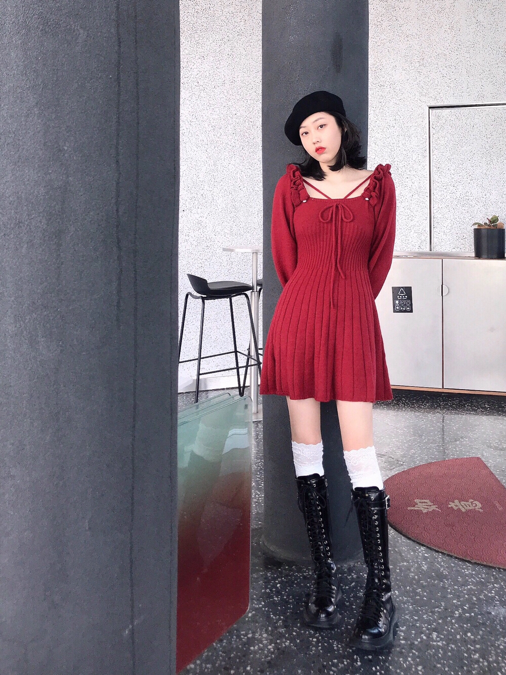 👧🏻168/49kg 呜呜呜红色真的太显白了 不是正红色是偏暗红色 滴 新年穿太合适不过啦红红火火恍恍惚惚 ▫️ 靴子:Alexander McQueen麦昆骑士靴 搭配了白丝袜 长度刚刚好到膝盖部分 炒集爱!! 帽子是十几块随便买的 袜子也灰常平价主要质量出乎意料的好哈哈哈