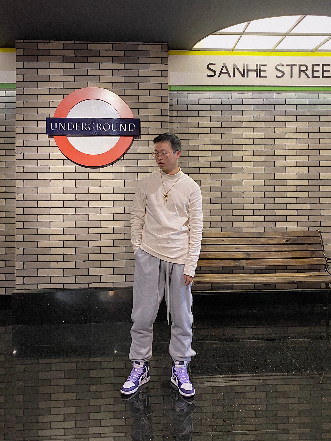 摆脱黑色,接受浅色系穿搭的我。 👕: COS 非常简约,很舒适的面料。 👖: Nikex Fear of Godx NBA 玩法特别多,排扣真的很修饰腿型。 👟: Jordan1 白紫 肯定还是需要突出的撞色。紫色很适合。