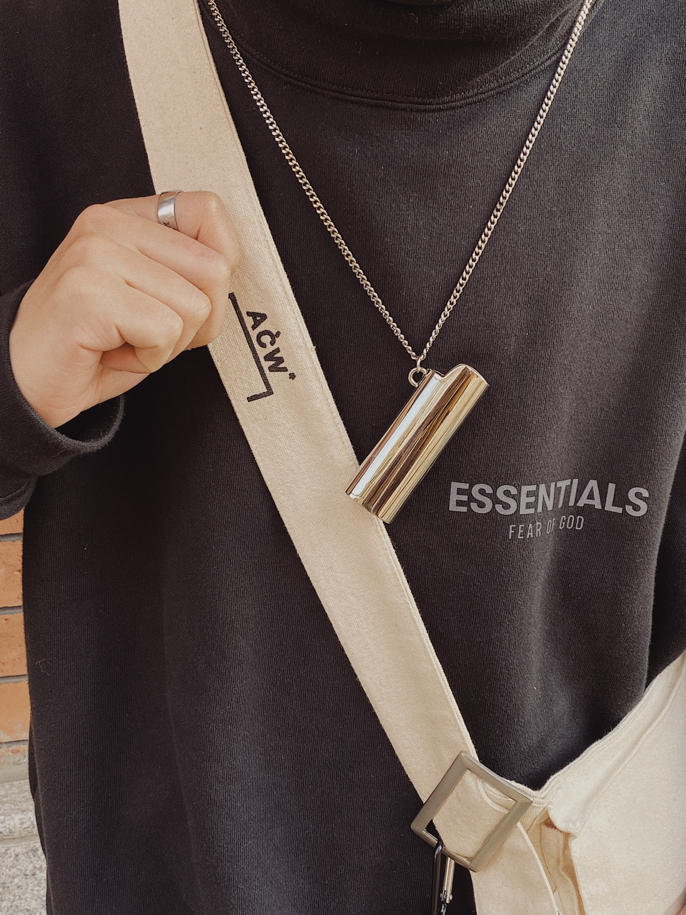 🧢:PALACE 👕:FOG ESSENTIALS 👖:PIGALLE X NIKE 👟:CONVERSE 1970s 👛:ACW ⛓:AMBUSH 最复古的就是匡威1970s,感觉重回校园时光。 喝咖啡里最潮的就是我。