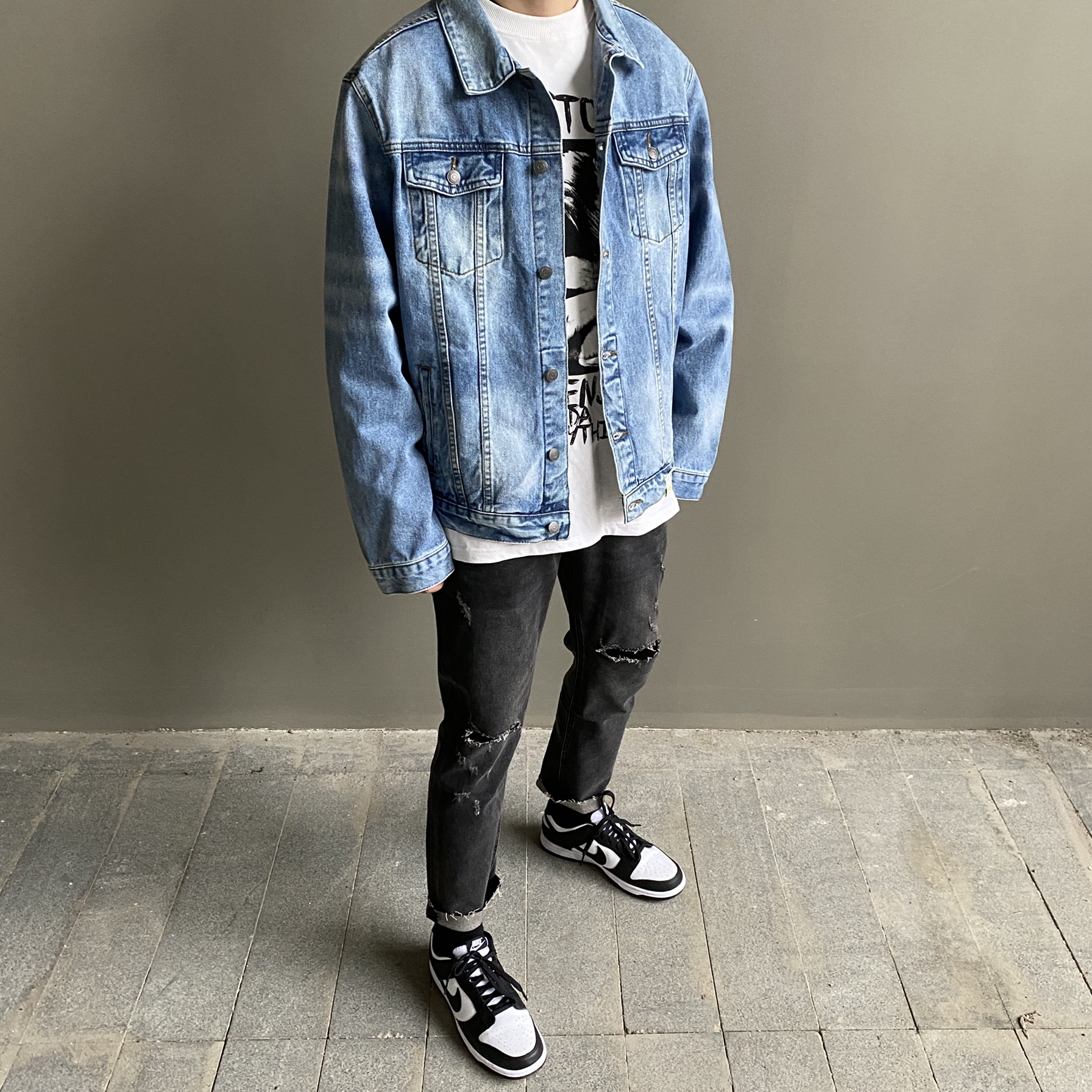 👕:IDLT 👖:CLIMAX 最近天气越来越热 厚棉袄可以放下了 早晚温差大 还是得整件薄外套的 我个人真的太喜欢牛仔夹克了 经典的同时 百搭性 口袋多也是我喜欢的点 搭配一条破洞裤就稳了 虽然不知道是否还流行破洞裤 但是热天穿破洞裤还是很舒服的 climax的裤子也不用多说 质量稳的!