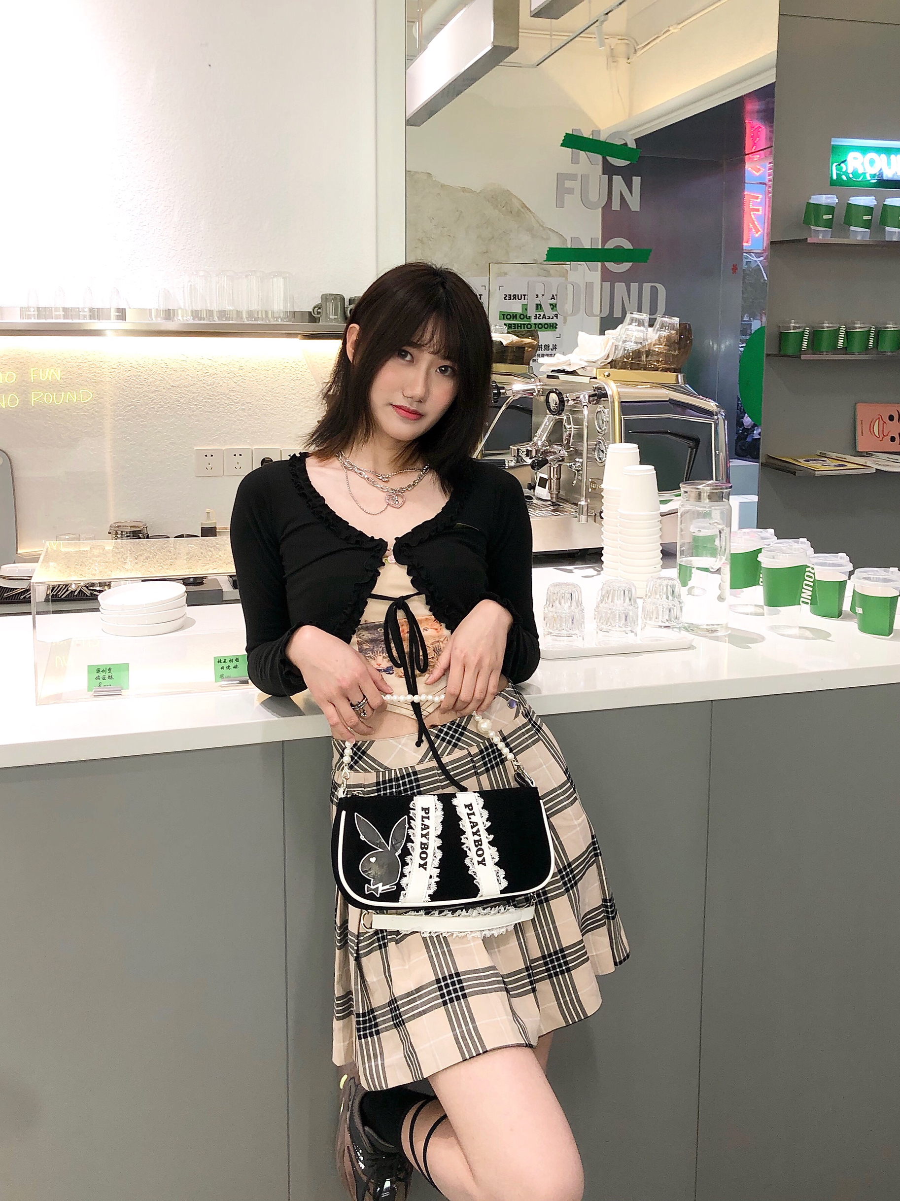👩🏻小怡:173cm |53kg - 👔:Fallenangel 泰国的小众品牌,很多辣妹都喜欢他家的,简直太好看啦,黑色很百搭,袖口是花边设计,还有绑绳设计,很好看~里面搭配小背心很合适 👗:H&M 百褶裙校园风满满,格子设计增加复古校园气息,有种90s‘ 美国校园女学生的感觉! 👟:Adidas Yeezy Mauve 总被别人吐槽不好看的鞋,其实我觉得也上脚也很好看呀!一点都不土!我不管哈哈...