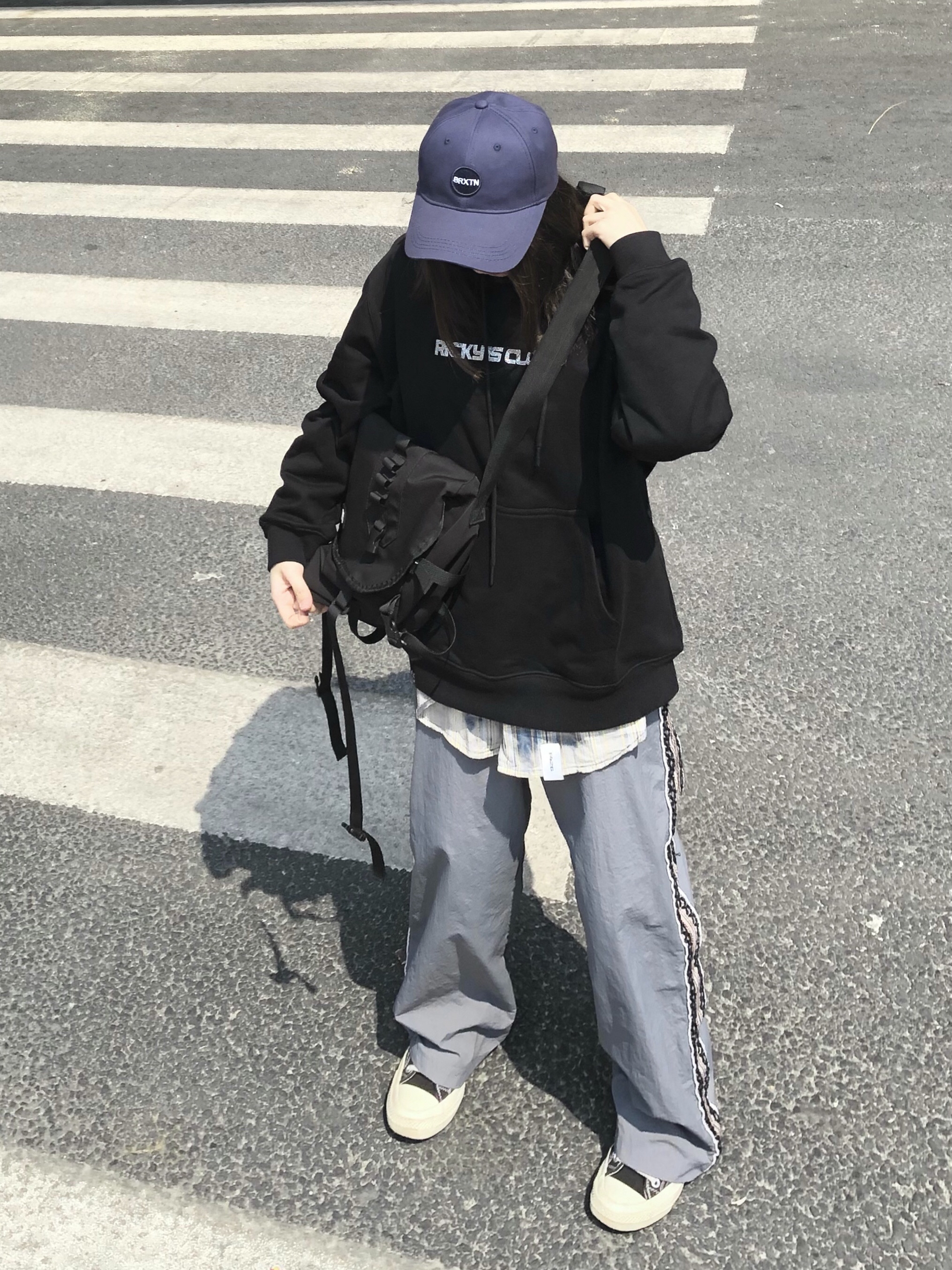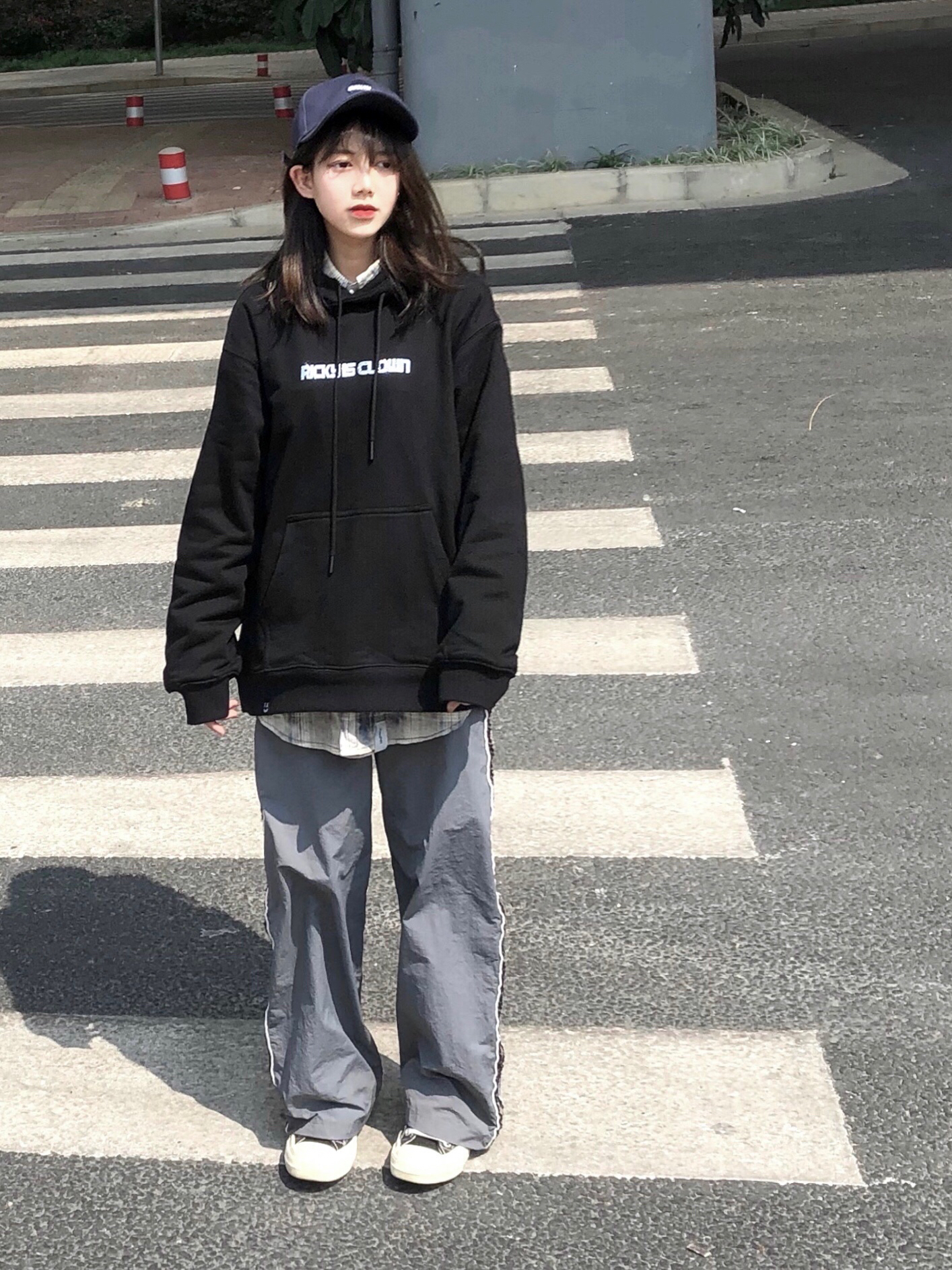 F426的格子衬衫打底再叠穿一件RIC的小水钻纯色卫衣简约又学生,配上帆布鞋棒球帽很适合做开学穿搭。 👔:F426/RickysclownRIC 👖:珍珍很懒 👟:匡威