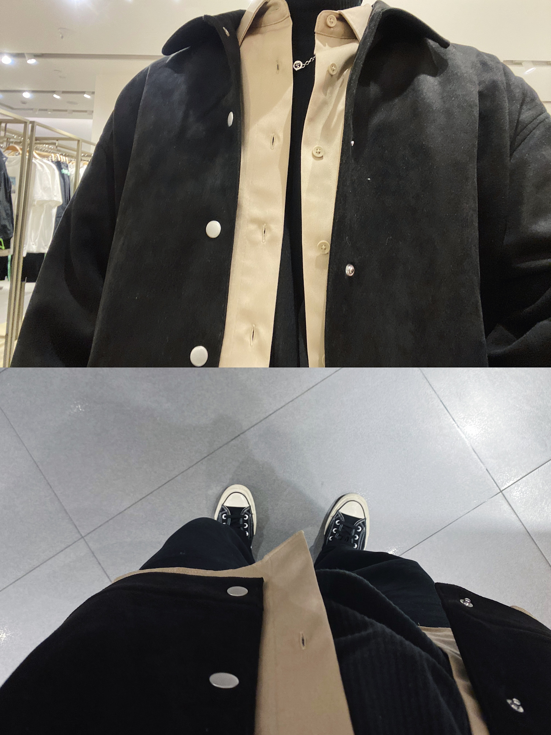 夹克 ML2R1EE2001 这款夹克是薄款绒面的材料,个人觉得这种料子质感 会更好些。 衬衫 MFO8S2BN2022 卡其色翻领衬衫当内搭或者春夏套在T恤外面做外 套都很好看。 裤子 nice rice 质感面料超好大家前面一直问的就是这款。 鞋子 converse1970s