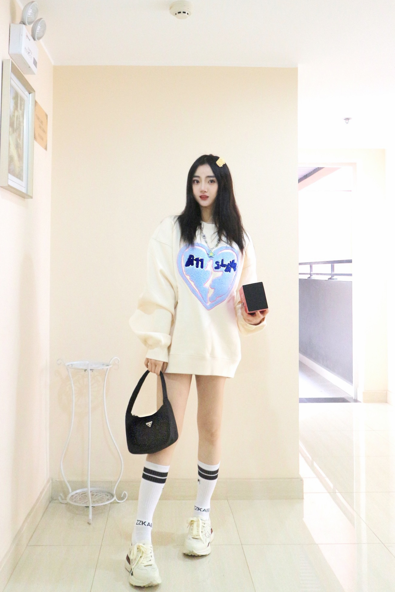 穿了小怪兽~绿绿的小怪兽~ 假两件叠穿的格子衬衫 +银色系项链+小白鞋 很省心的搭配嘻嘻!今天看起来有成熟一点吗🐱 👕: bt 项链 BLACKHEAD 👟 GUCCI