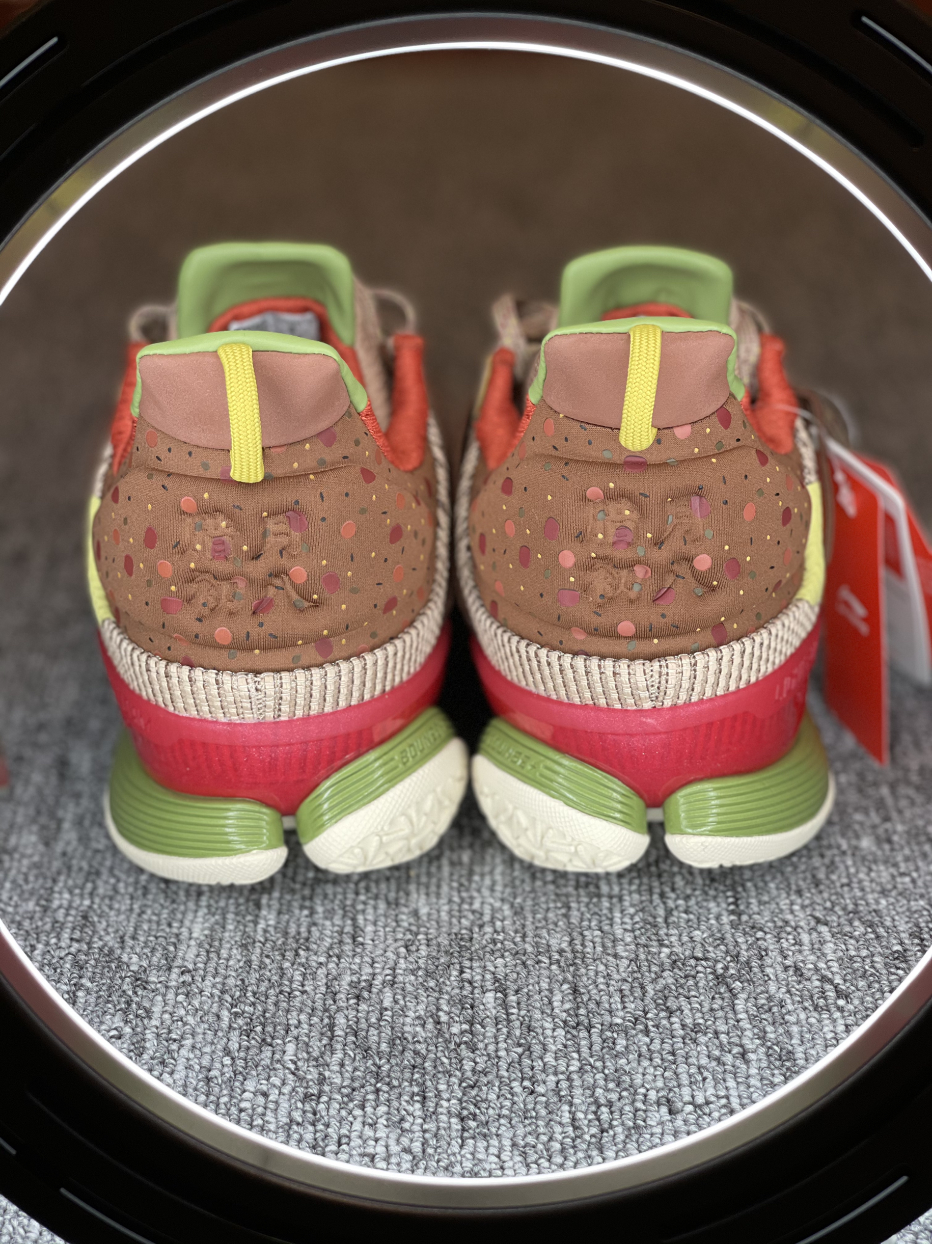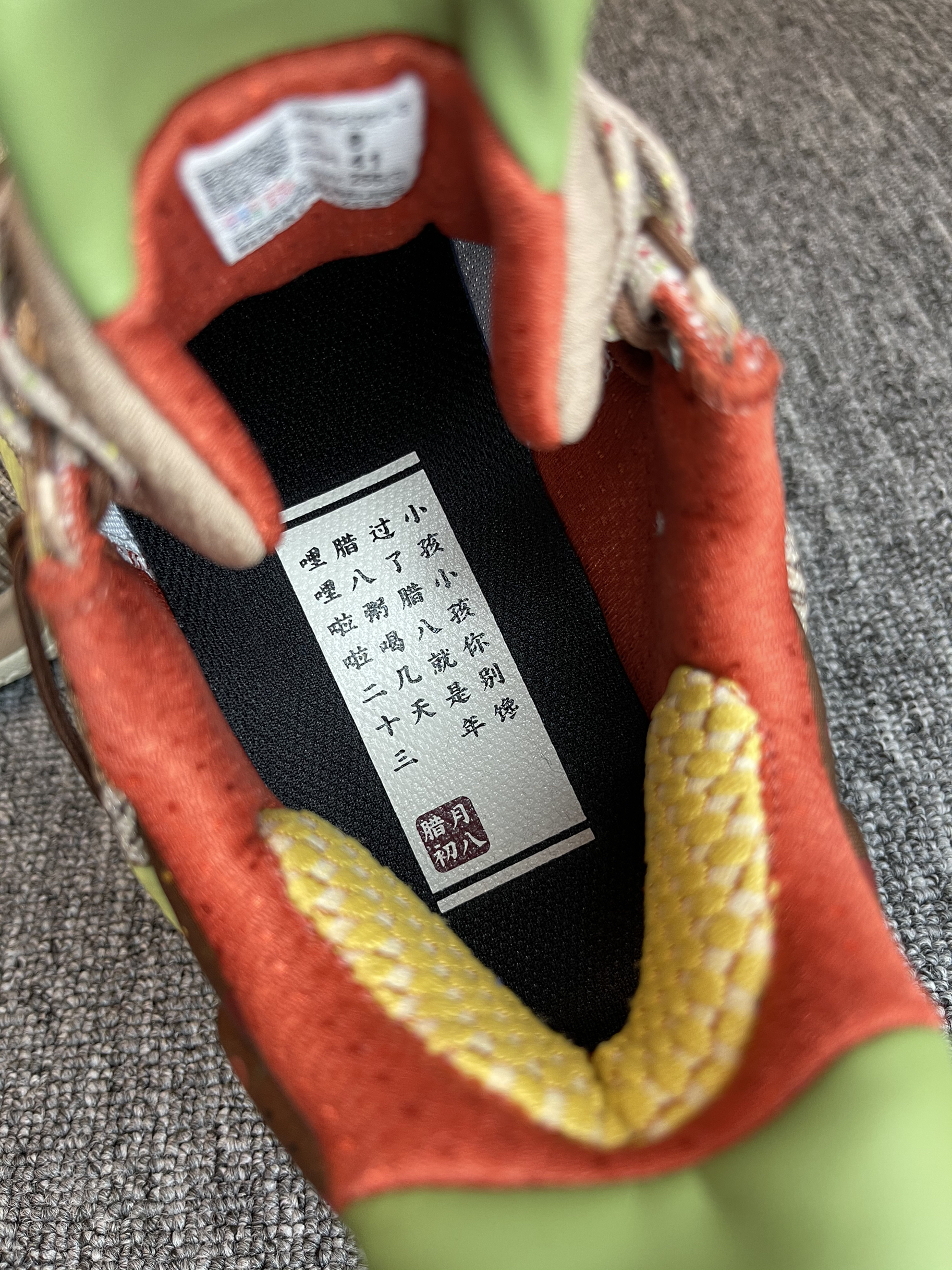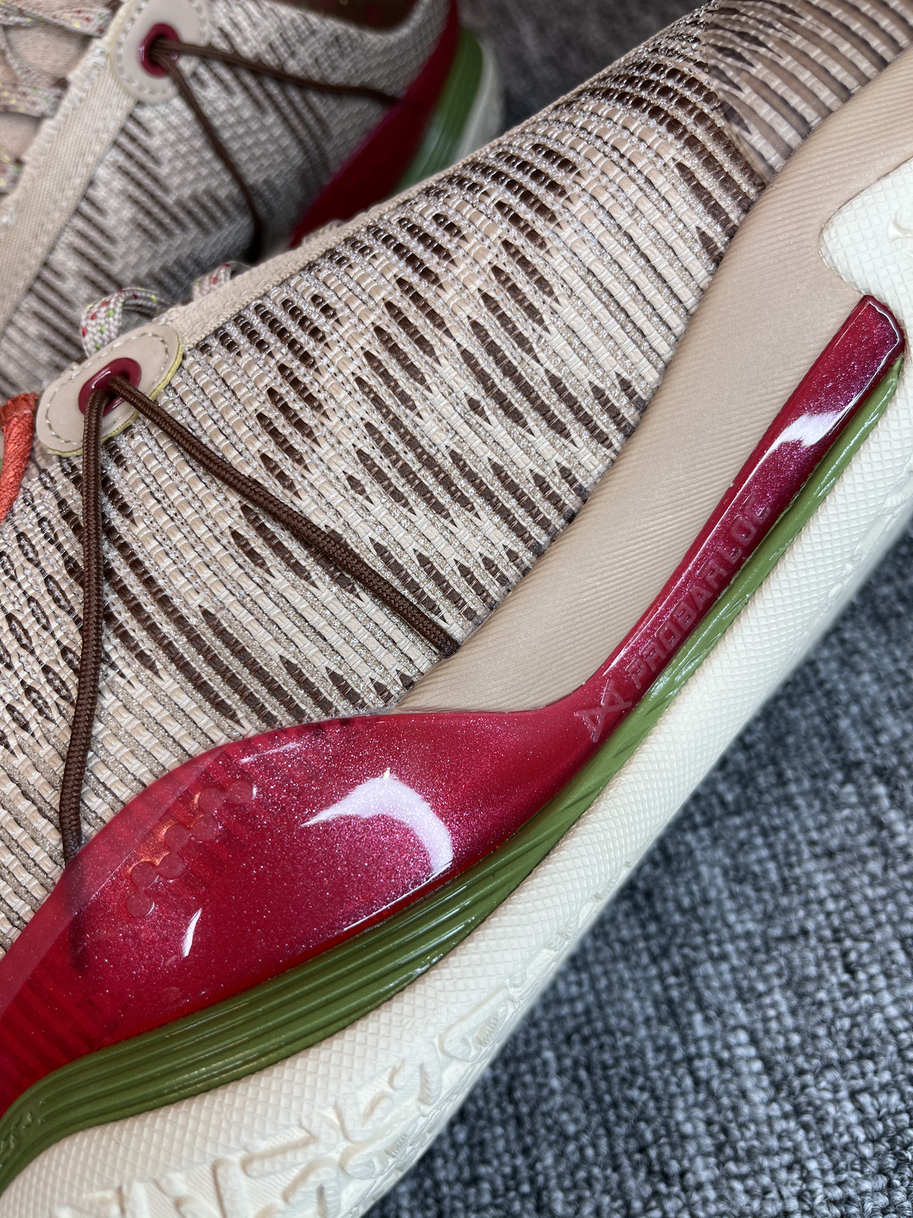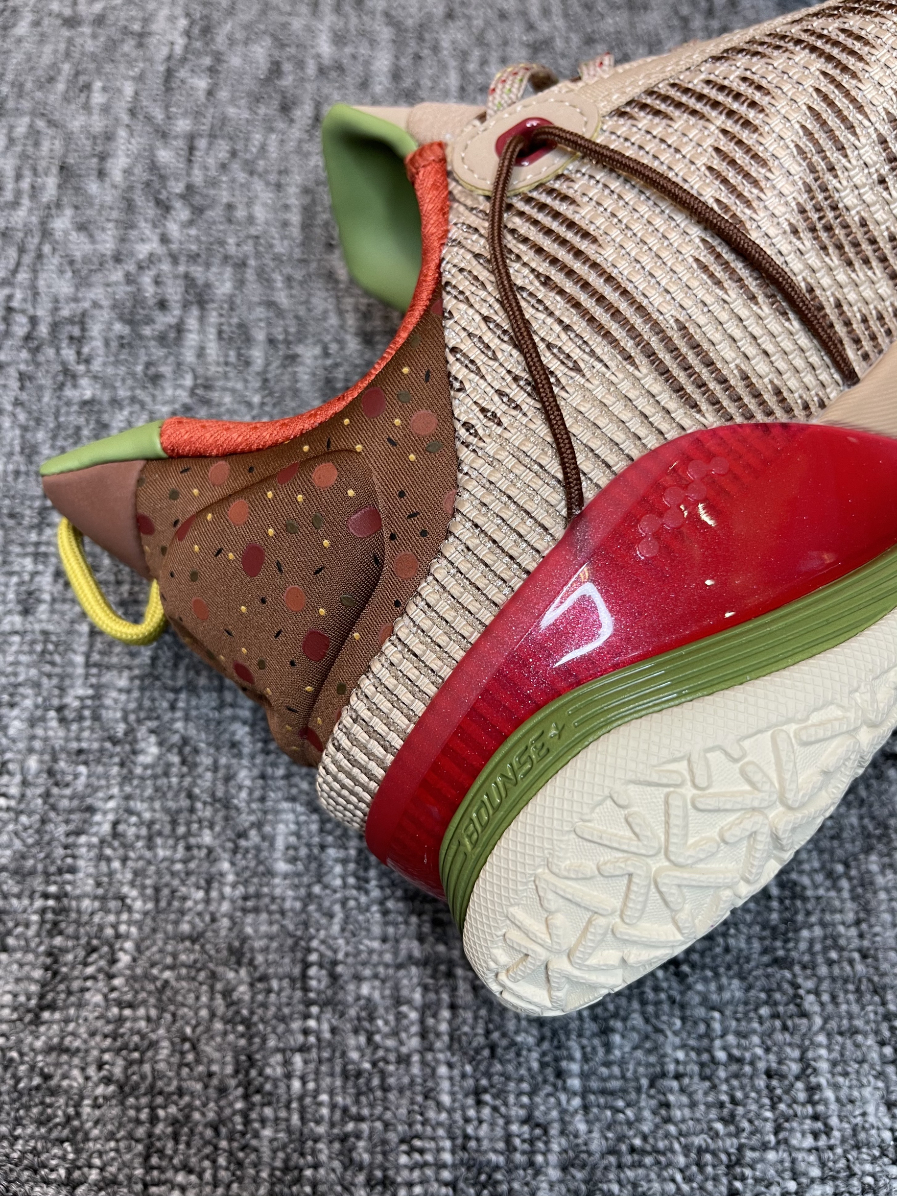 得益于NBA球场极高的上脚曝光率 最近对李宁闪击7来了兴趣 买了三个配色 先到了这双腊八节 简单开个箱 对于开学季学生党室外实战鞋来说 400左右这个区间应该是具有极高的性价比了 性能均衡 没有硬伤 高强度的一体织鞋面 双材料缓震 稳健的抓地 基本能满足大部分的需求了 这双腊八节配色还是比较有意思的 鞋后跟的腊月初八 搭配整体颜色的小点缀 腊八粥的形象跃入脑海 栩栩如生