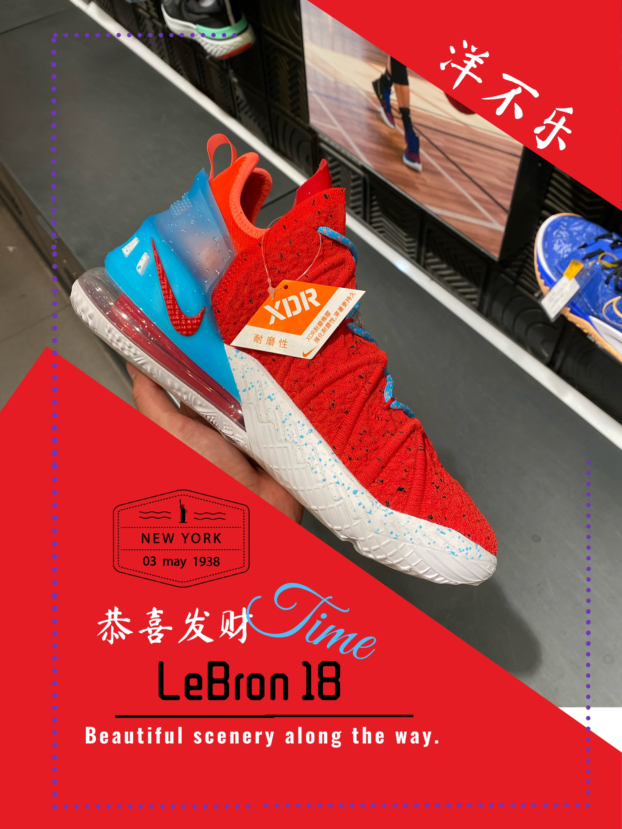 🔥 Nike LeBron 18 “恭喜发财” 🔥Nike联手本土涂鸦品牌400ml推出詹姆斯18恭喜发财。几乎是每年Nike都会根据球星签名鞋结合我们的传统文化来推出特殊的“CNY”版本,也特别受欢迎。 🔥细节: 💥将红色的Positeknit鞋面注入了黑色泼墨,看起来不会太单调还特别喜庆。 💥 “恭喜发财”也采用了特别的涂鸦设计,把潮流元素和传统风格进行融合,呈现出年轻阳光、活力四射的感觉...
