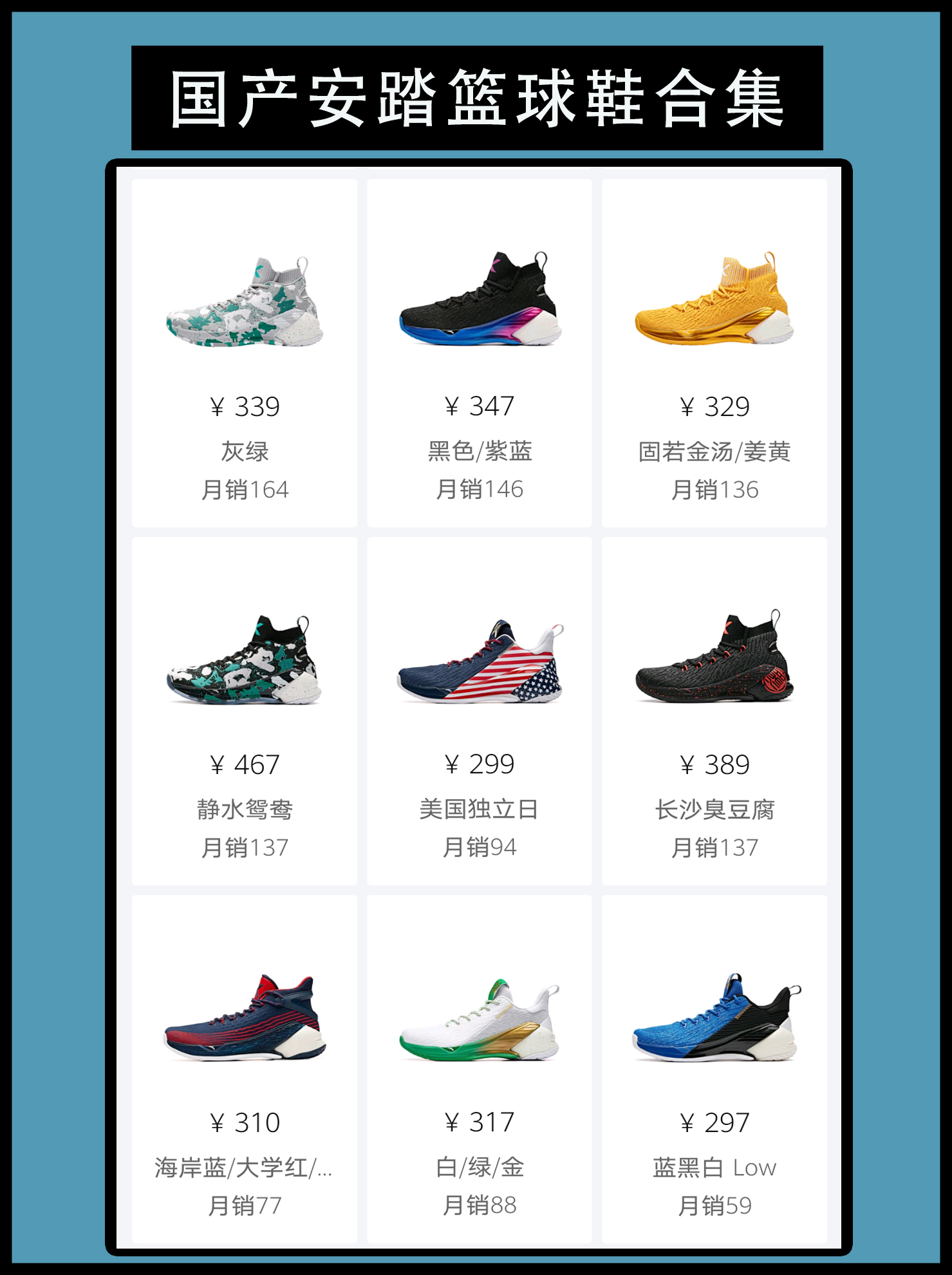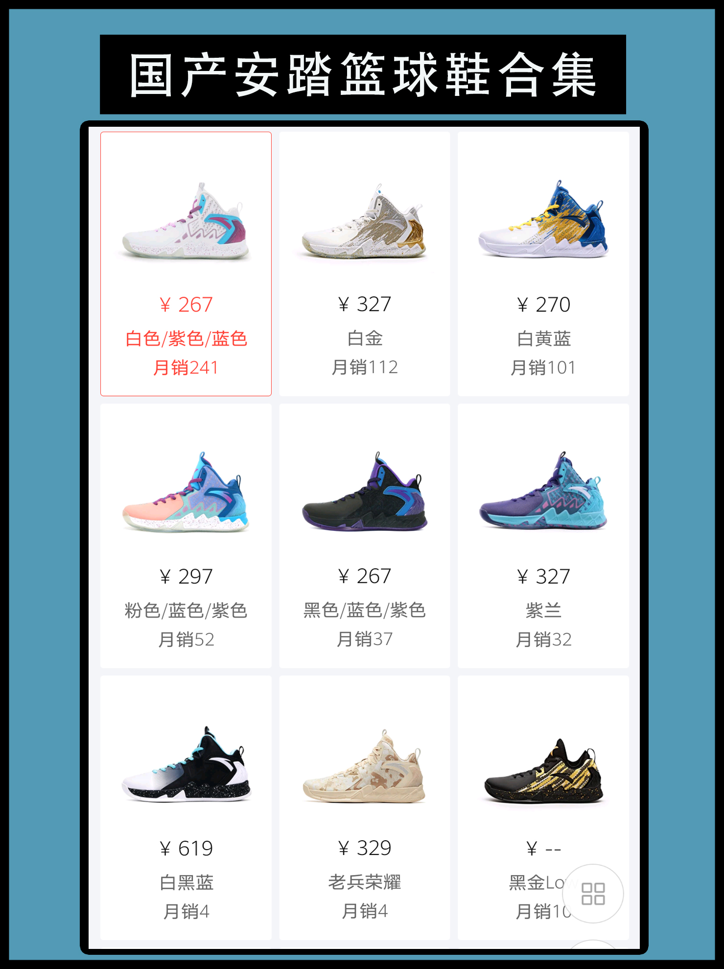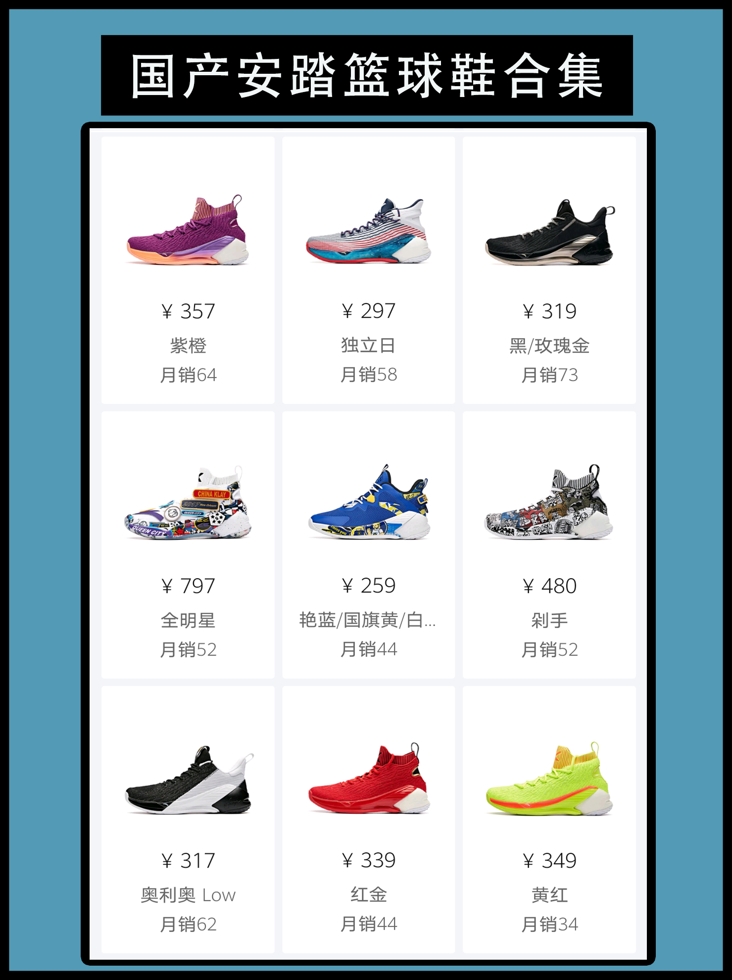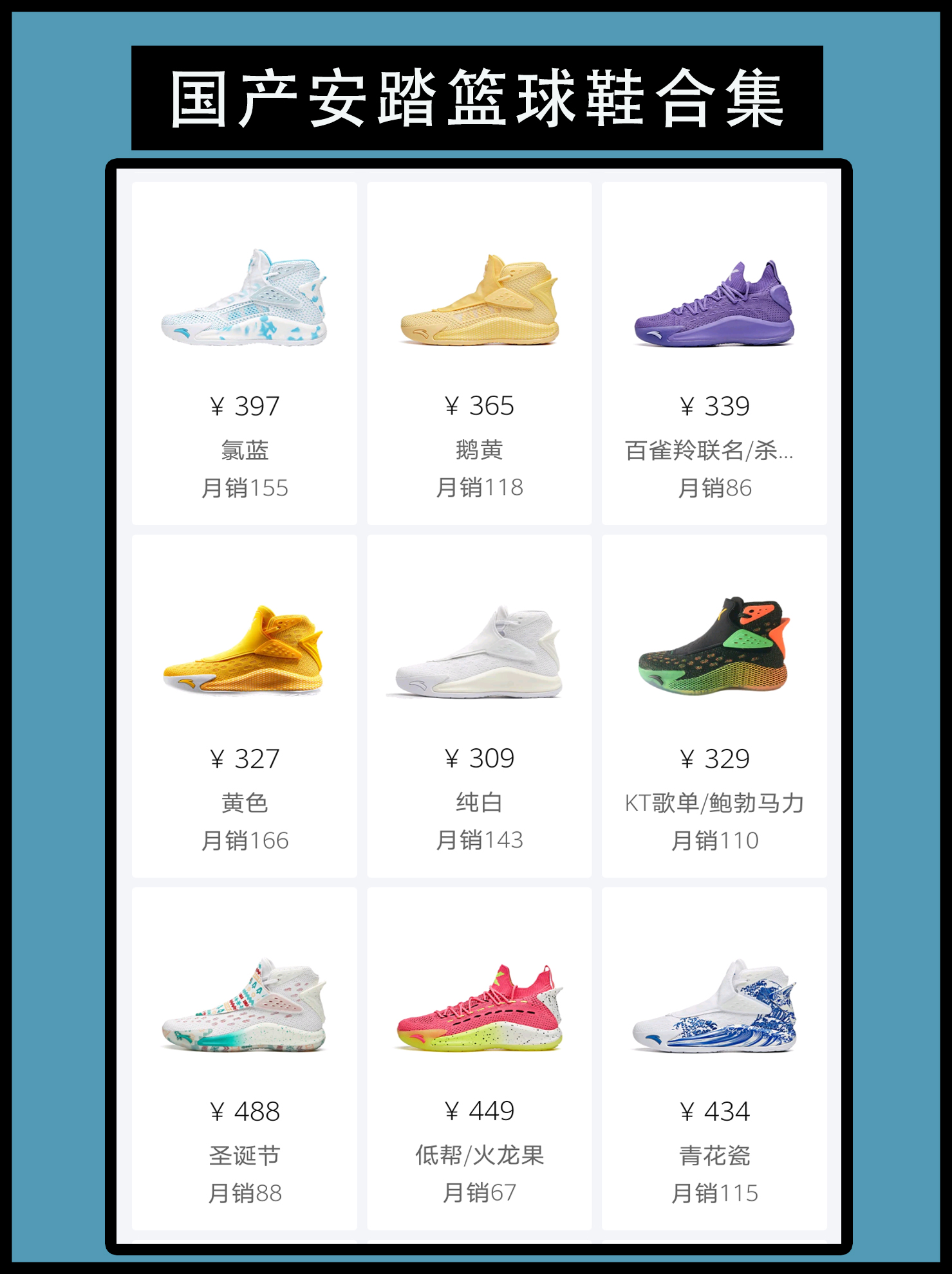 国产安踏篮球鞋合集 从水泥地杀手到如今百花齐放各种系列并举,安踏的发展足以作为其他品牌成长的典范。签约NBA球星克莱汤普森,拉简隆多。据悉,安踏在近期还打算签约绿军最强白人小前锋海沃德。如果真到那个时候,相信安踏在篮球鞋领域的市场份额会更上一层楼。到目前为止,安踏已经有了比较完备的篮球鞋体系,但是唯独各大品牌看重的团队篮球鞋领域没有涉及。 不得不说KT3的颜值无论哪种配色,都不会与丑挂上钩。汤普...