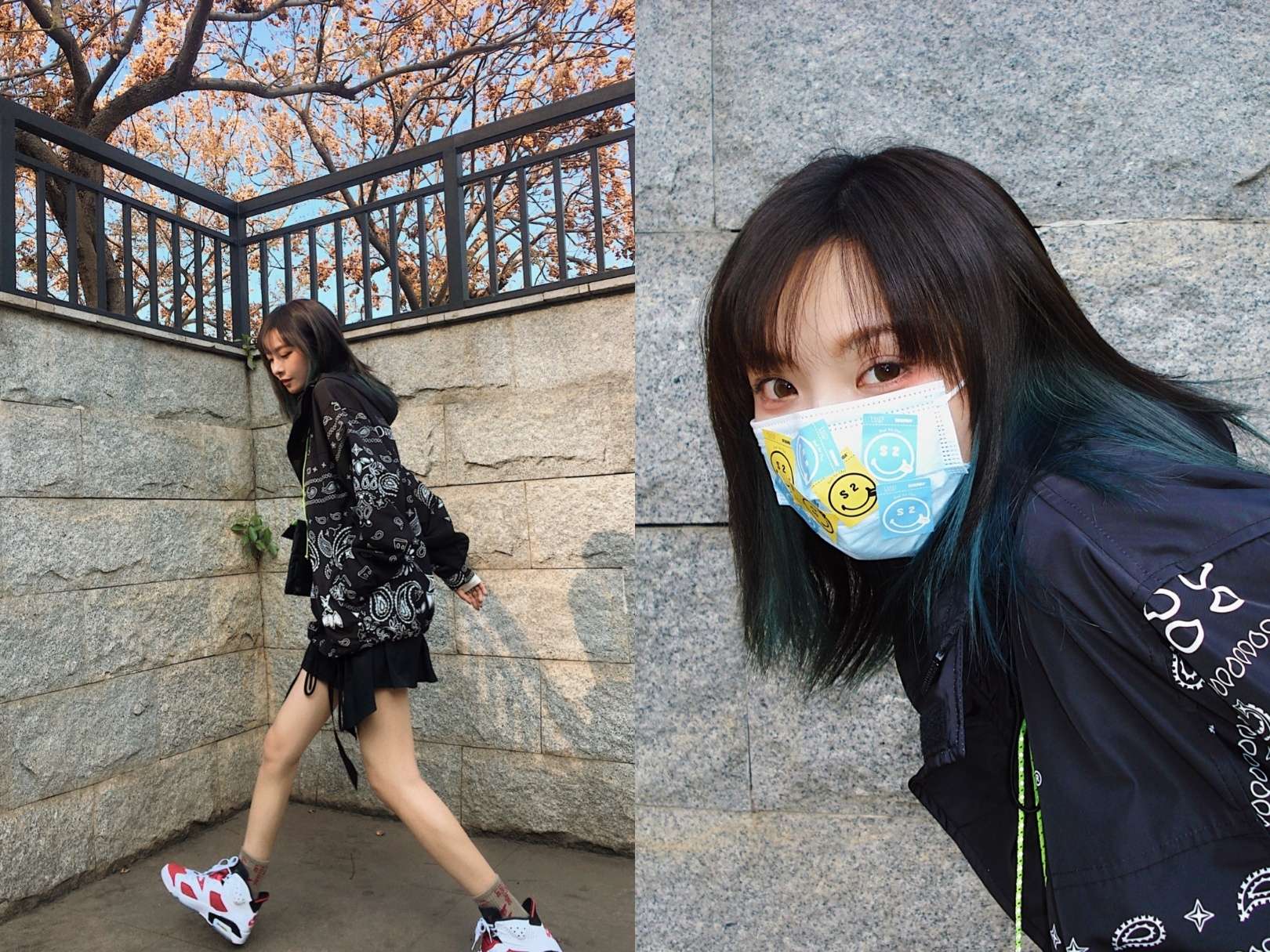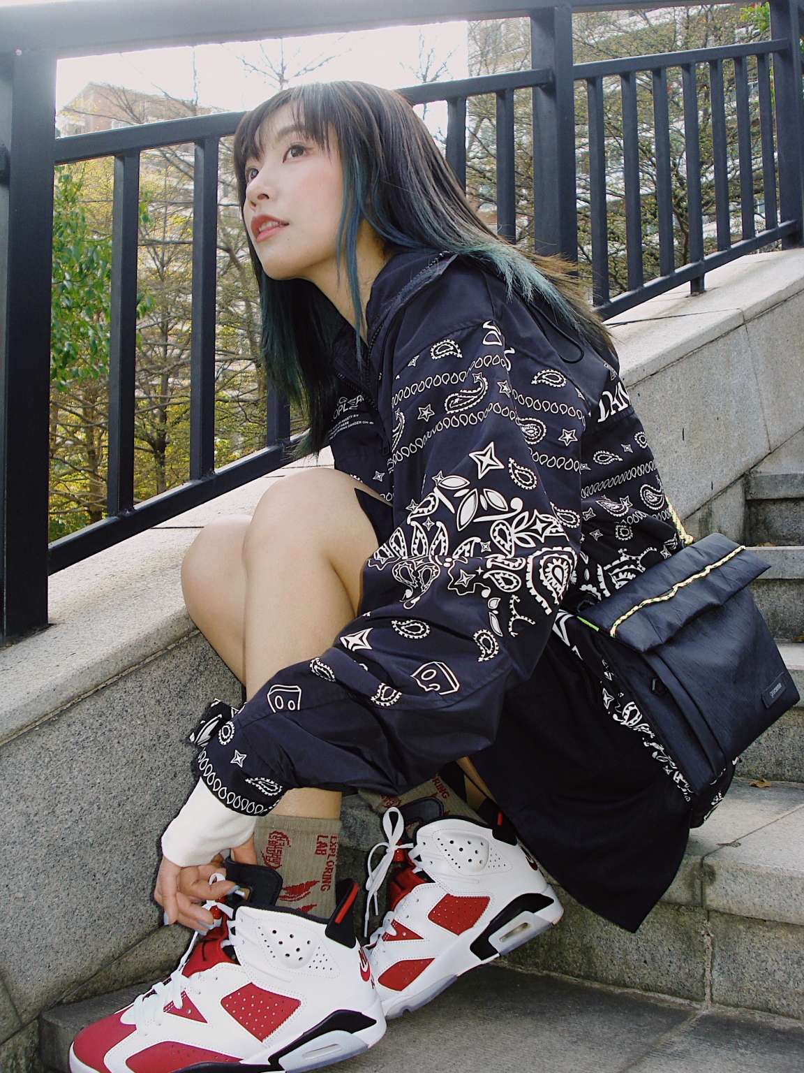 😬周末早起走走 阳光空气心情都特别好☀️🌸 今天穿了腰果花🌸新冲锋衣 来自@DangerousPeople , 喜欢腰果花元素,偏薄的,这个天气一件刚刚好。 小背包:@COMBACK品牌 鞋子:是近期最爱的AJ6胭脂红喔 袜子:@FLOAT品牌 😳自己挑染的闷绿的头发,搭配个日本royd锁色洗发水,颜色可以保持很久喔。