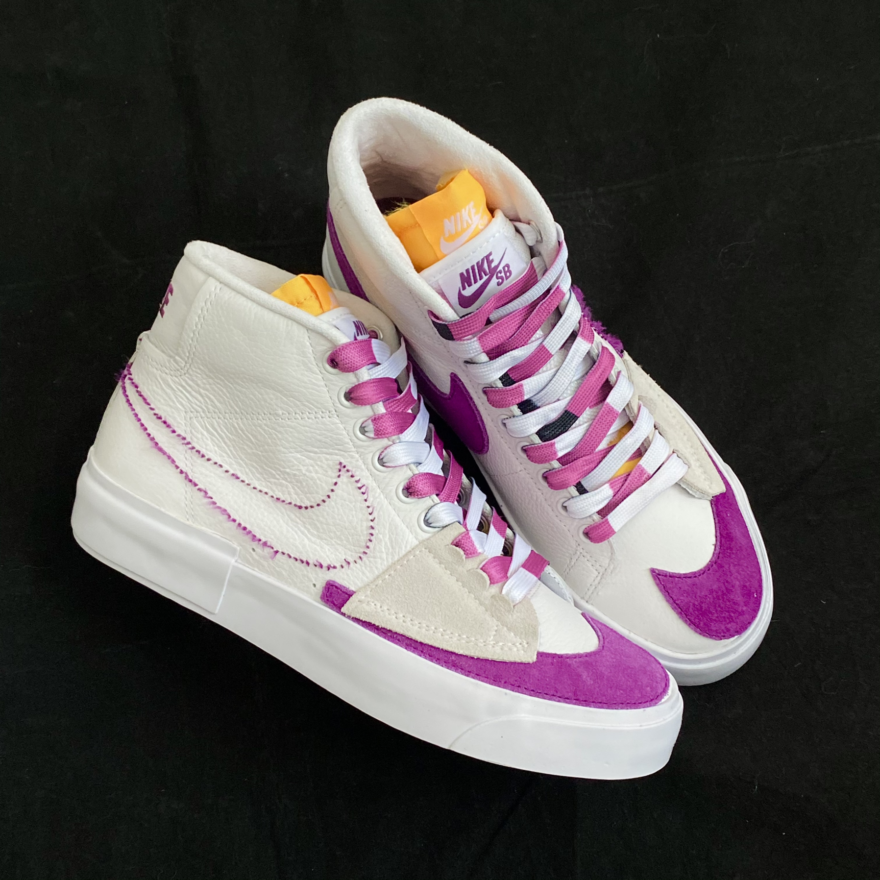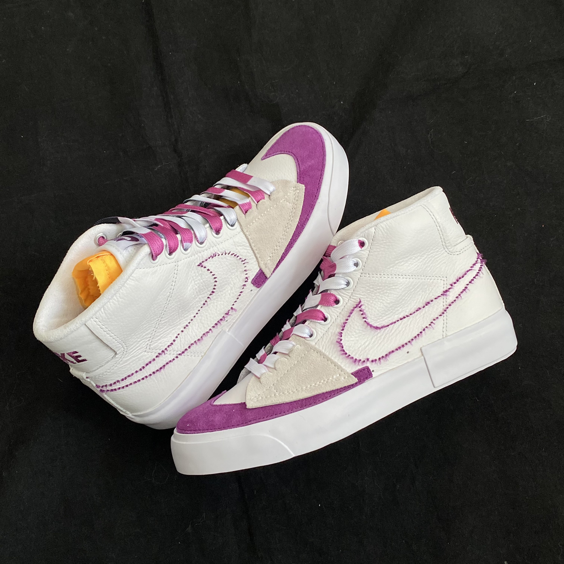 本篇笔记关联了Nike SB Blazer Zoom 滑板鞋 板鞋 拼接时尚复古防滑耐磨透气运动休闲舒适百搭 白紫/拆线等商品,为用户提供真实的使用体验和购买参考。
