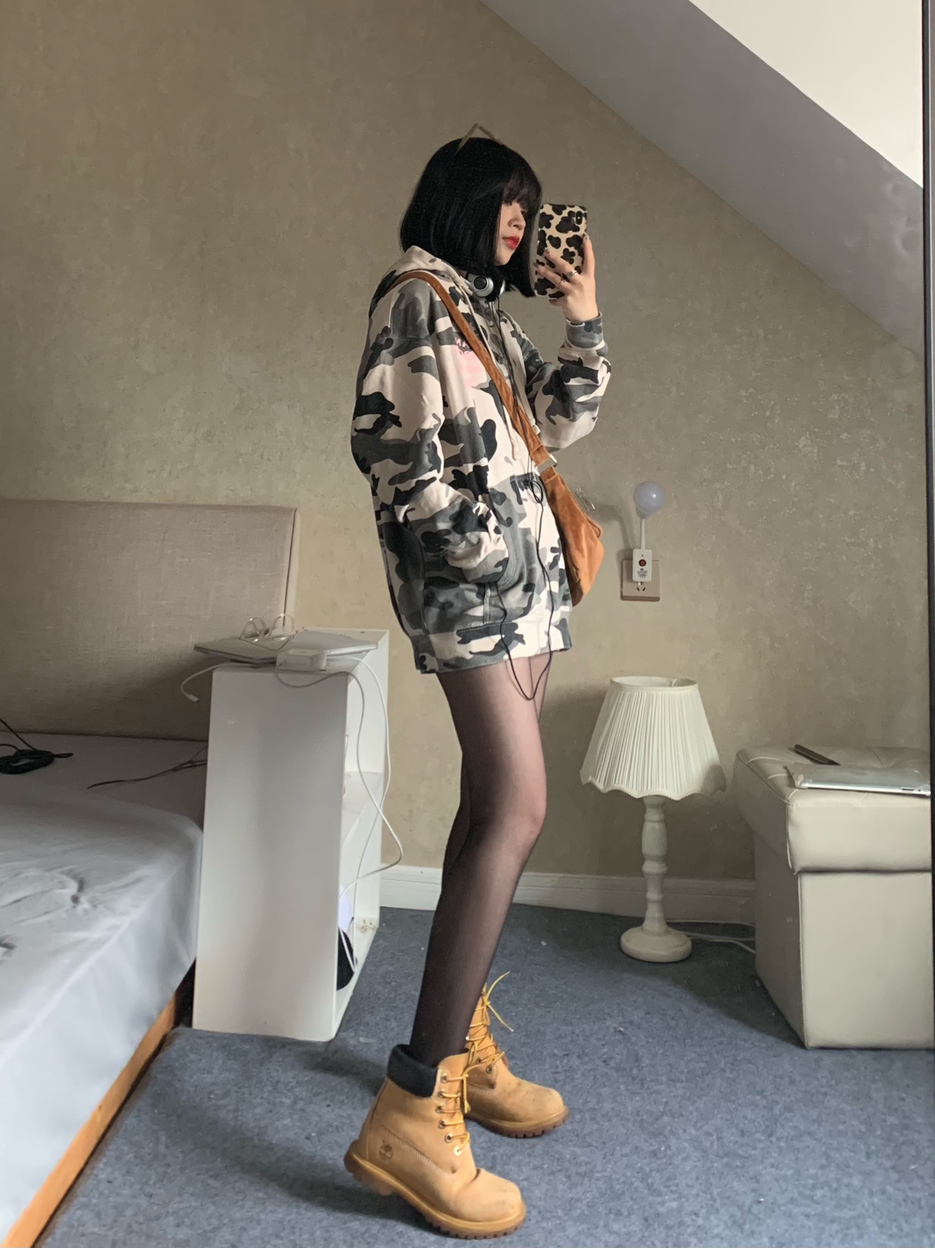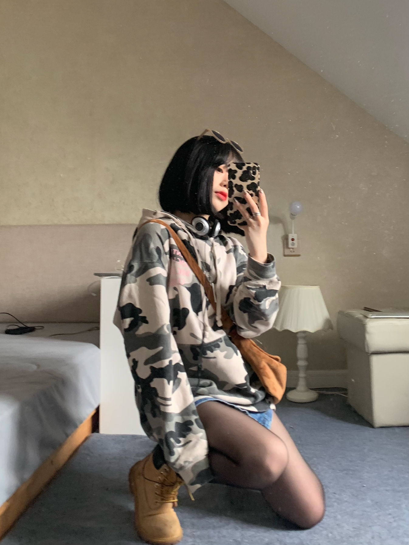 哈哈哈哈莫名其妙的发现自己以前真的很喜欢迷彩元素!蜜汁军事迷🪖秋天很适合哈哈哈哈 这件卫衣和大黄靴搭配太绝了!酷帅又俏皮