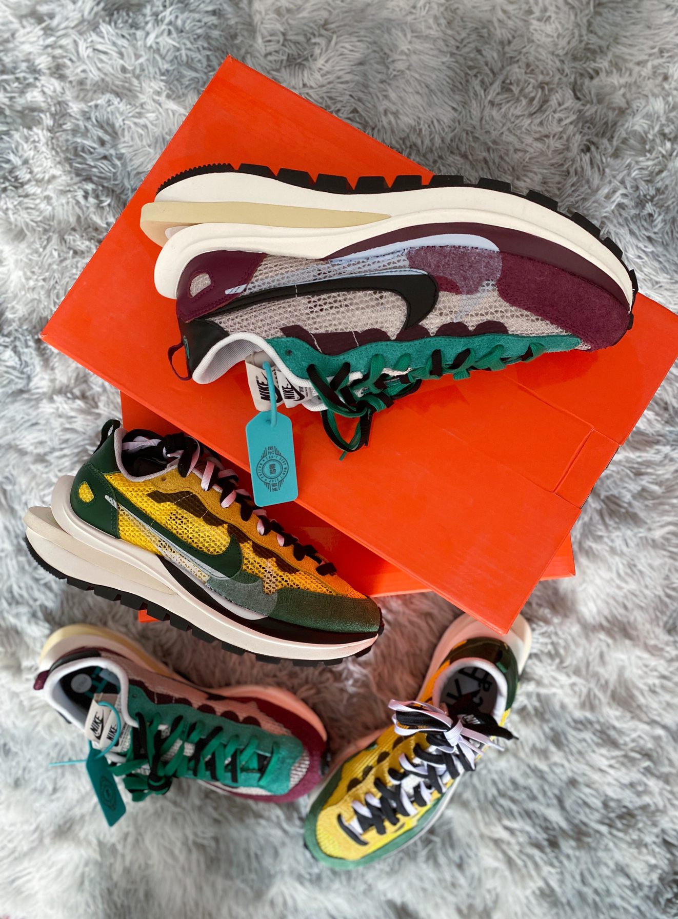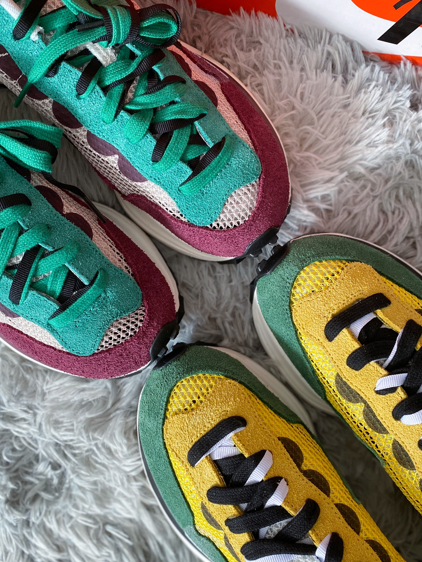 -这两双配色你们更喜欢哪一双? -Nike与sacai联名的鞋子在我看来是最具有创新和设计性的鞋子,无论是初代的LDV还是blazer还是现在的 Vaporwaffle,这几种鞋款都让人耳目一新,还有它的增高效果也非常显著!一米八不是梦! -这次一同发售的Vaporwaffle有酒红和黄绿两个配色,我个人就这两双鞋而言更喜欢黄绿配色。 -原因:在设计和用料都一样的情况下只能从颜色和价...