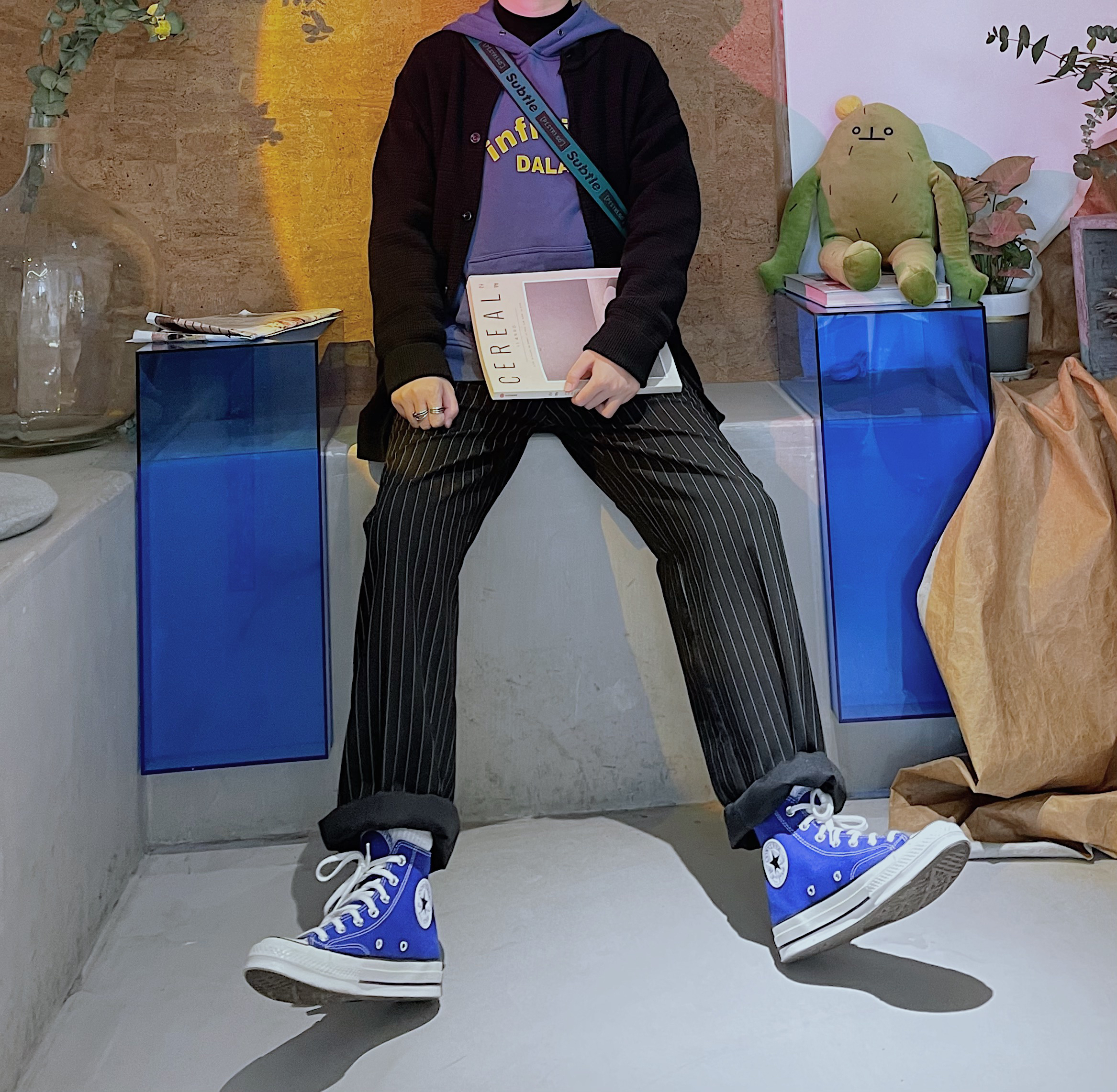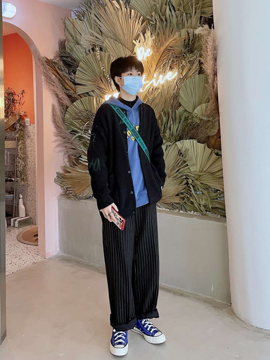✨今日穿搭 黑色圆领开衫 条纹直筒休闲裤 蓝色字母印花卫衣 绿色小挎包 黑色高领打底 海军蓝高帮匡威 ————————————————— ✨蓝色真的是适合一年四季的穿搭元素 搭配黑色裤子和开衫 很日式休闲的感觉 比起单调的黑色休闲裤 建议搭配竖条纹的款式 或是工装裤都可 帆布鞋的颜色和卫衣一样即可 上下呼应的搭配真的超赞 ——————...