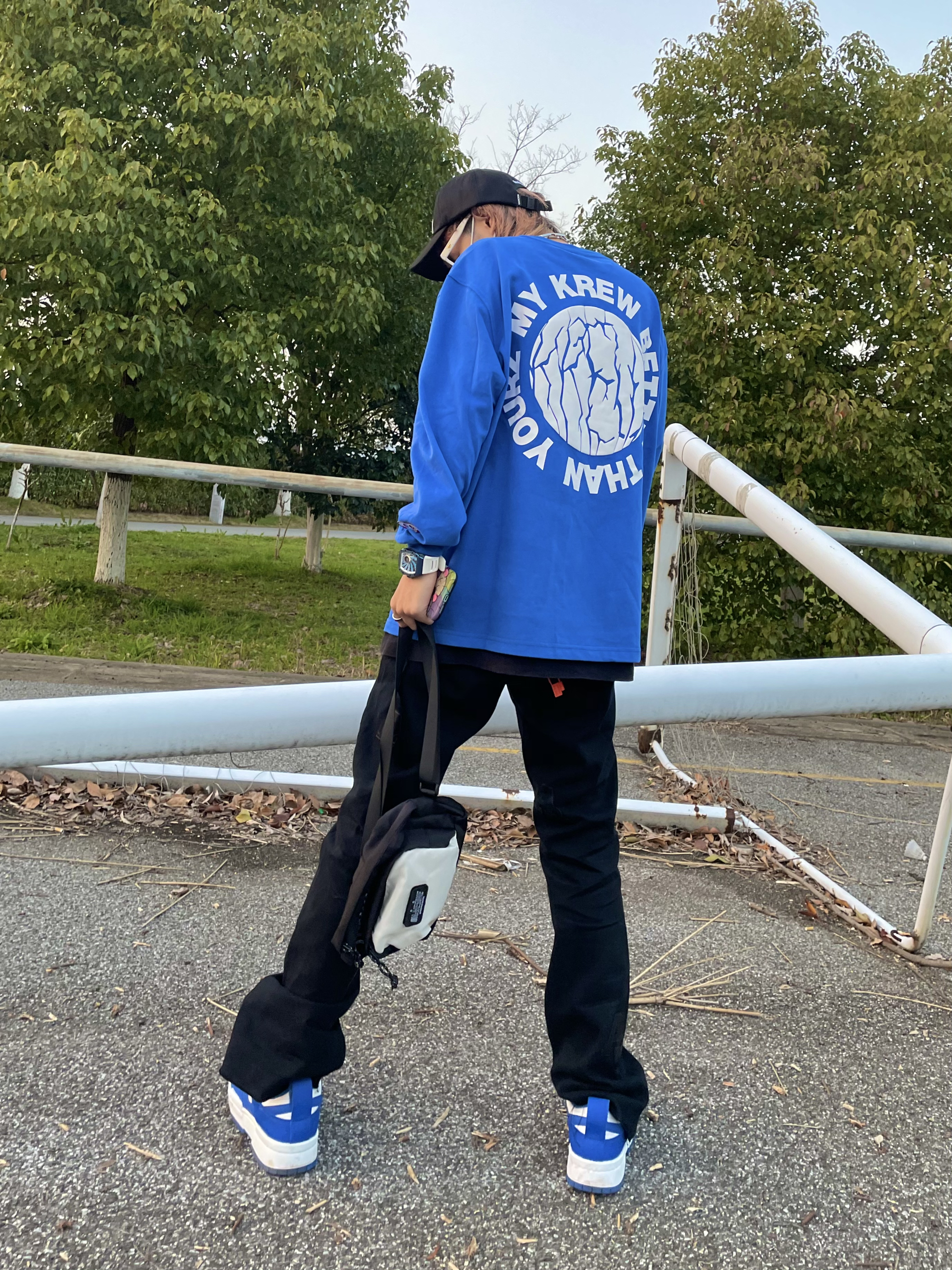 蓝色系怎么穿? 👔:GAONCREW@GAONCREW集聚现象 👖:ATCG@ATCG品牌 ⌚:布加迪@布加迪手表官方 👟:dunk 👜:FEAROM@FEAROM 🕶️:EYECROXX@EYECROXX乘号 整体以蓝色系为主 裤子选择一条黑色喇叭裤来修身 我个人第一次穿喇叭裤 喇叭裤真的太好搭配了! 衣服是GAONCREW 很好看! 是KOZAY同款 选择这双蓝色dun...