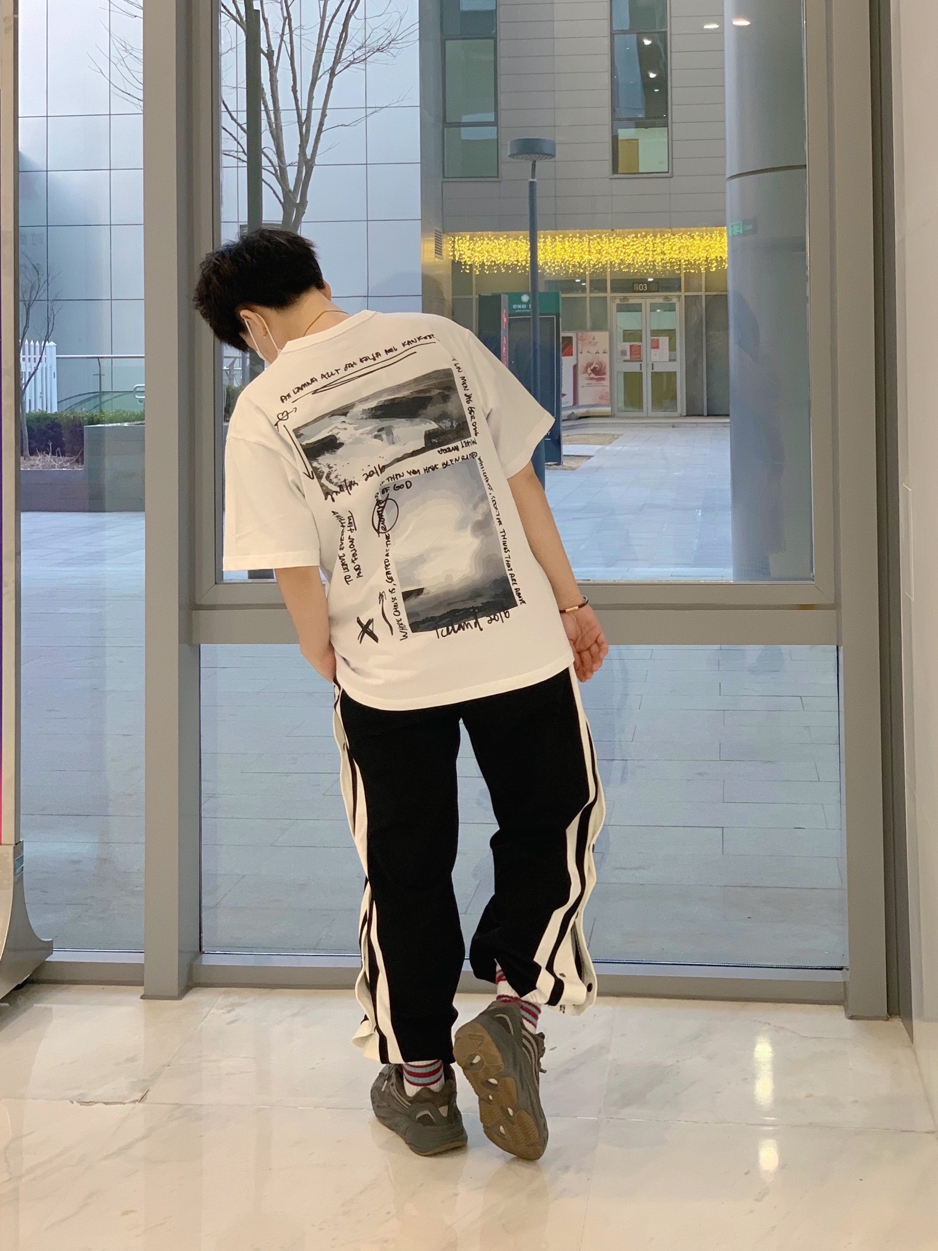 🌈给生活做减法,低调简约的短T,是轻松生活的正确打开方式- ✅搭配心得今日分享Wut背后太阳光景印花T恤,背后用水墨方式呈现的印花,也是很有特点的胸前小的品牌logo也很低调。 ✅下身搭配一条killwinner的嘻哈排扣侧开裤子,搭配小心机裤子的白色边正好和上身呼应~给人很舒服的感觉 📍品牌信息 👔衣服 :WUT 👖裤子:killwinner 👟鞋子:yeezy700