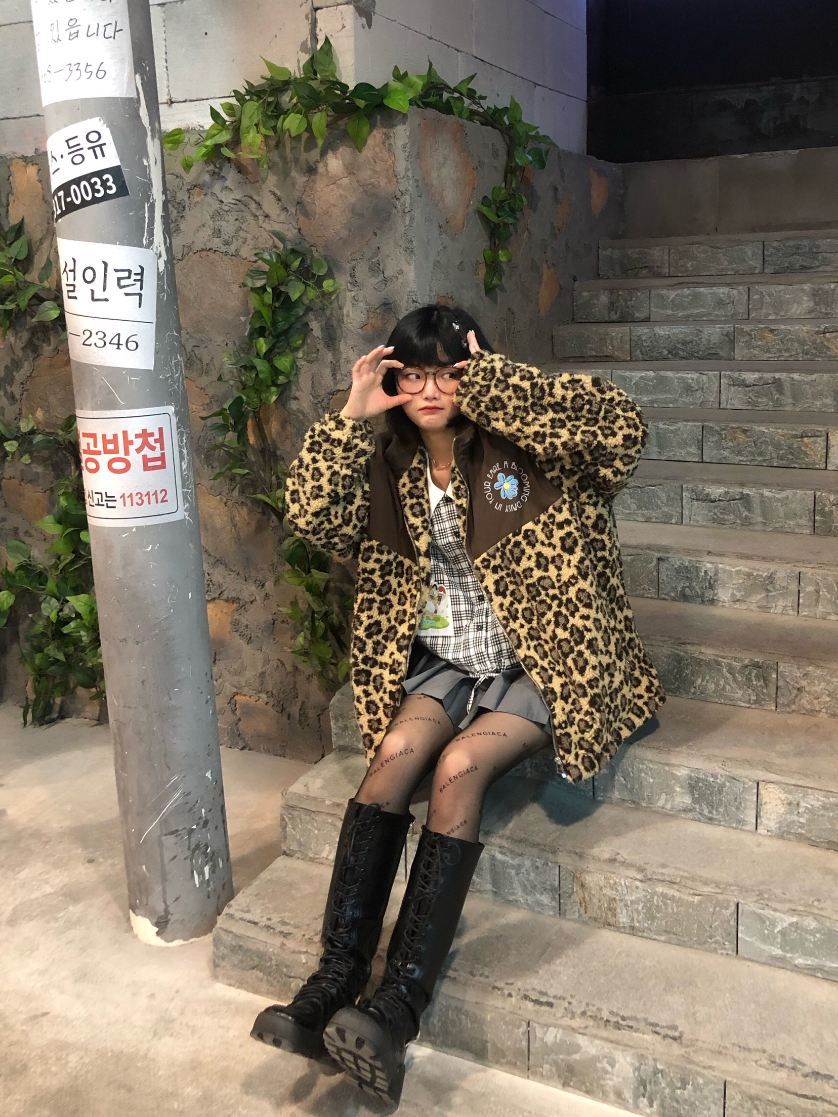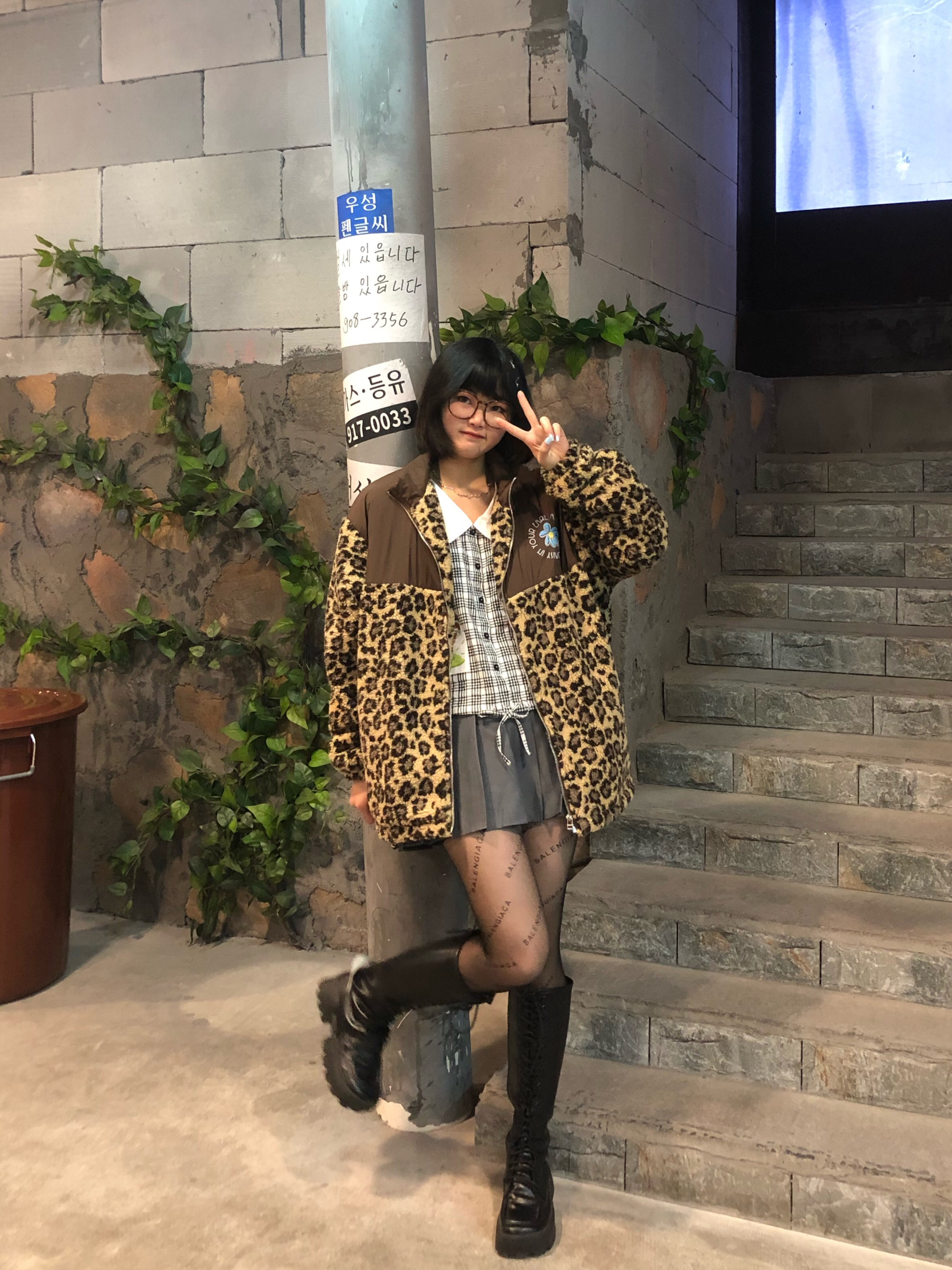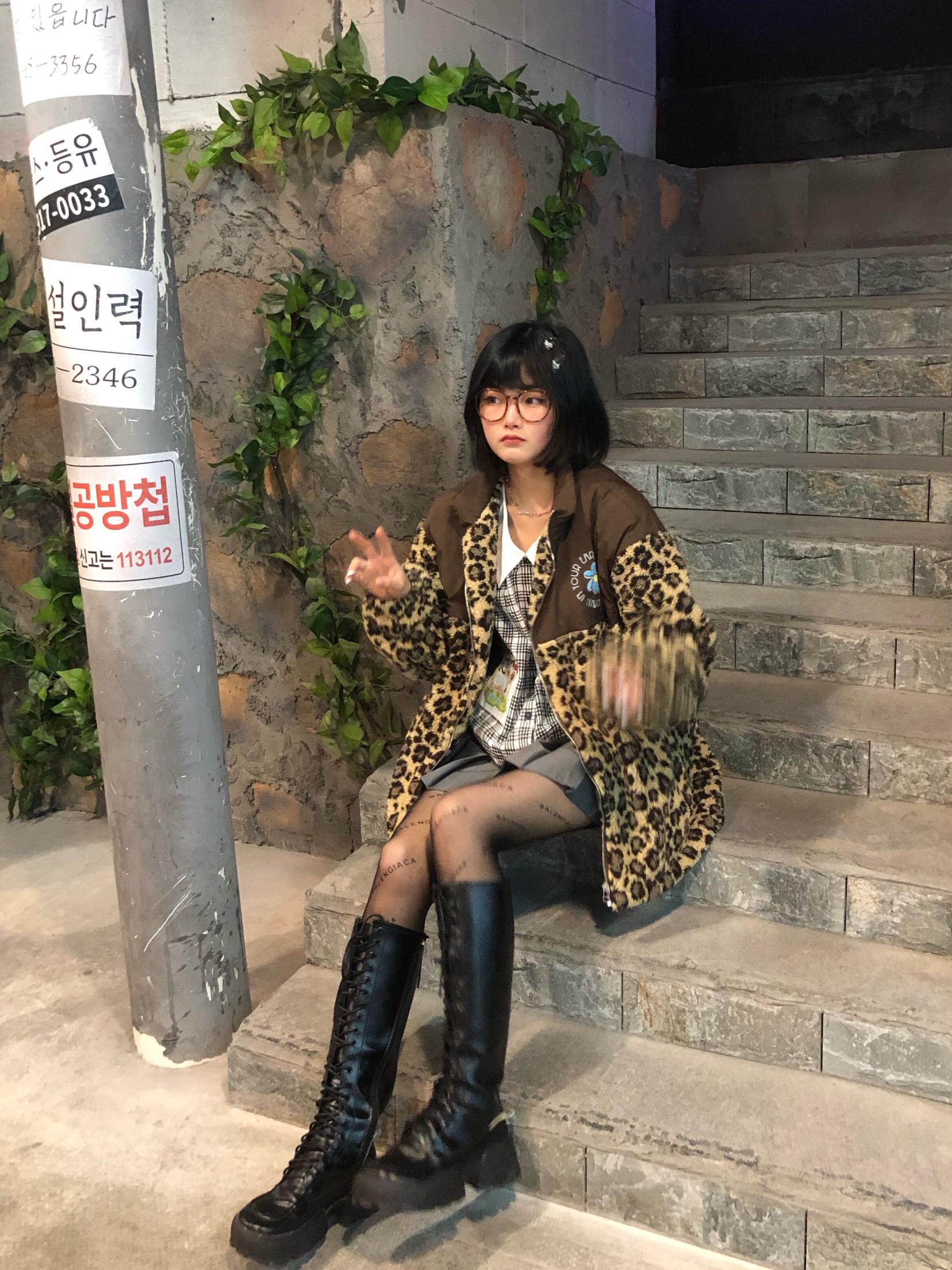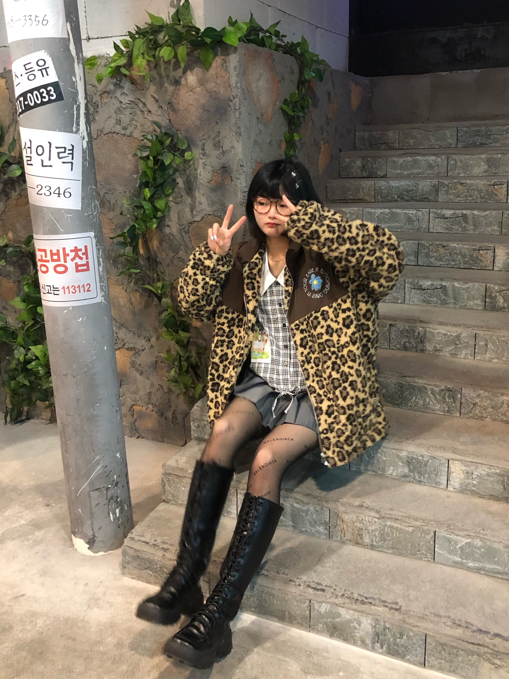 今天算半个辣妹吧。 👔TNQT 衣服款式太喜欢啦!豹纹外套搭配起来辣妹风简直💯 衣服真的超级显白!在衣服内搭的选取上可以选择比较短的上衣,然后搭配一条灰色或者黑色的短裙!! 学生装简直绝绝子!