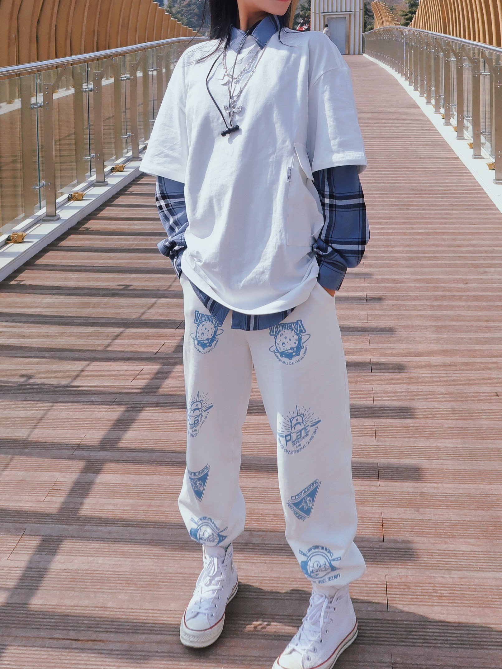 😎大家备春款了吗,毋庸置疑纯白半袖t👕应该是好搭的单品之一!现在的温度内搭衬衫增加层次感真是极好的选择👌🏻! 我选择的大体色是纯白色,内搭的衬衫👔是蓝色格子可以和裤子👖图案色呼应,白t是白色大码的,想要宽松自在的一种状态,很喜欢这个侧口袋设计,让整个t都感觉更有风格了,而且白蓝🤍💙搭配也是永不不出错的一个色搭~ 👔:H&M男 👕:二十八间 TES 👖:LAMLICKA 👟:匡威1970s纯白