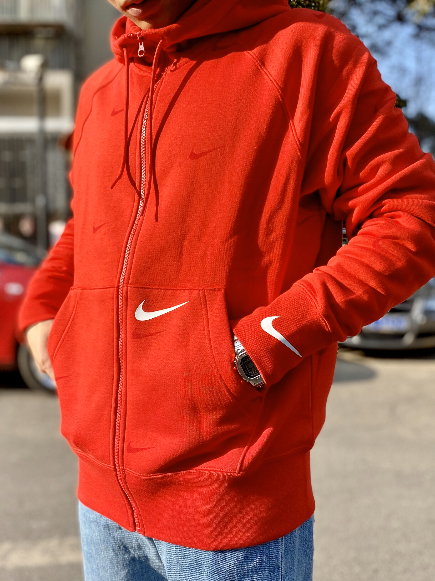 OOTD|本命年穿什么?Nike宝藏外套推荐! 本命年怎么穿?Nike Swoosh! 👔:Nike Sportswear DA0083-657 👖:李维斯 👟:Air Jordan5 2021CNY 🌟搭配建议 大红色外套,薄绒春季很合适! 超大白色Swoosh很好看,还有很多小印花 白红上衣搭配浅色CNY 整套穿搭年轻活力! 这里是维他柠檬酸🍋,我们下期见!
