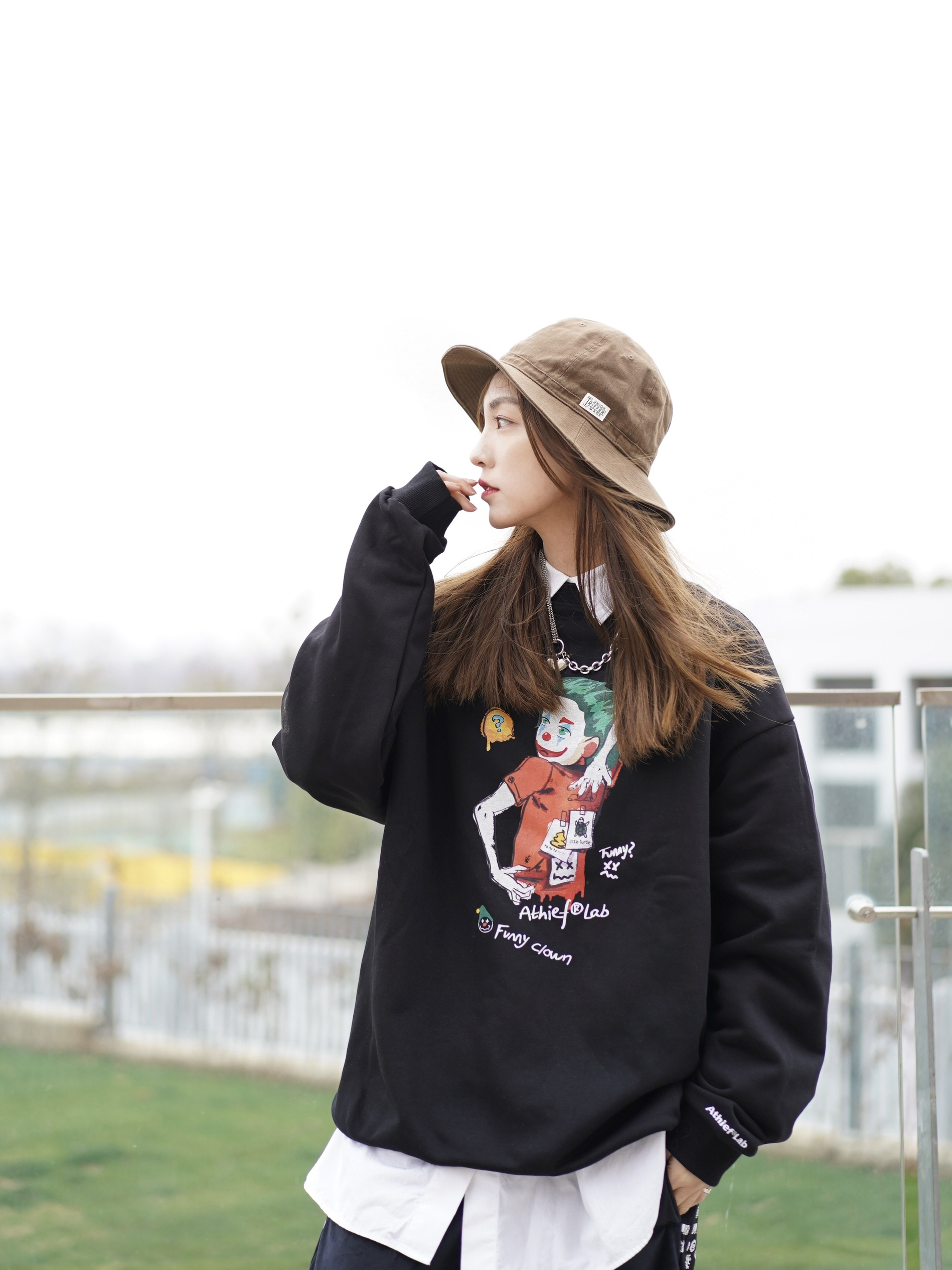 穿点特别的呀 新入的小丑卫衣 难得穿一身黑。圆领卫衣就穿了白色衬衫作为内搭,露出领子和下摆,为卫衣的穿搭带来更多层次。 腰果花的裤子经典好看,面料也很舒服~搭配黑色系的卫衣,保持统一又有特色呀。 衣服/裤子:athief 鞋:vans 安纳海姆系列