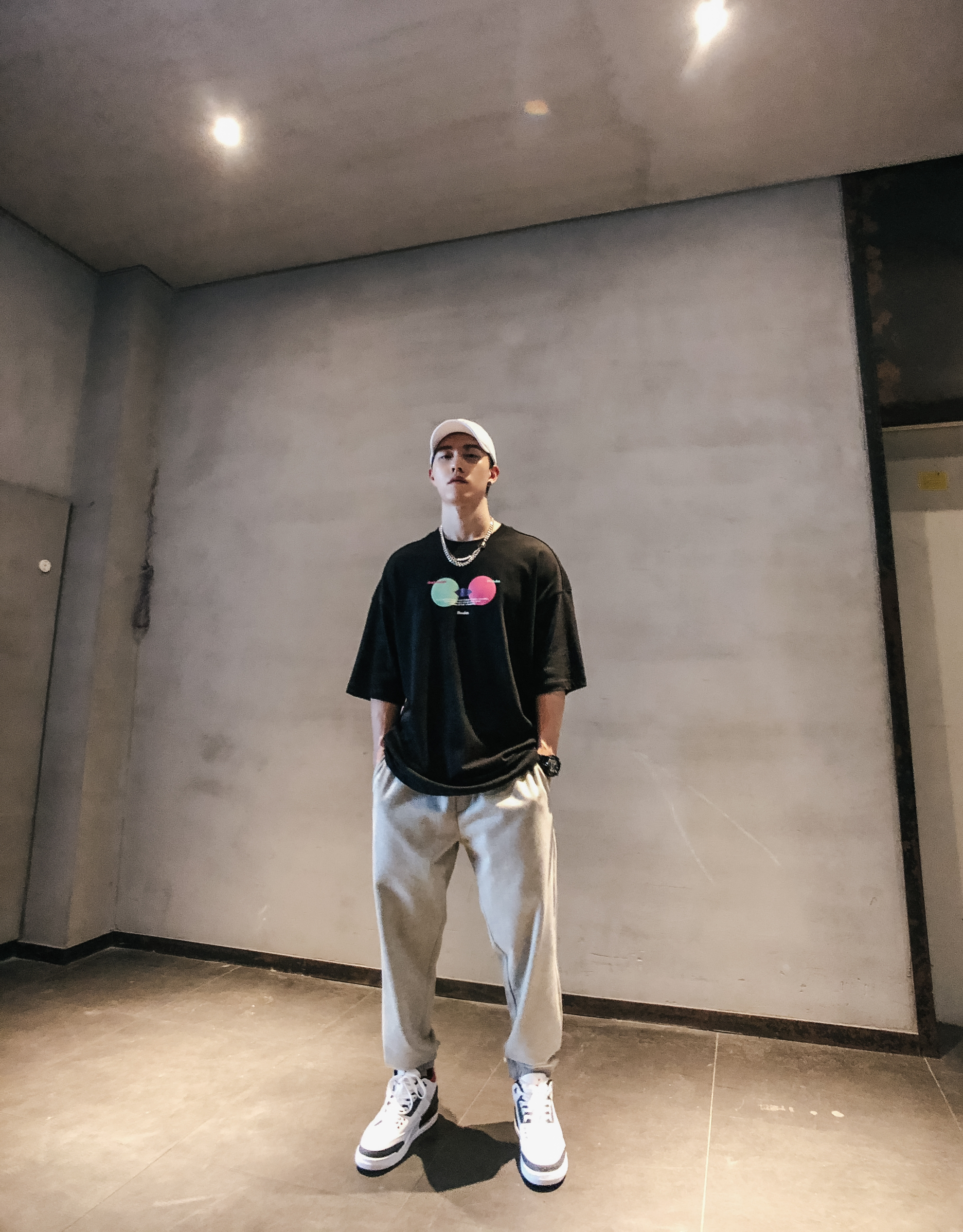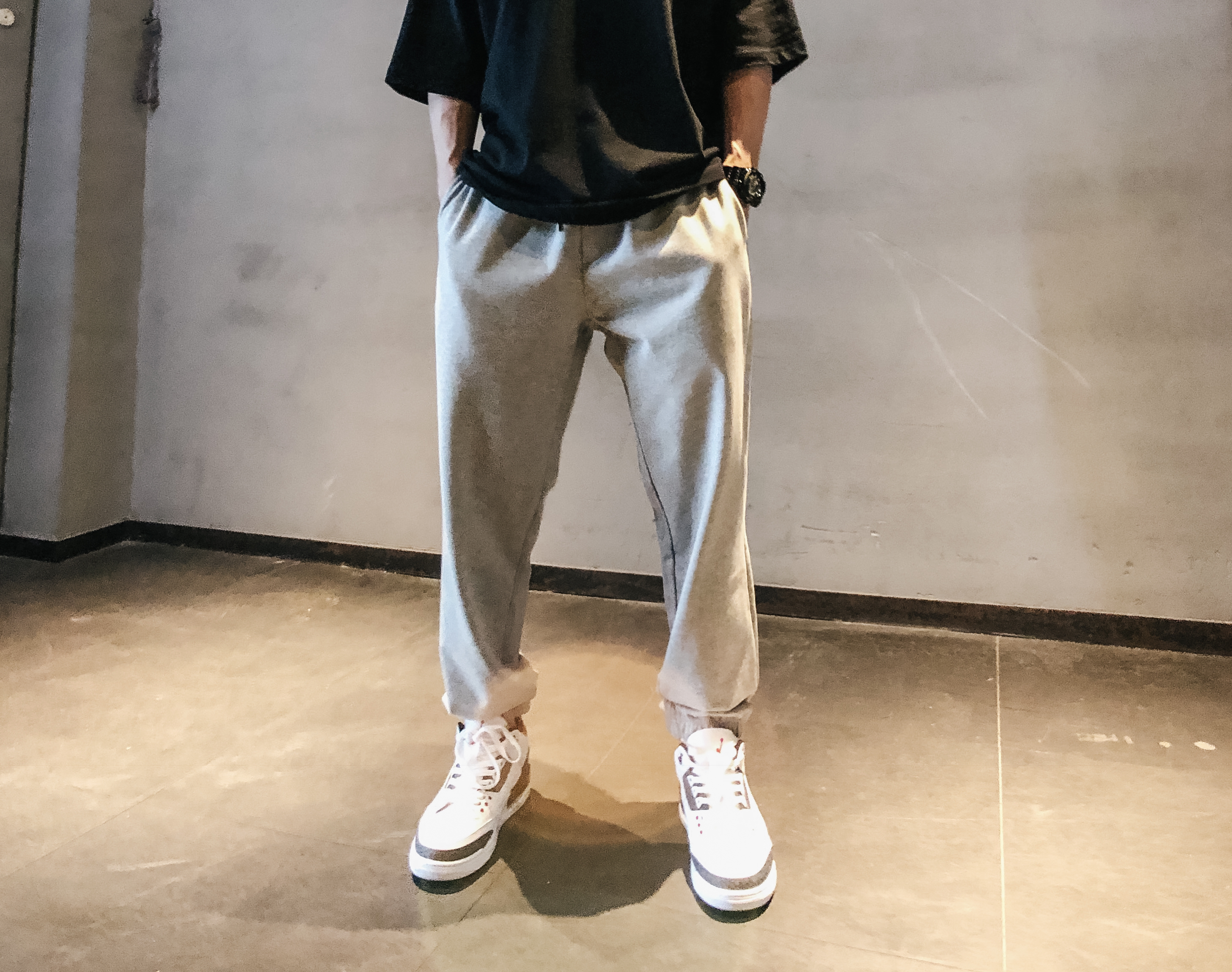 * 🧢帽子:nike * 💫项链:omt旗舰店 * ⌚手表:卡西欧ga110mmc * 👕上衣:哈林哥studio * 🩳裤子:哈林哥studio * 👟鞋子:aj3 赤焰红 穿搭🉐🆒:很多人不爱穿短裤,那么这条卫裤就真的很适合了。面料厚度刚好。人造纤维含量高,比纯棉的卫裤散热功能强。春夏卫裤的打开方式就选它了。