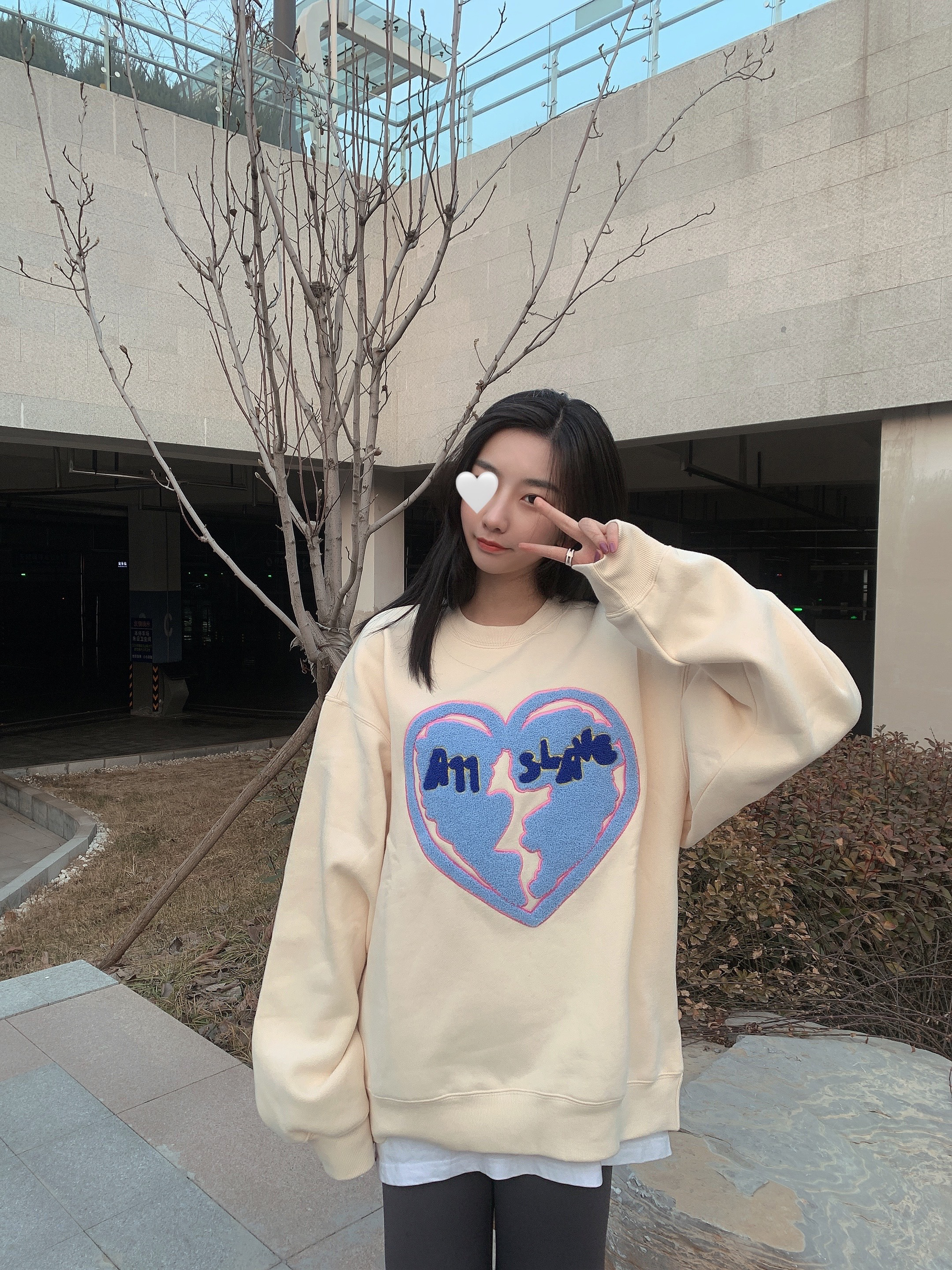 见你第一眼就知道 你是一个难养的猪🐷 —————— 👔ALLSLAVE 发现超级温柔的卫衣分享给大家📌 心碎刺绣卫衣上身比较显白 图案很个性 是立体发泡 版型设计的宽松哦 比较好搭配衣服 内搭穿一个T恤 下身搭配打底裤 配一双简单运动鞋就ok