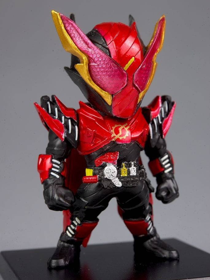 假面骑士build兔兔形态,build驱动器配合摇摇兔子瓶,危险扳机变身的强化形态,危险扳机道具的使用使战兔陷入了失去意识的形态,甚至虐杀了三羽中的青羽,一度陷入了颓废的状态,后来在龙我的帮助下制止了又要对溒度下杀手的自己,在各方帮助下研发了兔兔形态控制住危险扳机的使用。 本作出自converge系列第10弹最吸引人的还是兔兔形态的色彩,本作在色彩上还是不错的,头部装甲的制作可以比肩shf,不过槽...