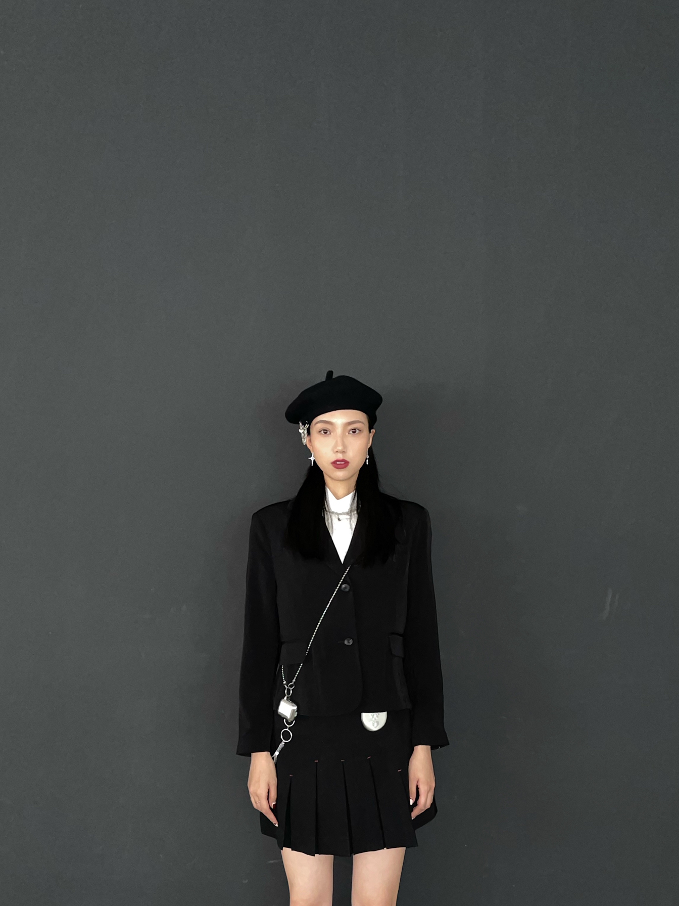 很喜欢学院风穿搭 但也很少尝试😛 总觉得自己太高了 好像不合~ 今天这套搭出来 意外的好看😍 - 👔:乐町LEDIN(短款复古小西服巨显瘦!穿上就是纸片人) 👗:乐町LEDIN(链条是裙子自带的哦) 👂:KVK (耳钉和项链太绝了!不想摘下来!) 👟:小ck(超级显腿细的玛丽珍鞋) - 高个子女生穿搭|jk穿搭|西服搭配|暗黑风穿搭|冷淡风穿搭|饰品推荐|